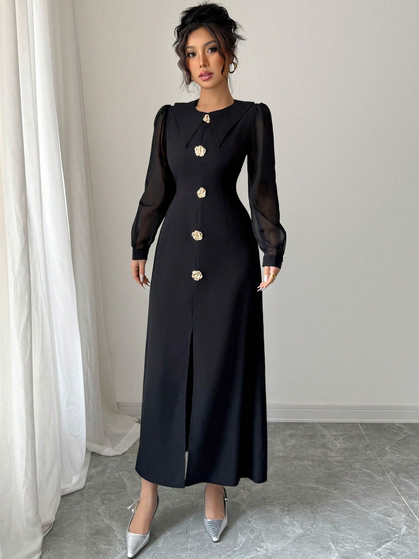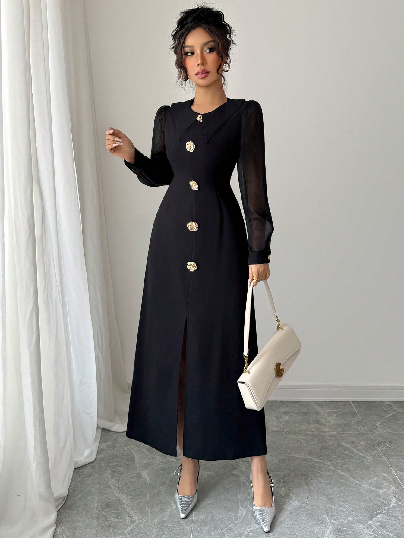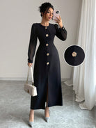 فستان موديلين أنيق وراقي بأكمام طويلة وقصة ضيقة للنساء، مناسب لفصل الخريف