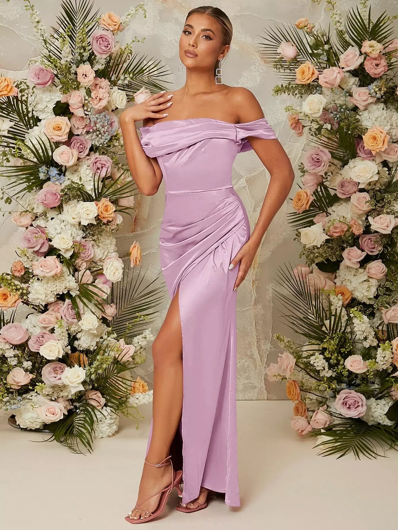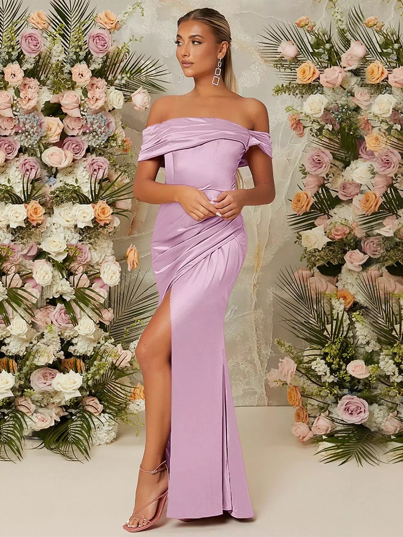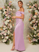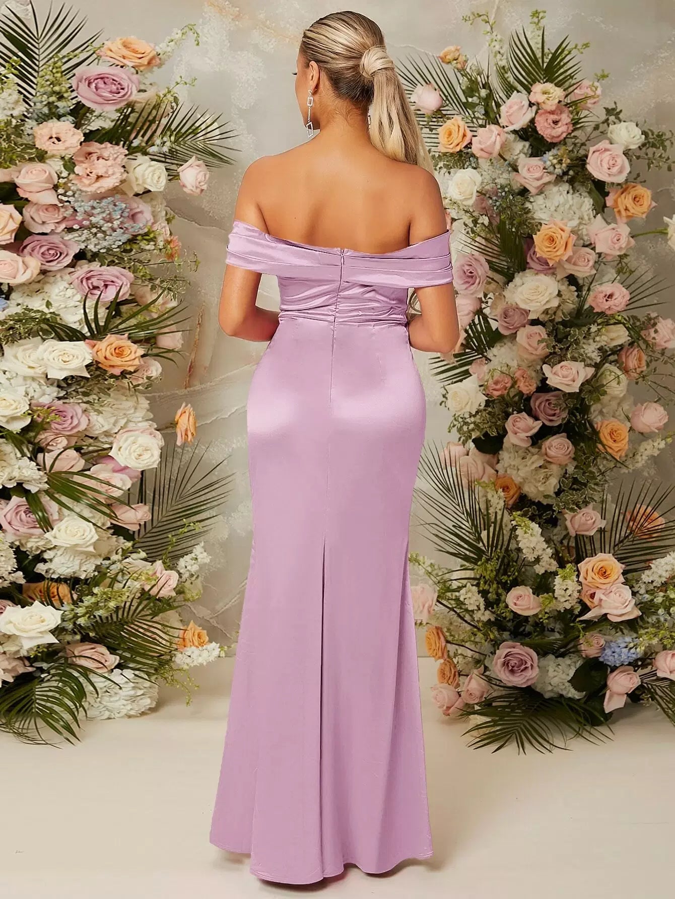 فستان بحاشية ملفوفة على الكتفين بحافة ملفوفة بسحاب من الخلف