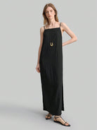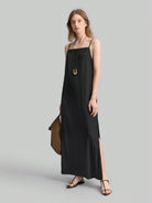 فستان طويل فضفاض بحزام قابل للتعديل وفتحة جانبية مريحة من Ontre Bohemian