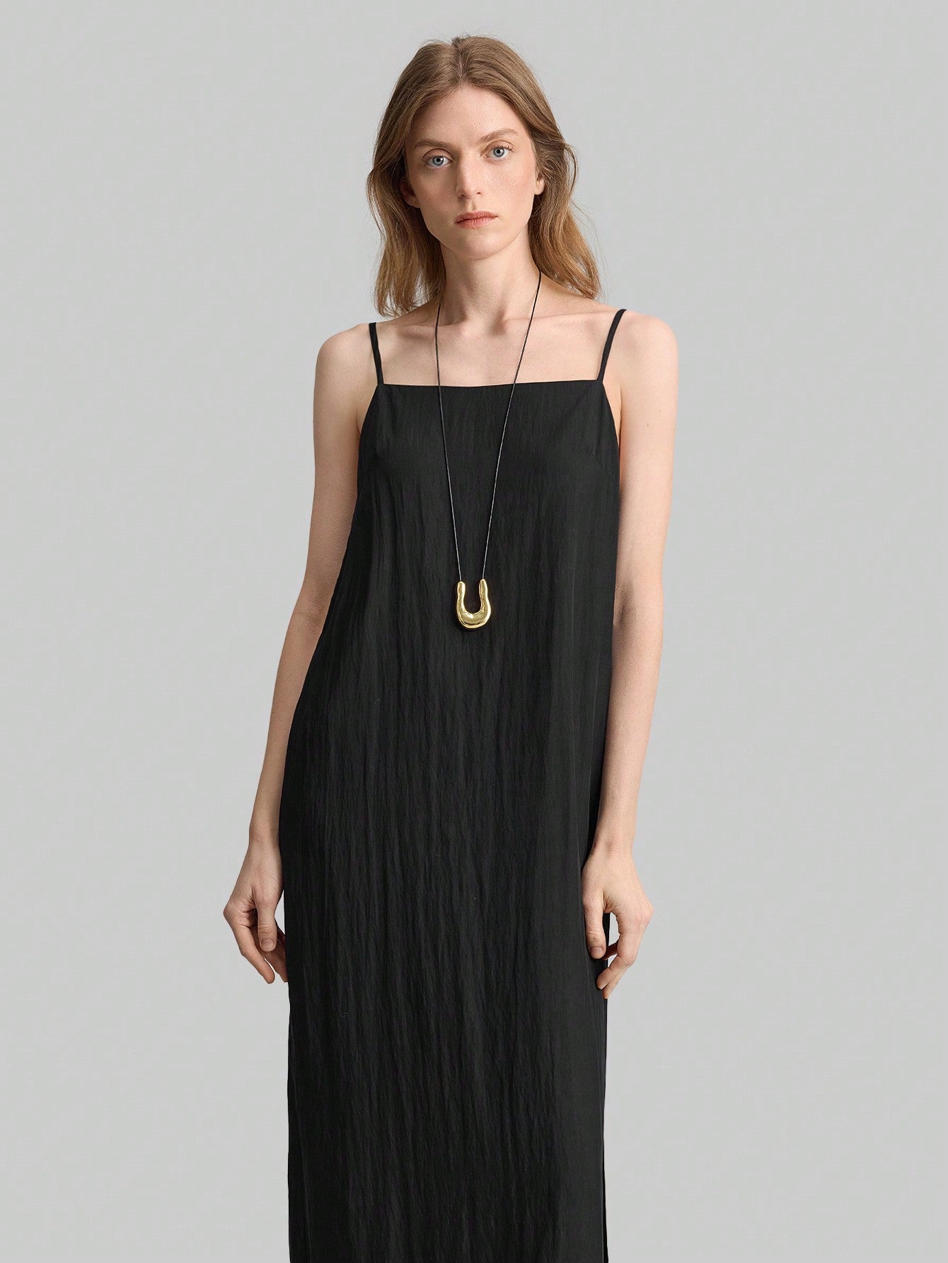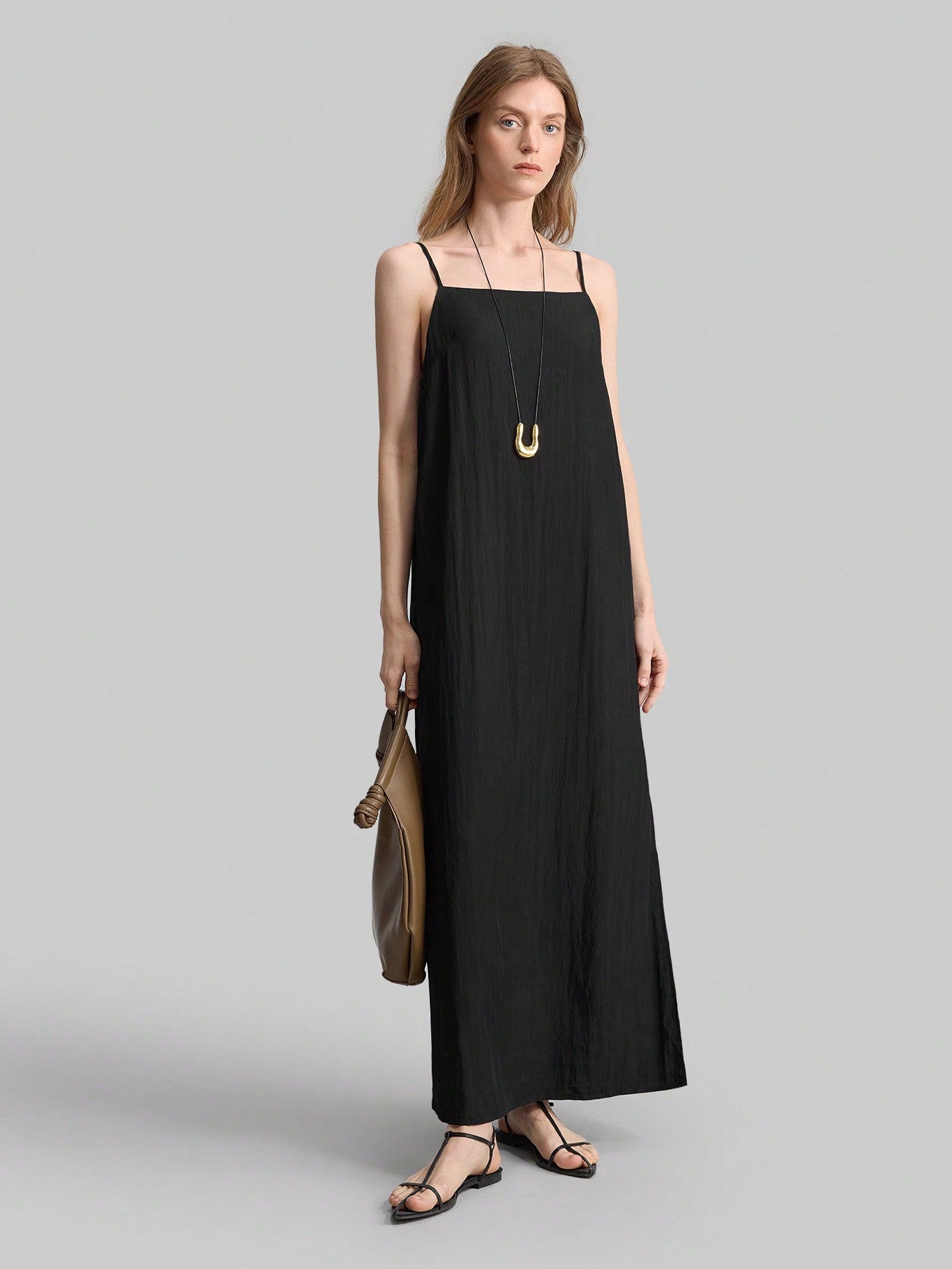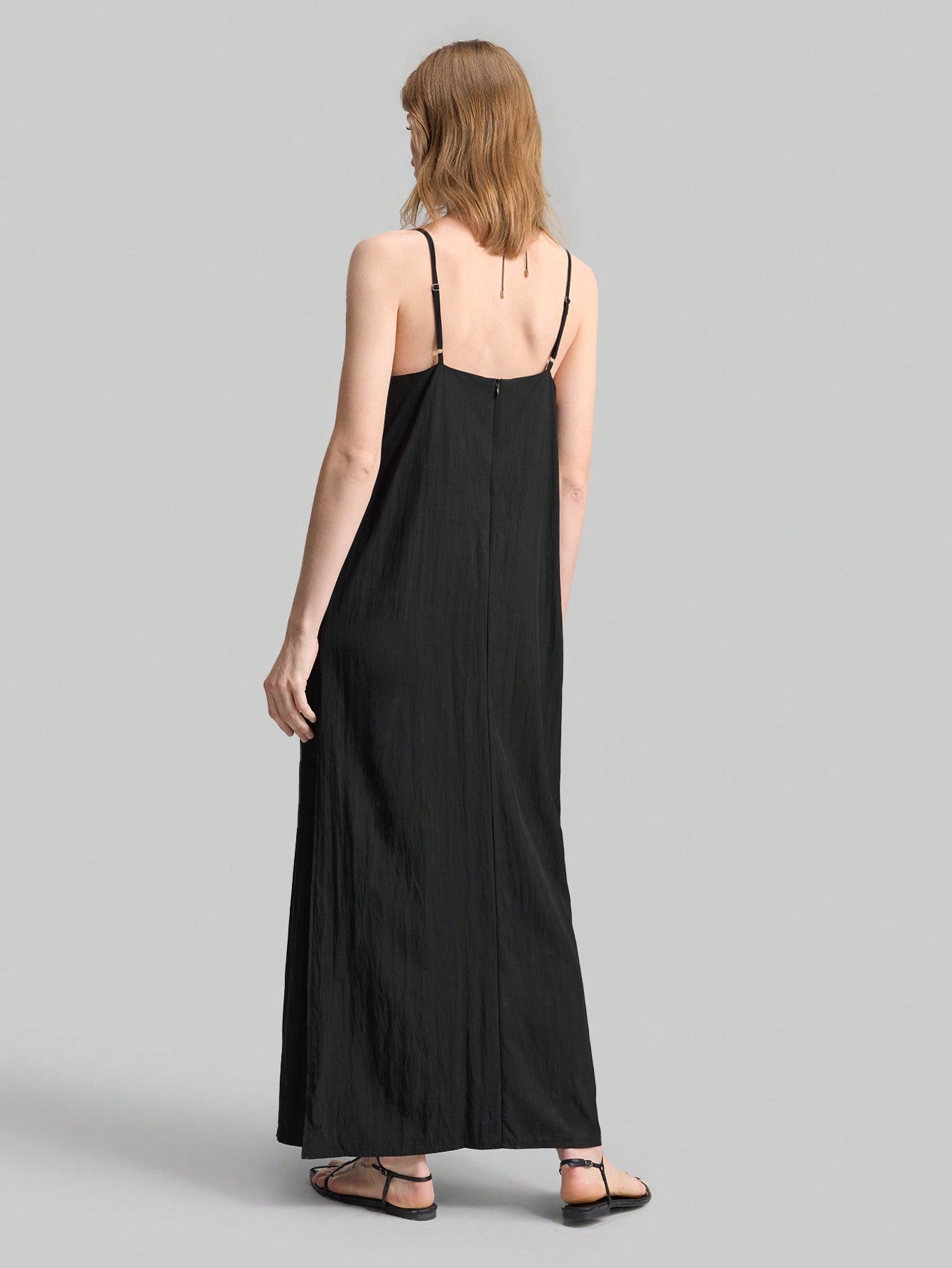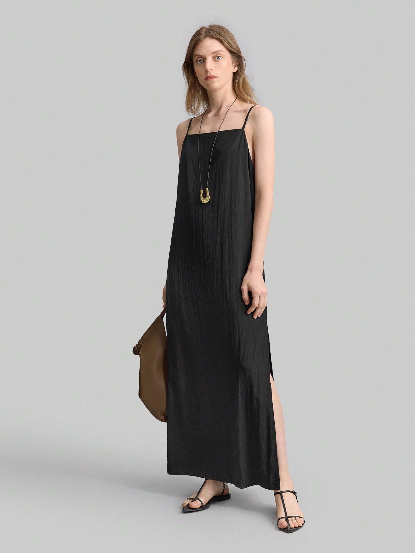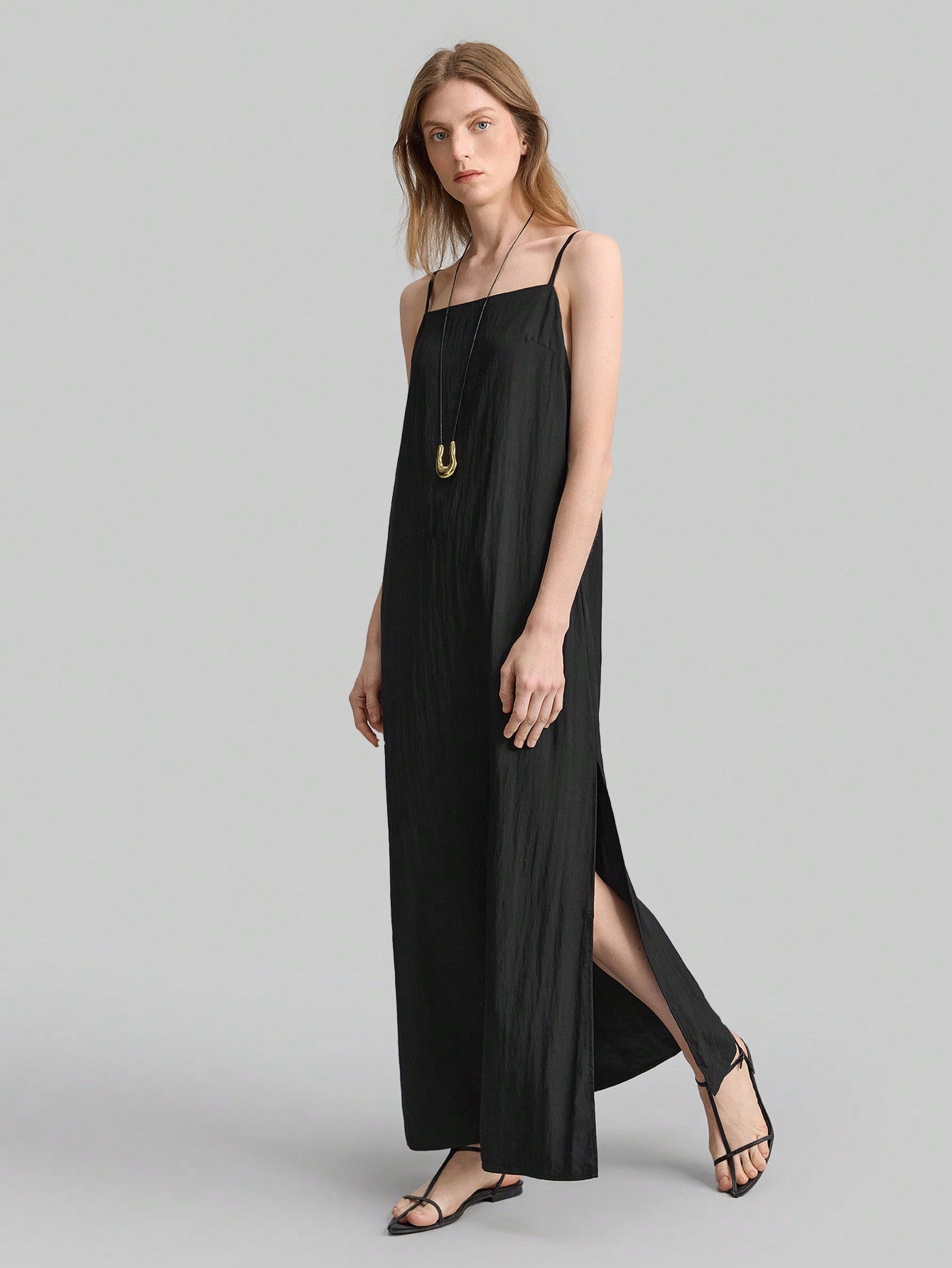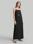 Ontre Bohemian Comfortable Side Slit Adjustable Strap Loose Long Dress