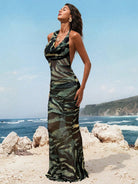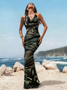 Opulessa Women's Backless Allover Print Maxi Beach Dress For Holiday