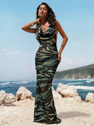 فستان ماكسي مطبوع بالكامل بدون ظهر من Opulessa للنساء للشاطئ لقضاء العطلات