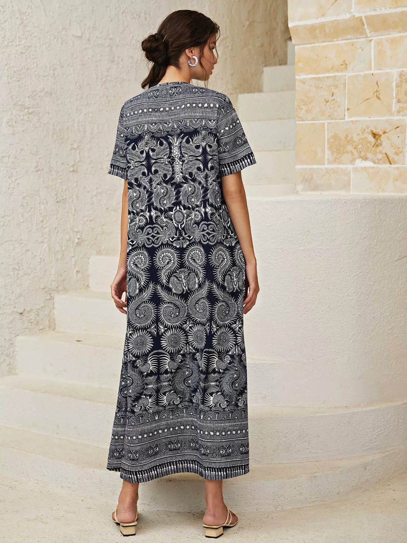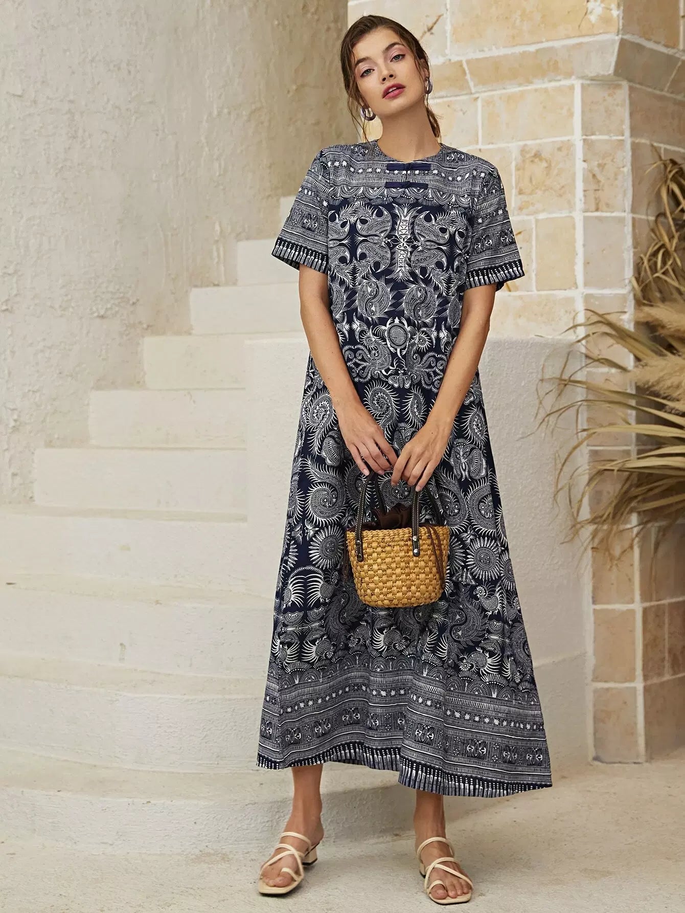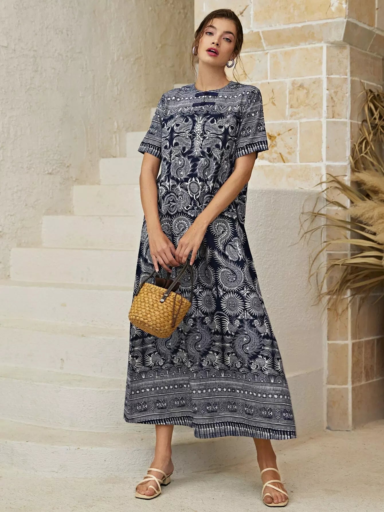 فستان تونيك بياقة دائرية وطبعة بيزلي