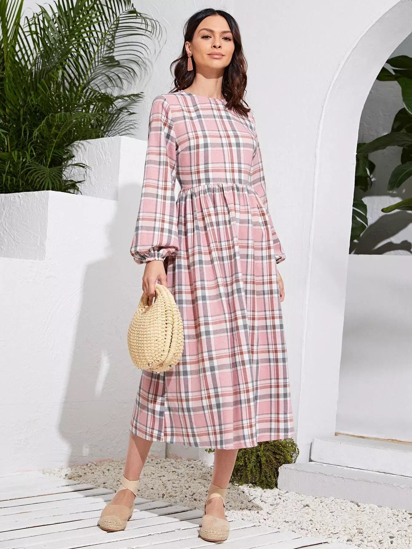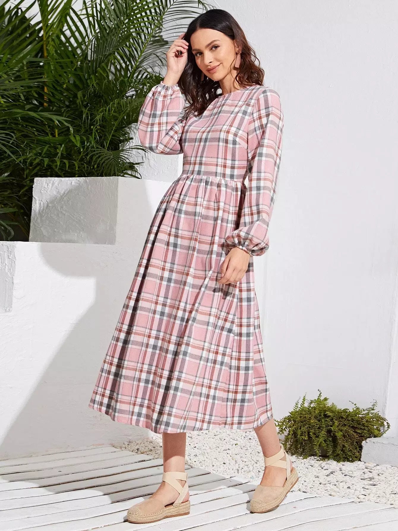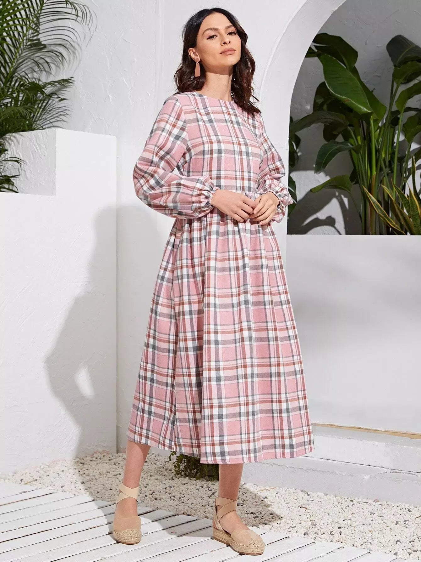 فستان بأكمام أسقف منقوشة