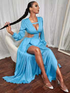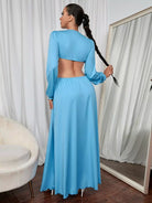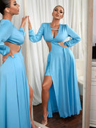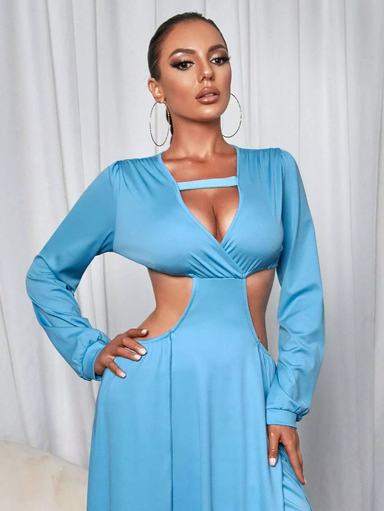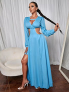 فستان ماكسي بفتحة مكشوف مكشوف عند الفخذين بفتحة مكشوفة