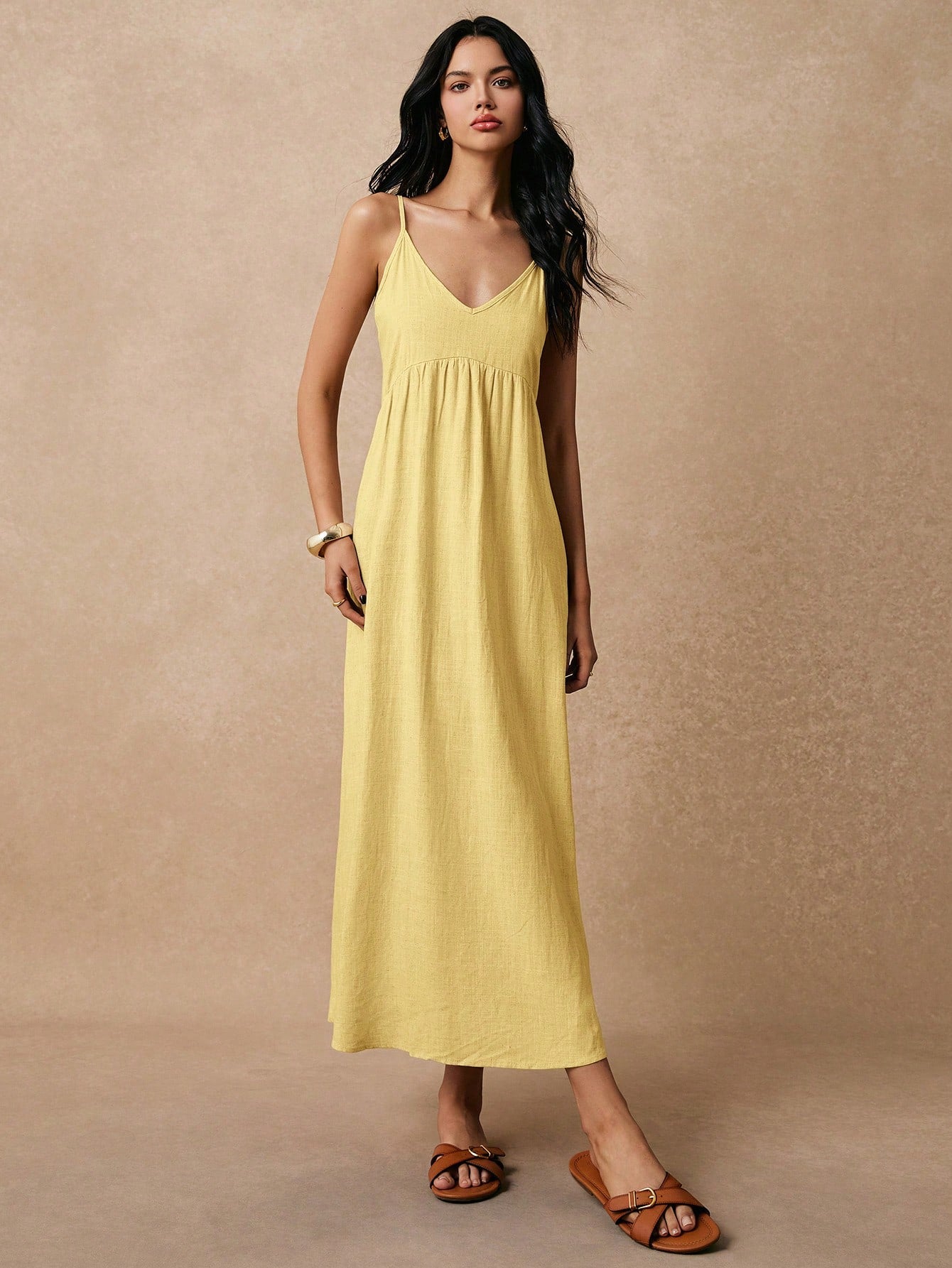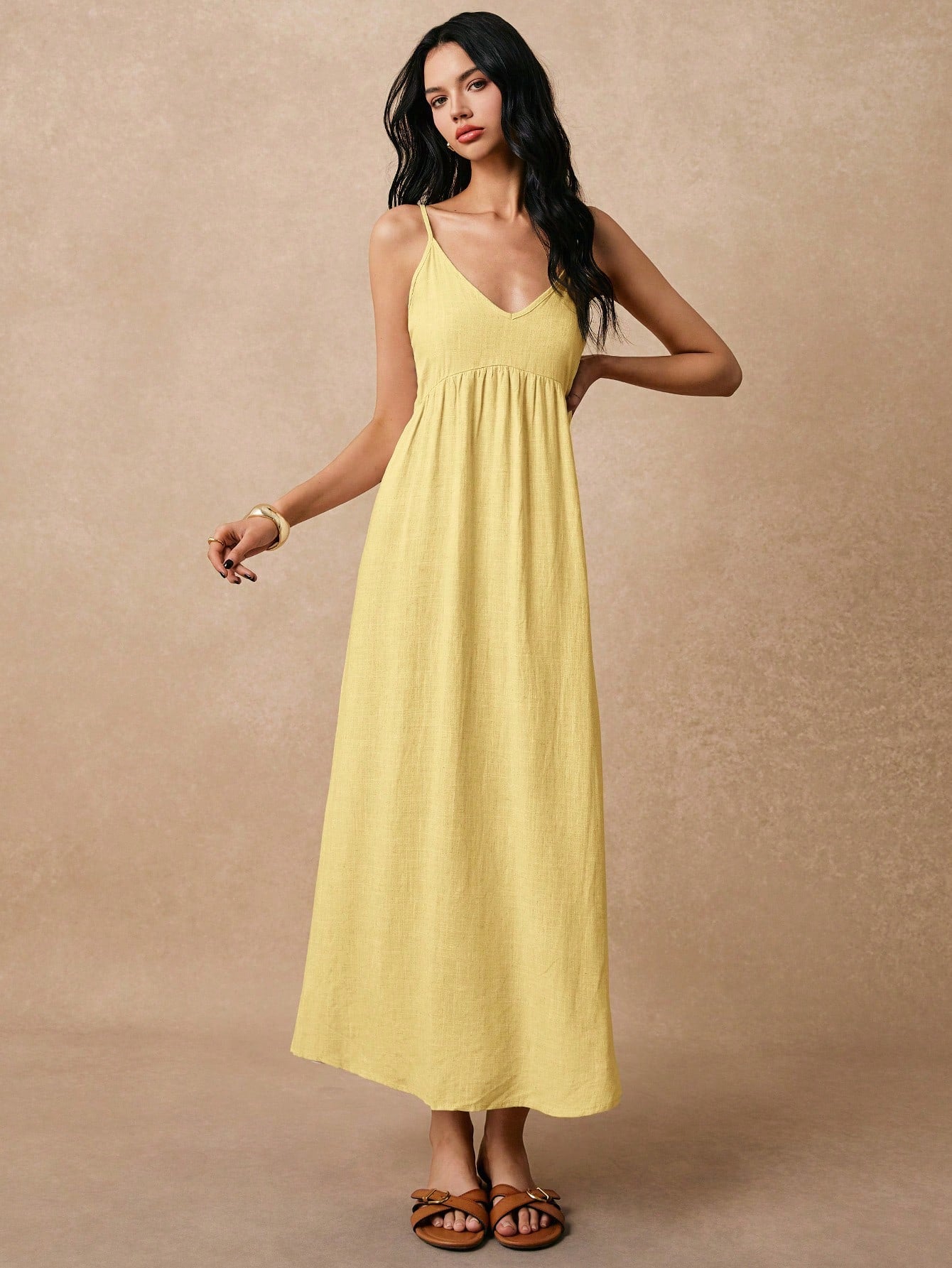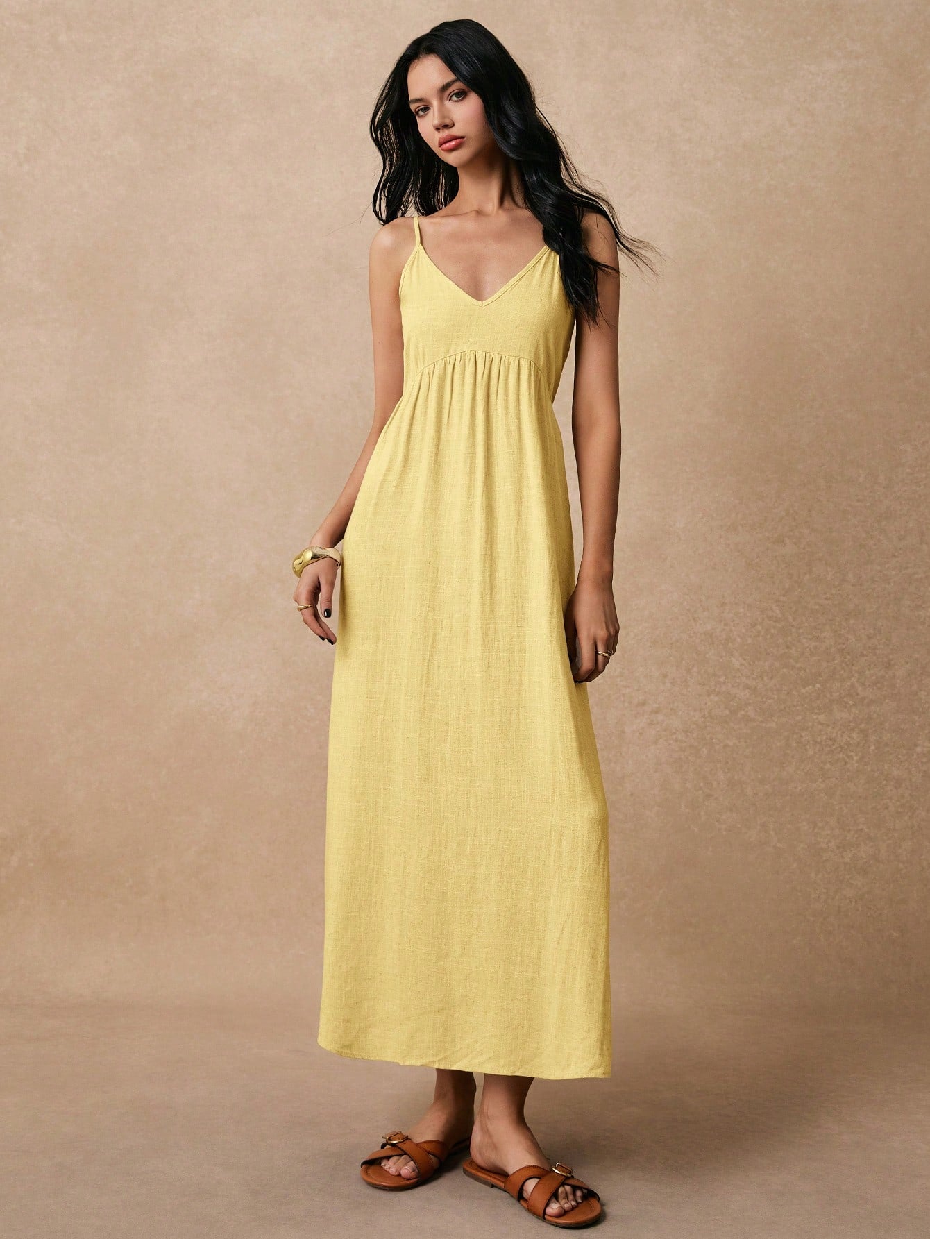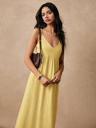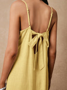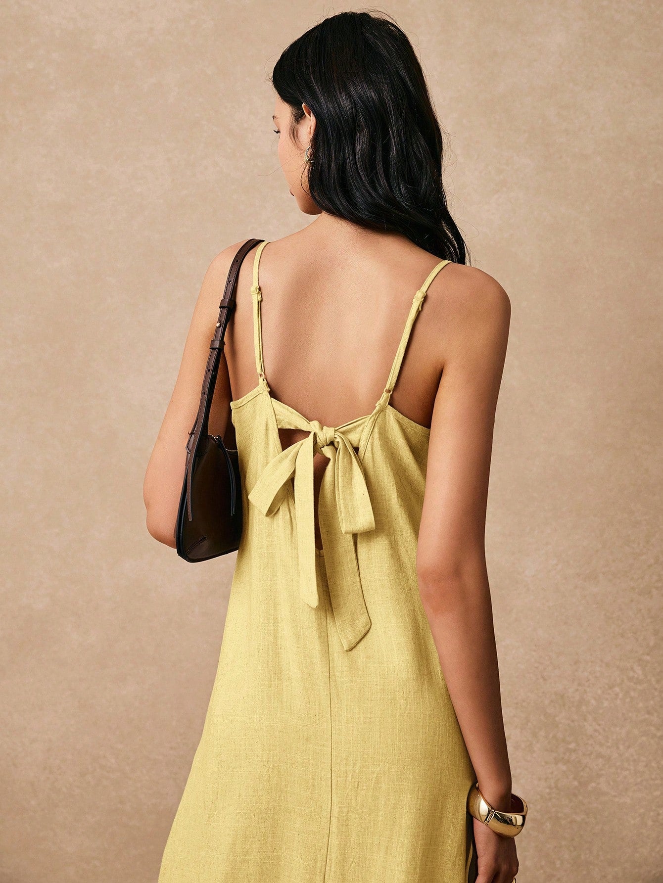 Poelle Women's Backless Bowknot Strap Dress, Loose Linen Dress, Comfortable Casual Beach Holiday Dress,Butter