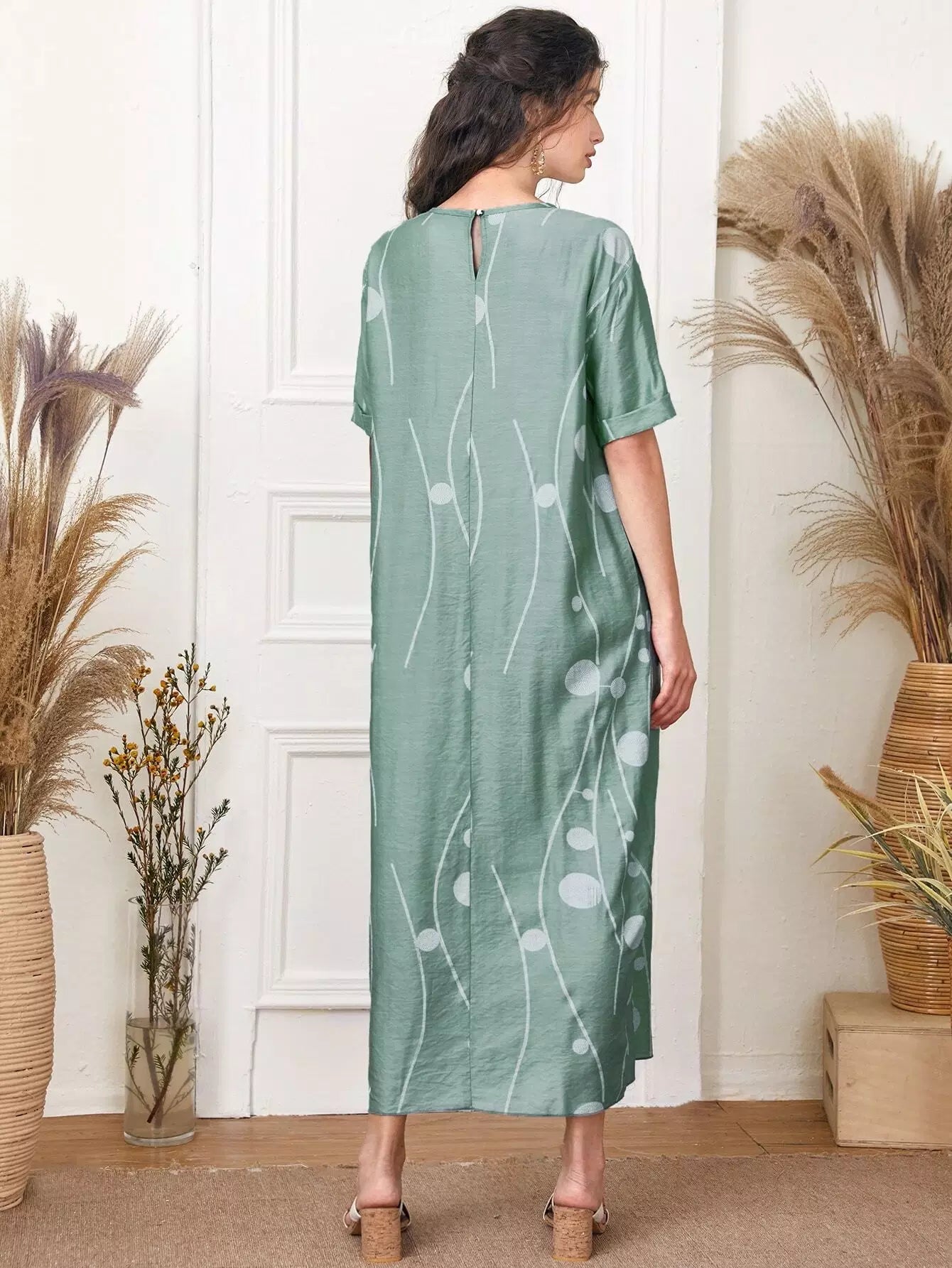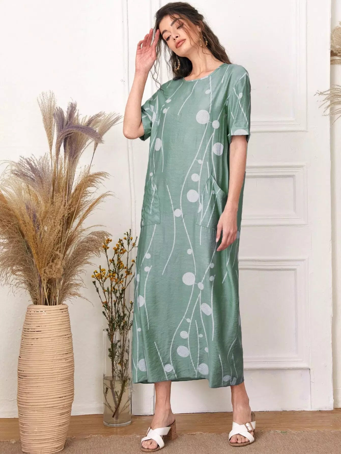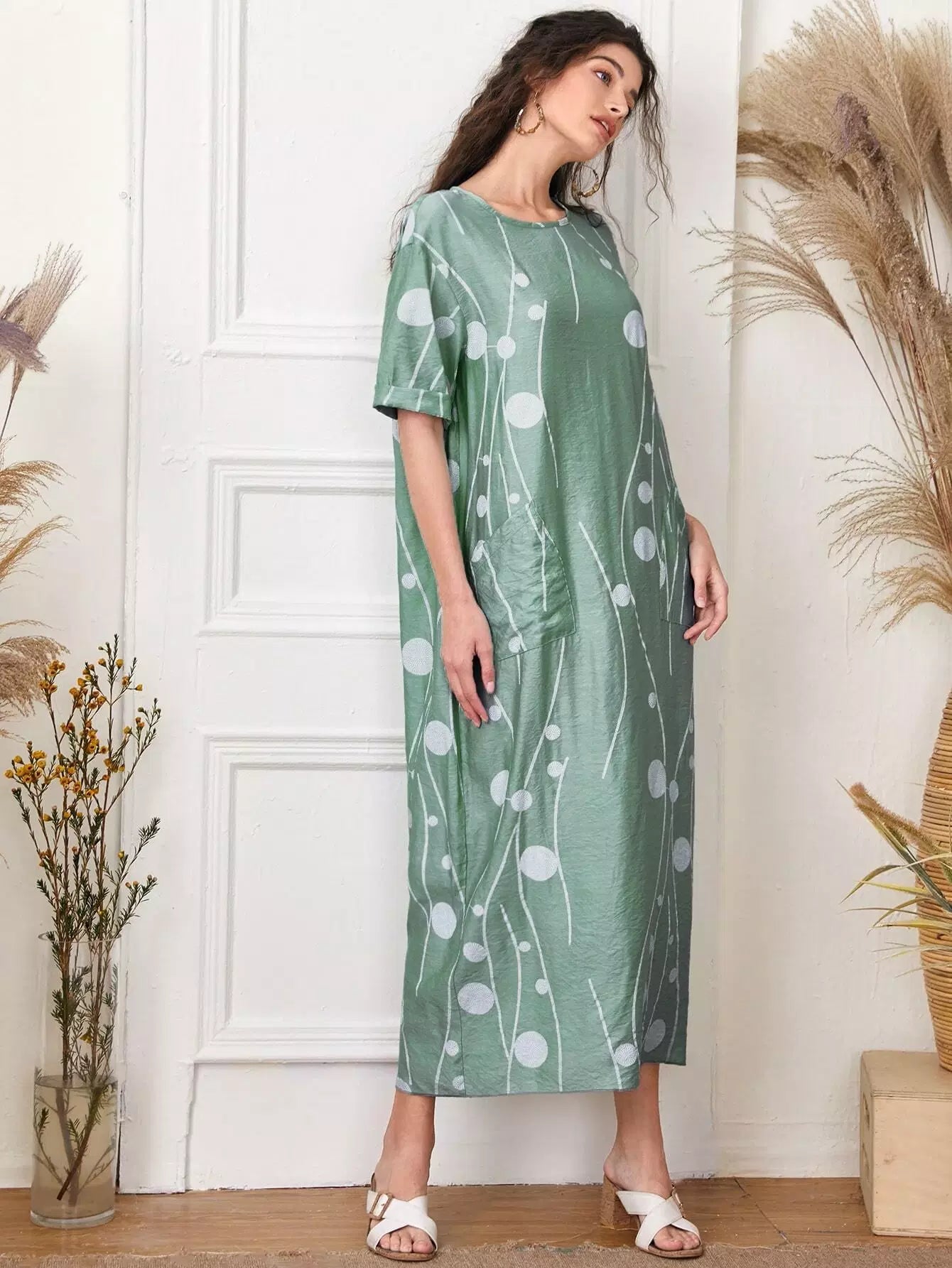 فستان منقّط بجيوب مزدوجة منقّطة منقّطة
