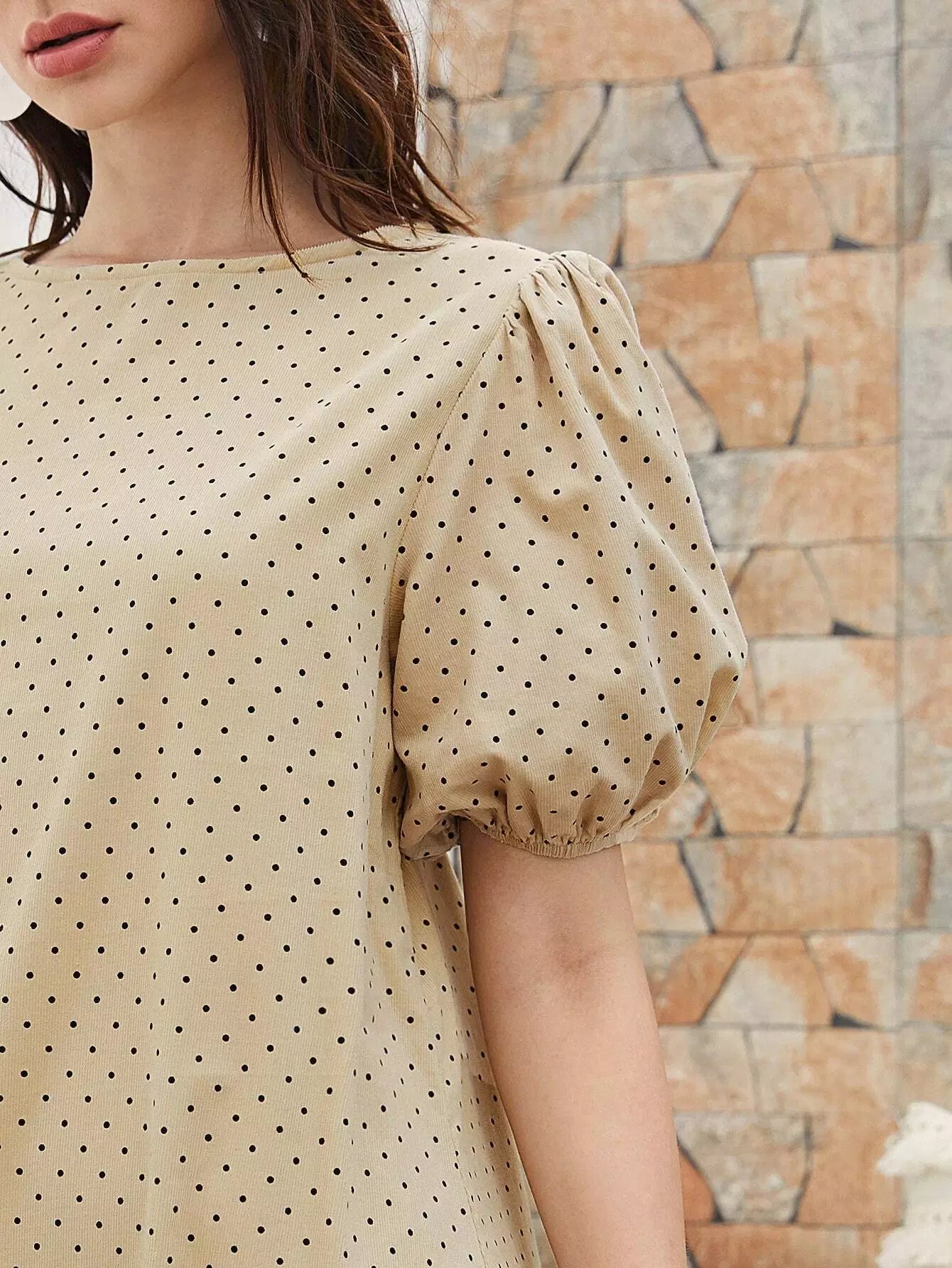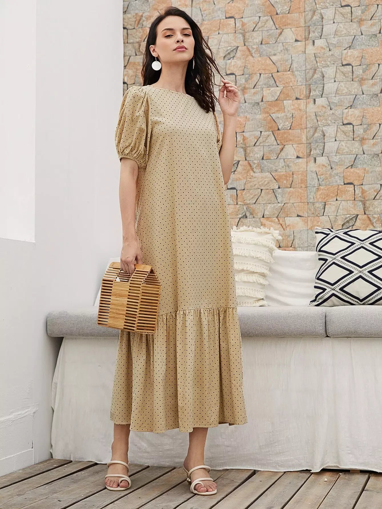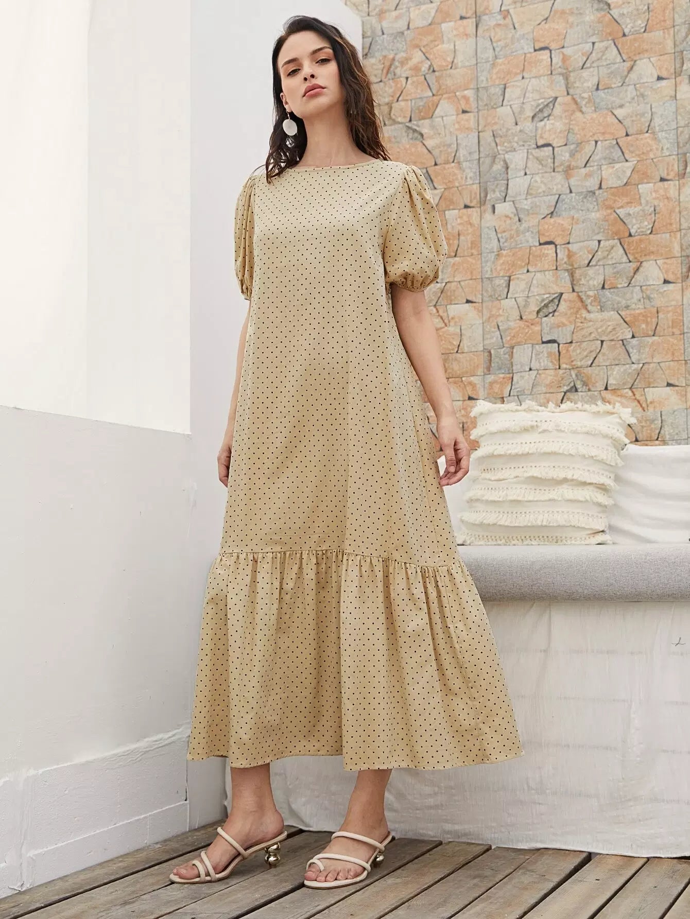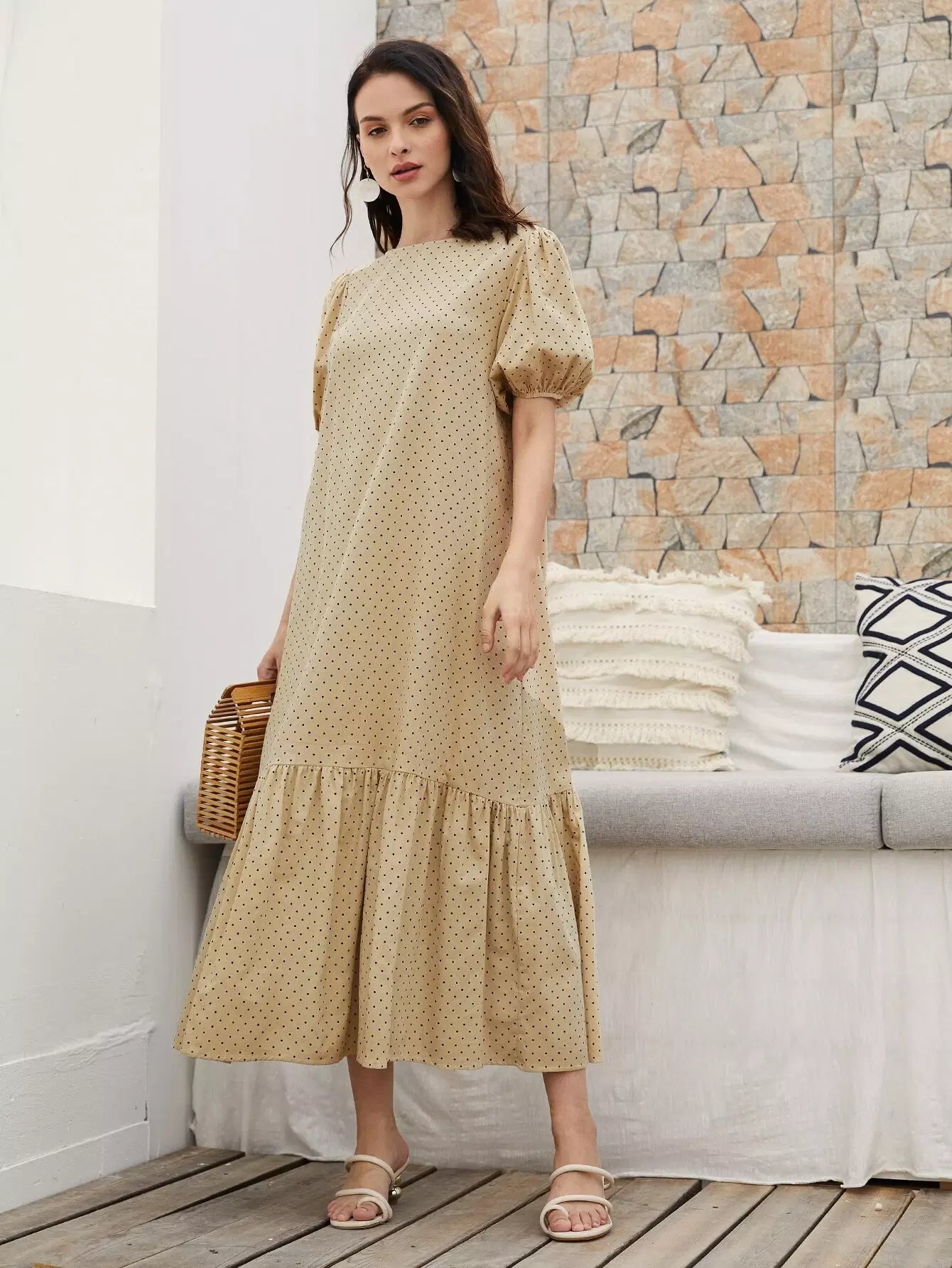 فستان دالماسي بأكمام كشكش منفوشة الحواف