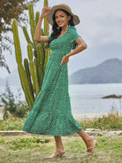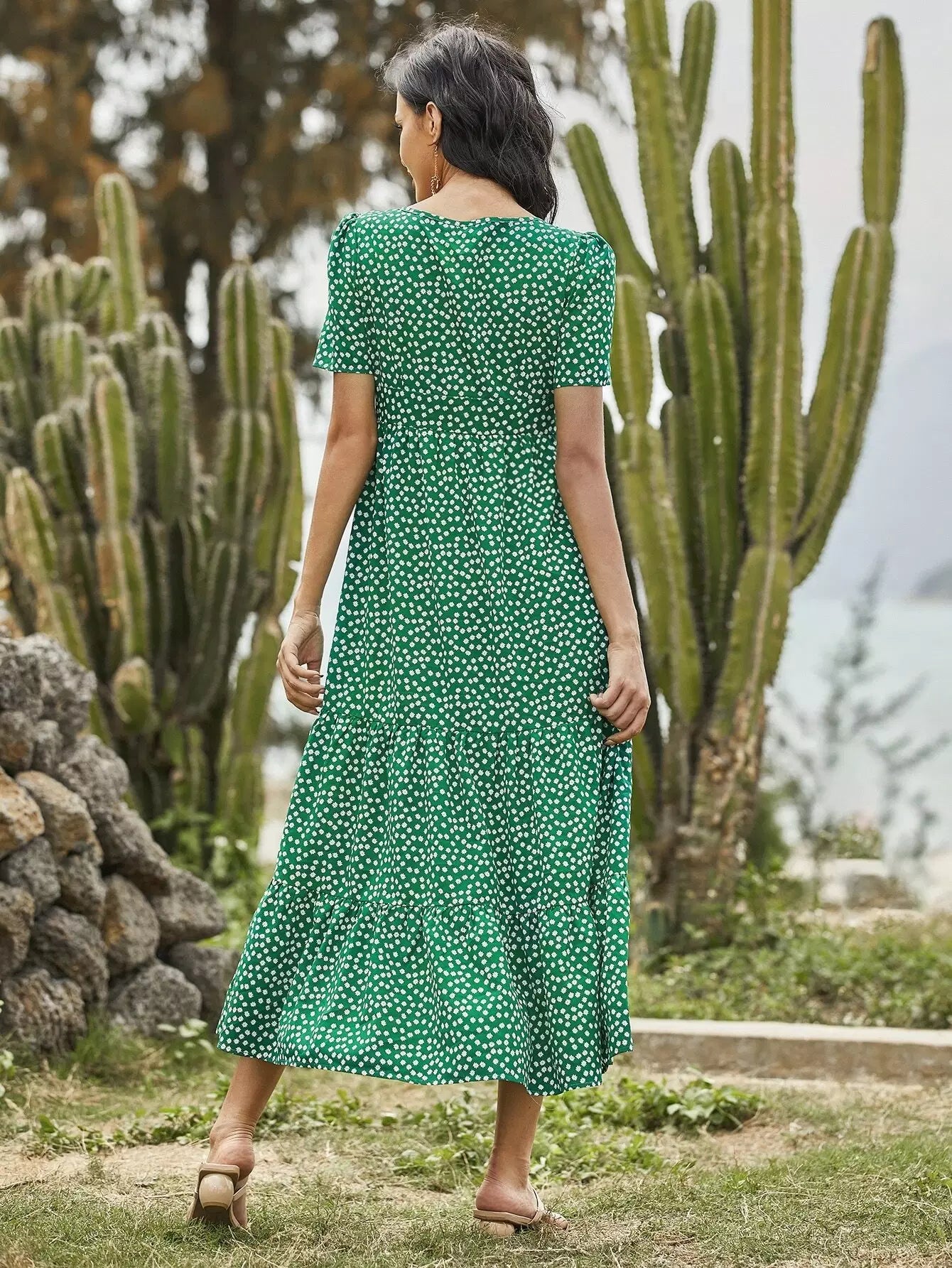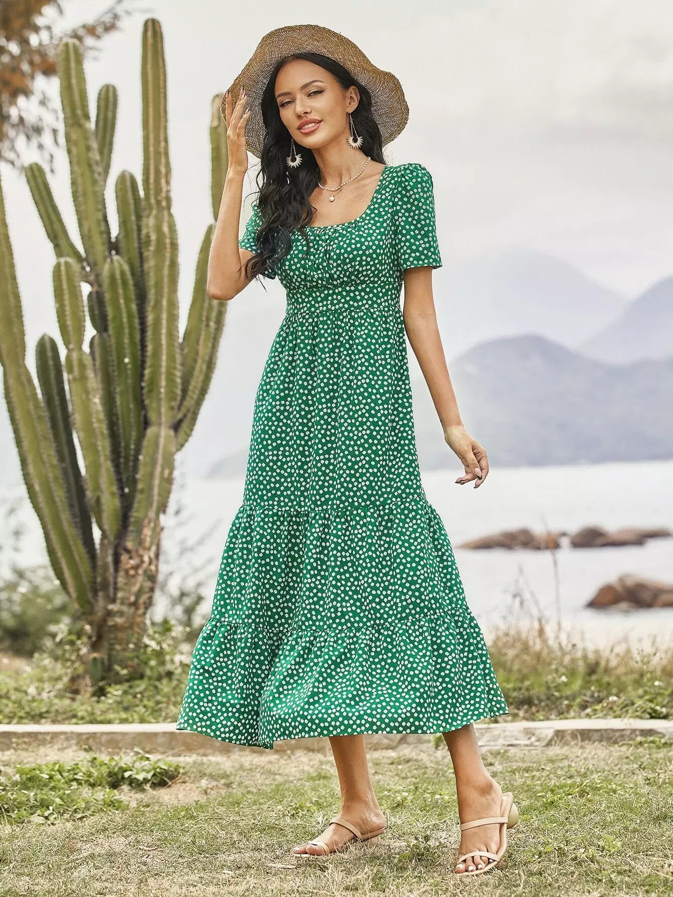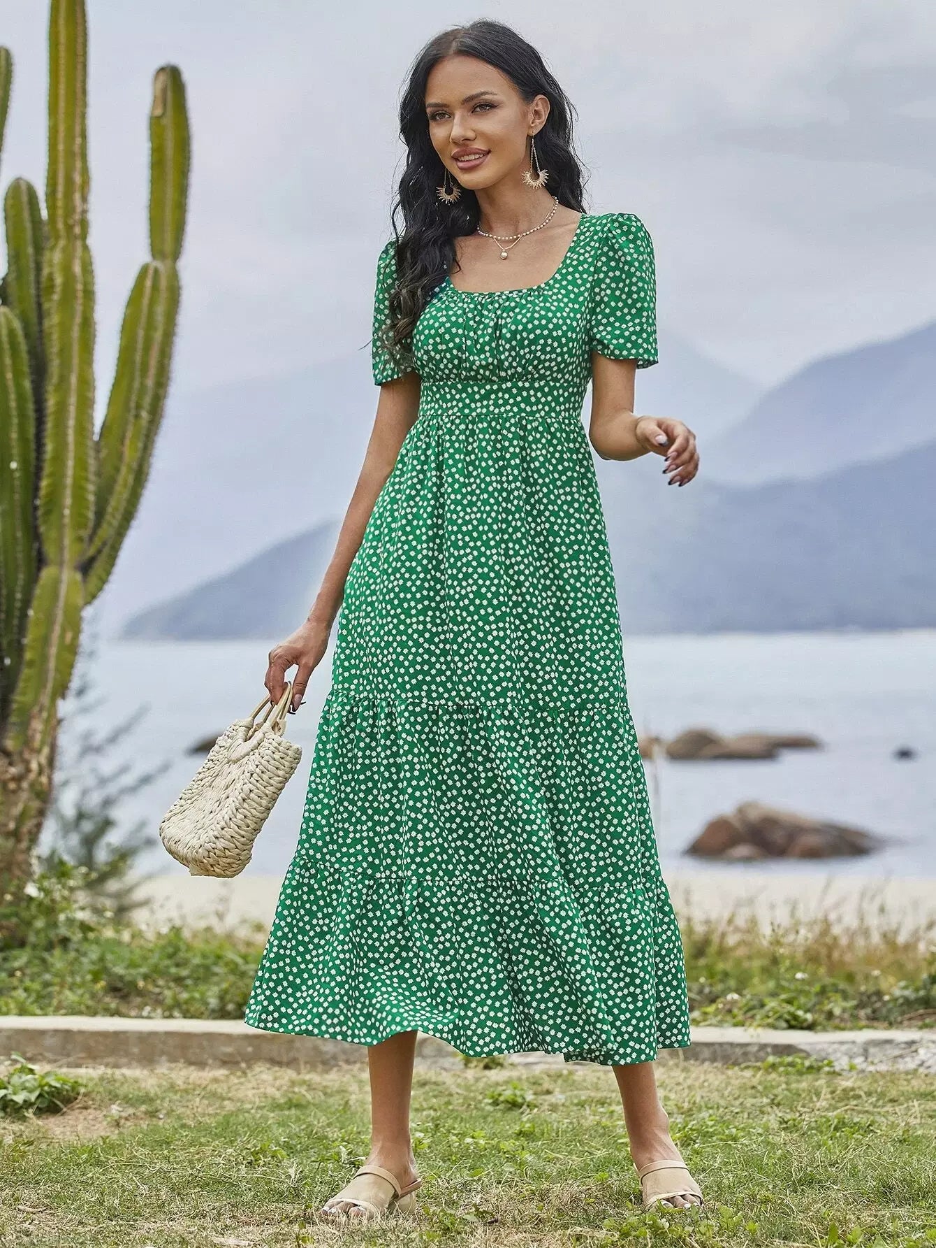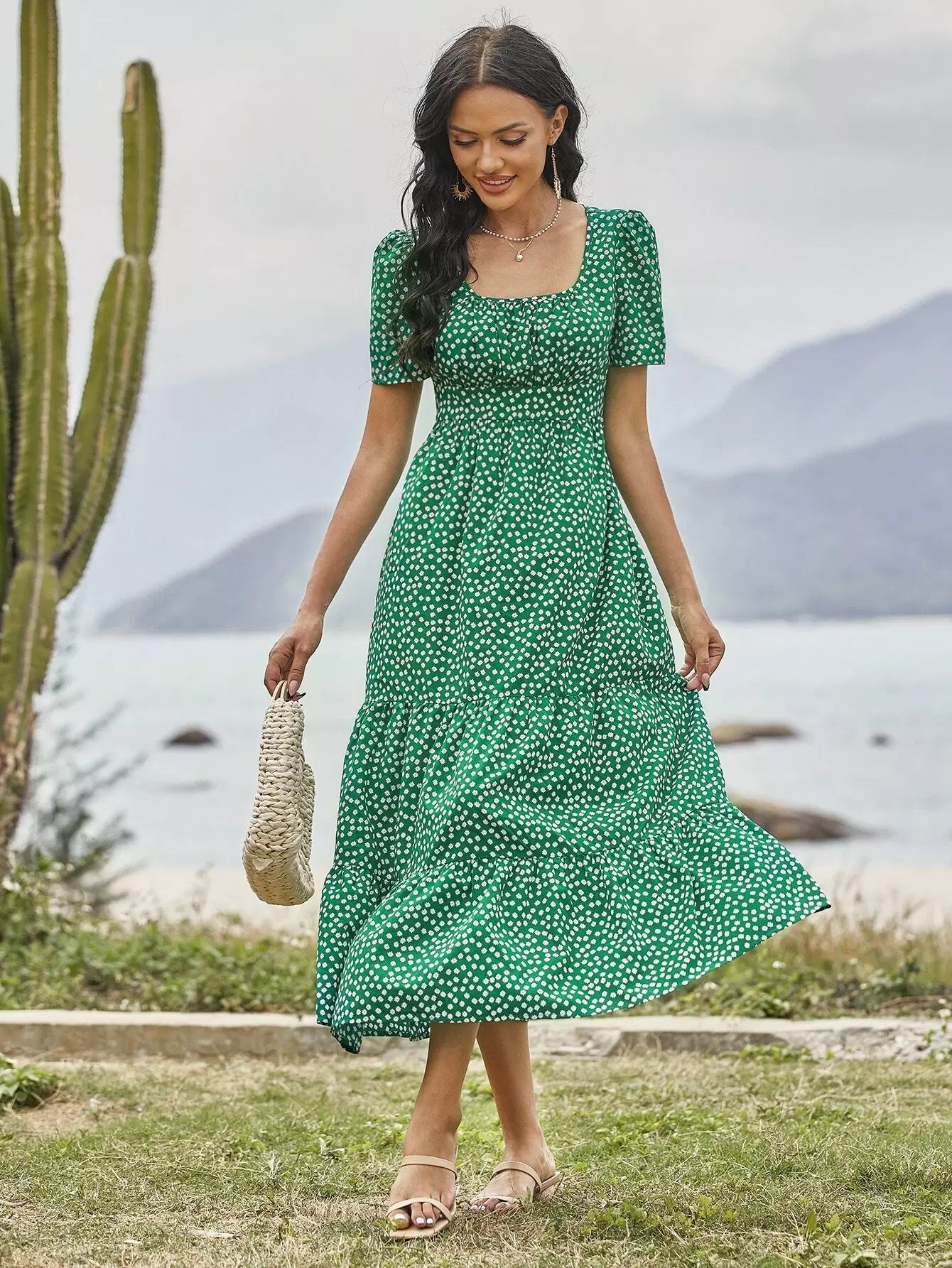 فستان ديتسي مزين بالورود على الصدر مكشكش