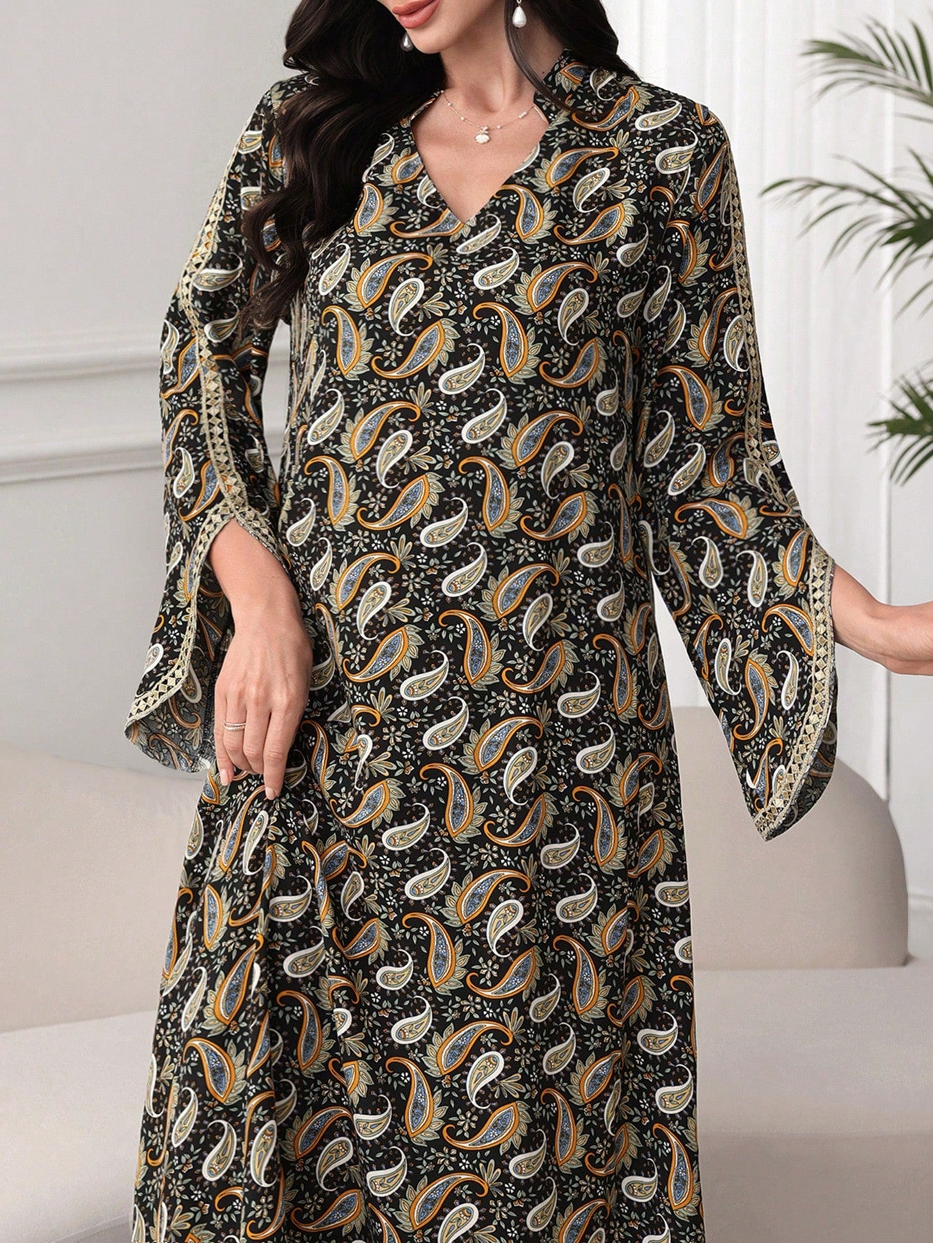 SHEIN Najma Women's Arabic Style Long Sleeve Dress, Fashionable For Summer