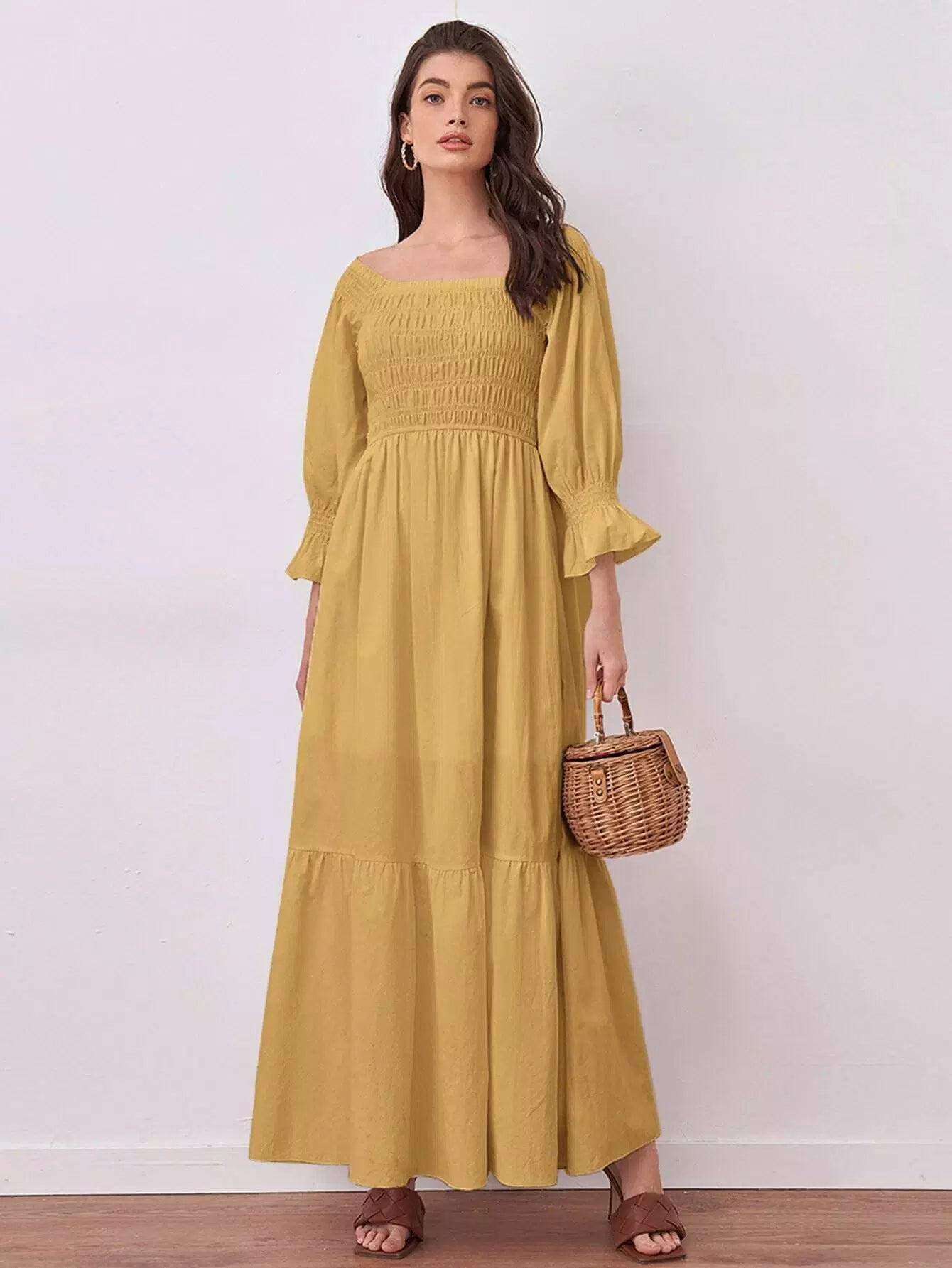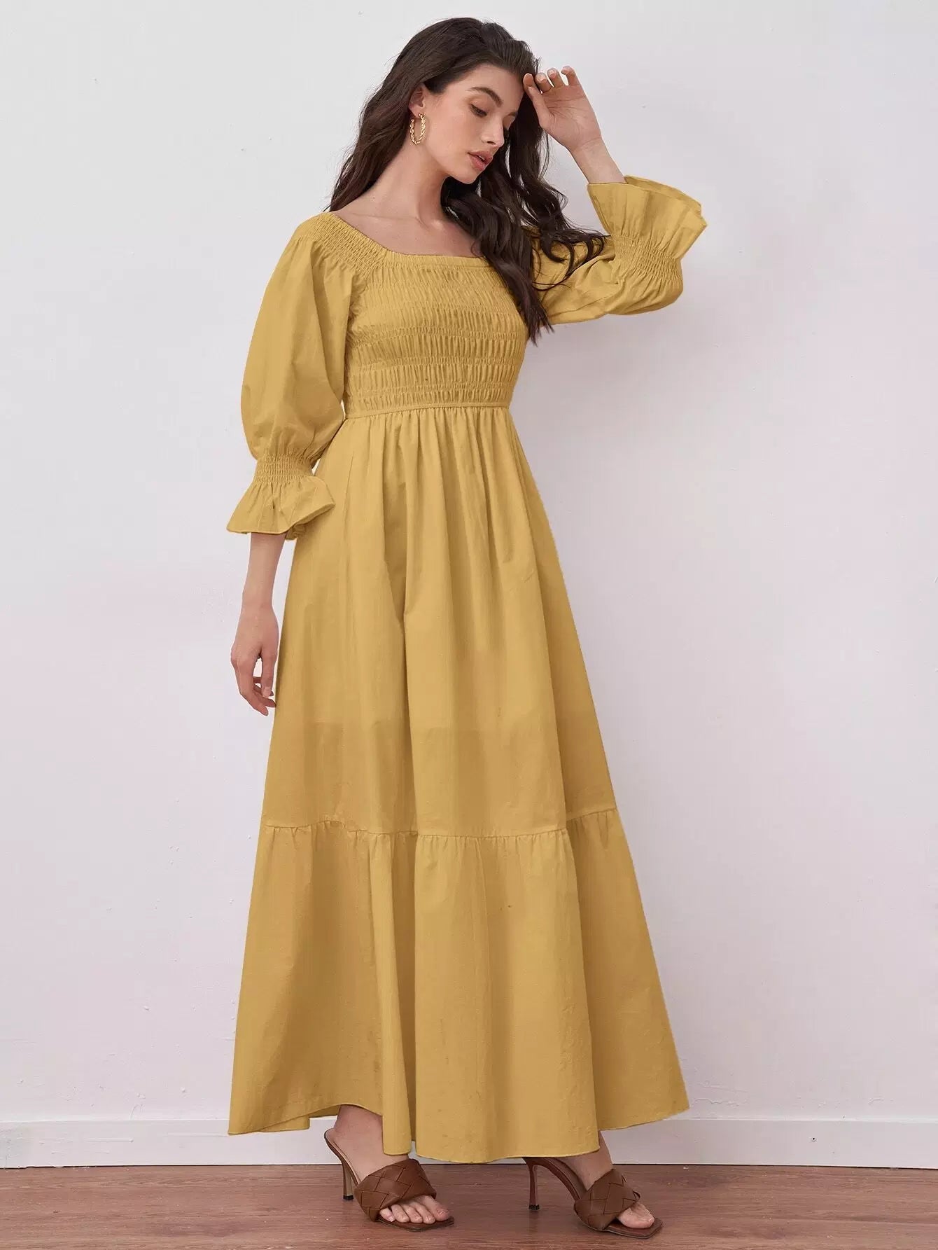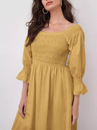 فستان بأكمام كشكش على الصدرية وأكمام منفوشة