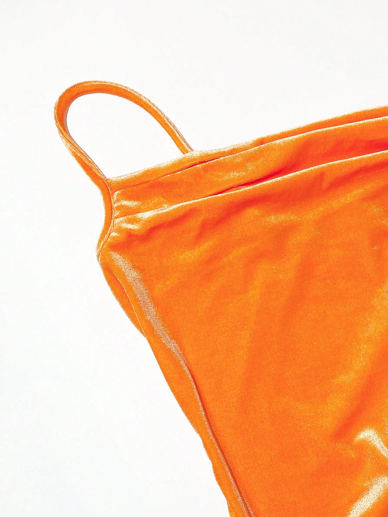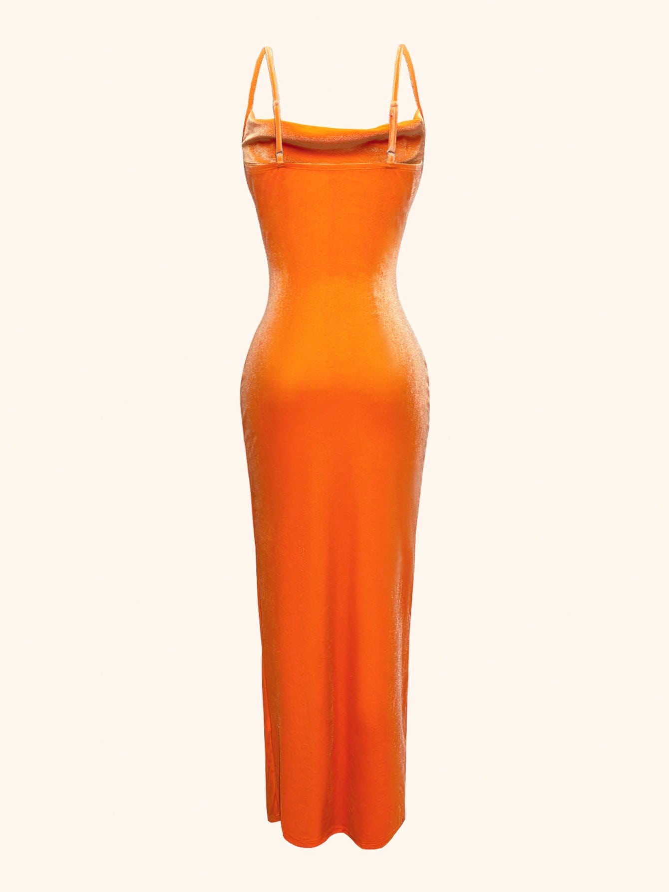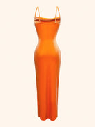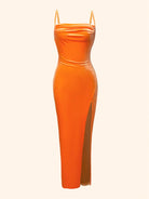 Slayr Women's Orange Velvet Spaghetti Strap Bodycon Sexy Side Slit Elegant Midi Party Dress