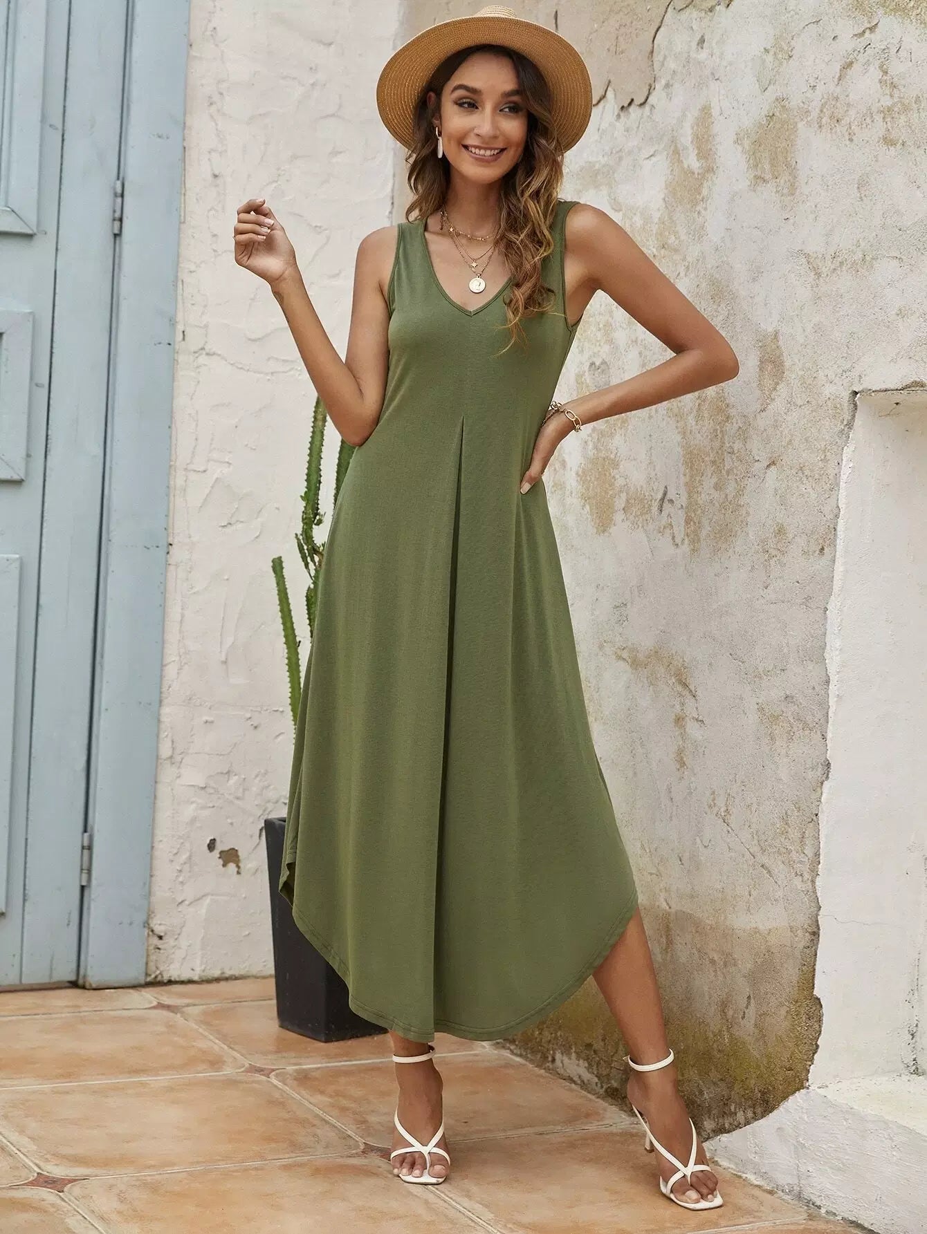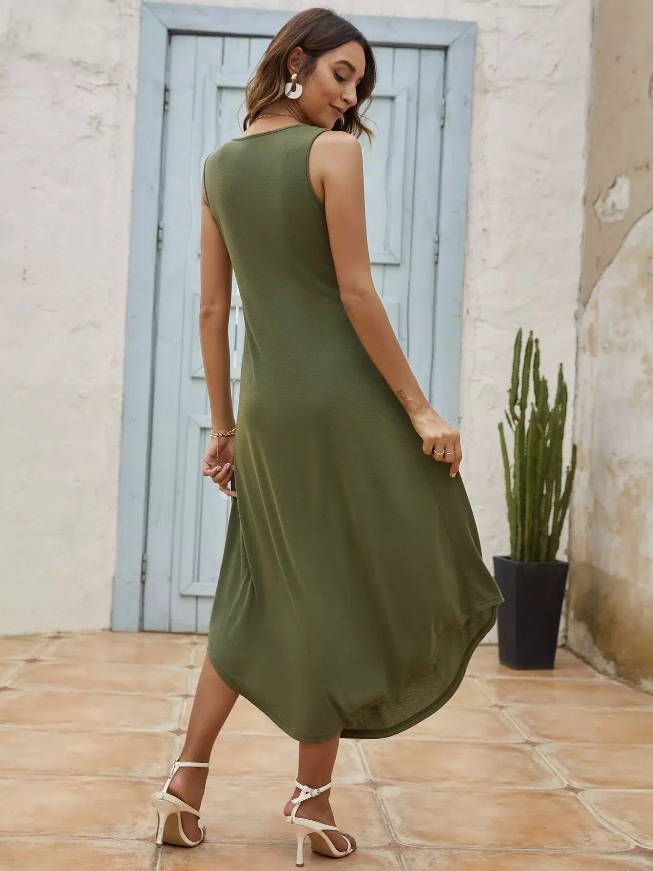 فستان بحافة غير متناظرة سادة بحافة غير متناظرة