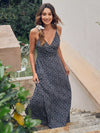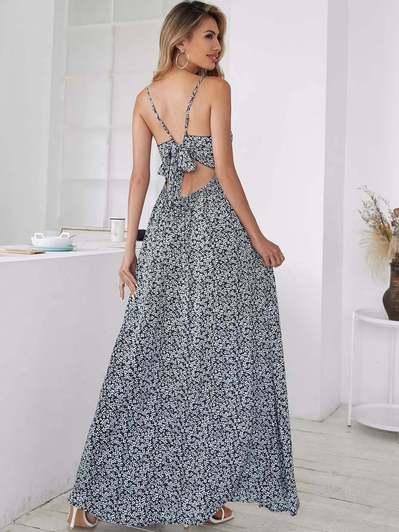 فستان قصير بياقة بربطة عنق برباط من الخلف مزين بالورود