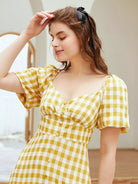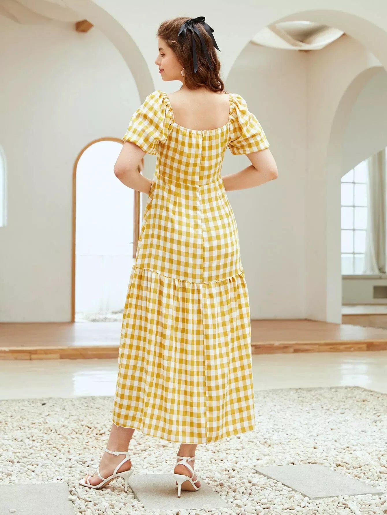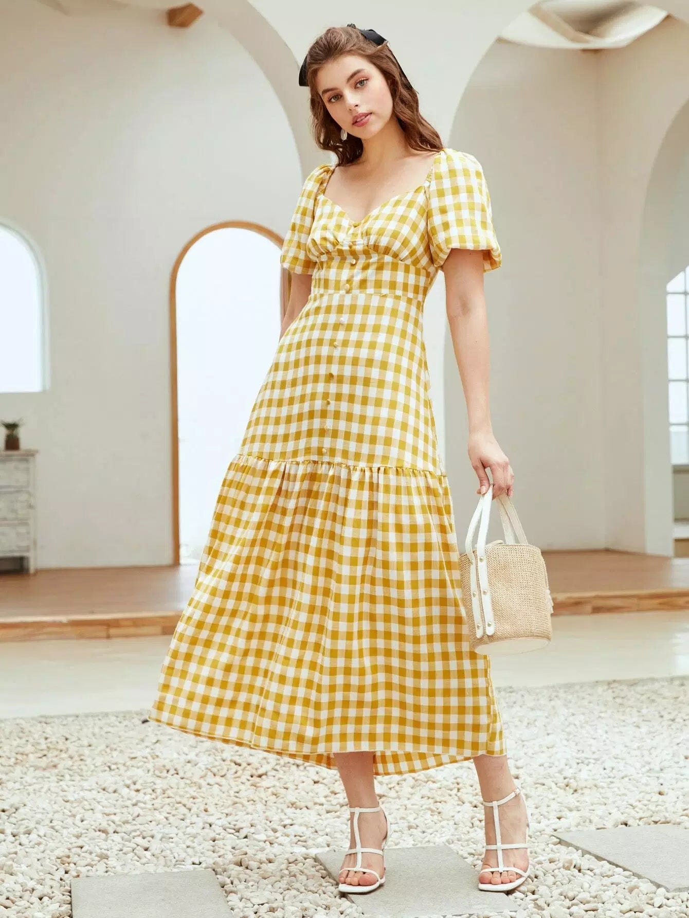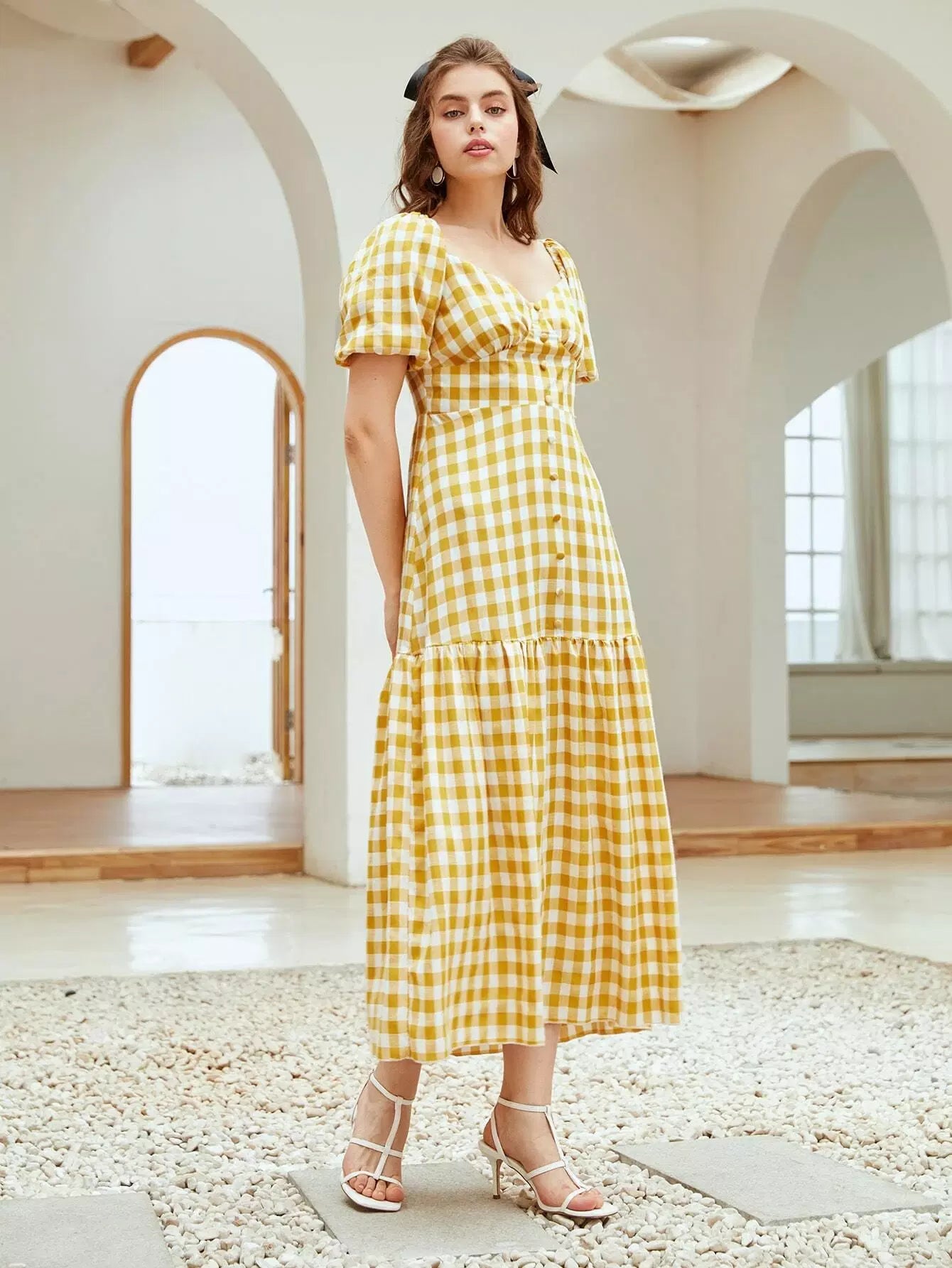 فستان قطني مكشكش برقبة على شكل كشكش برقبة سويت هارت برقبة على شكل كشكش