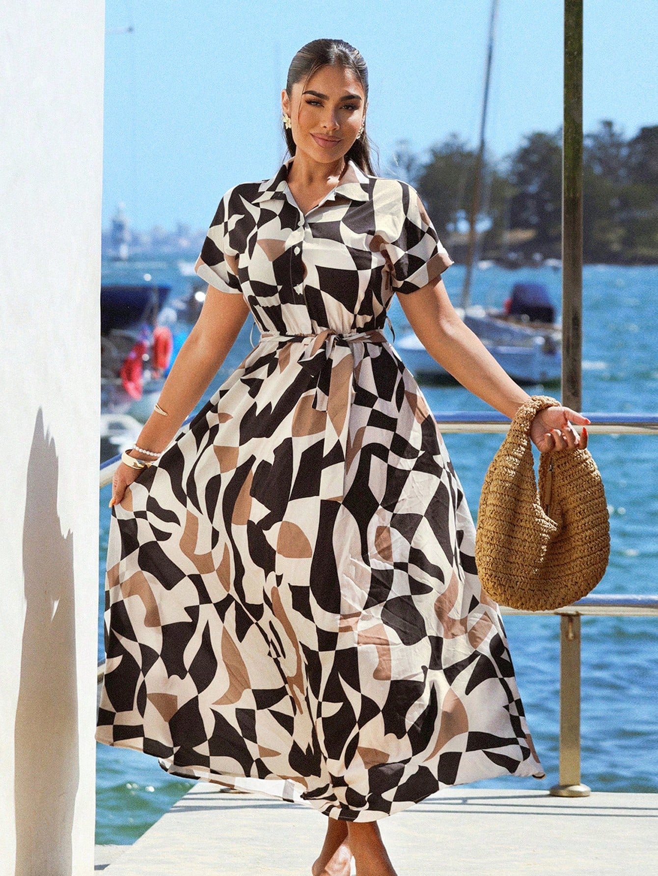 SXY Women's Casual Vacation Geo Print Shirt Dress, Old Money, Festival, Summer Dresses, Going Out