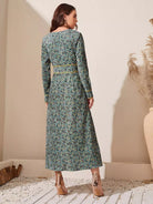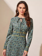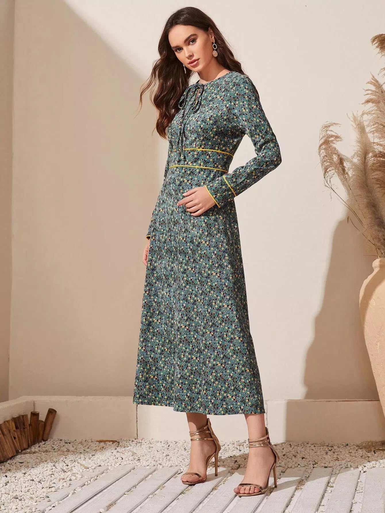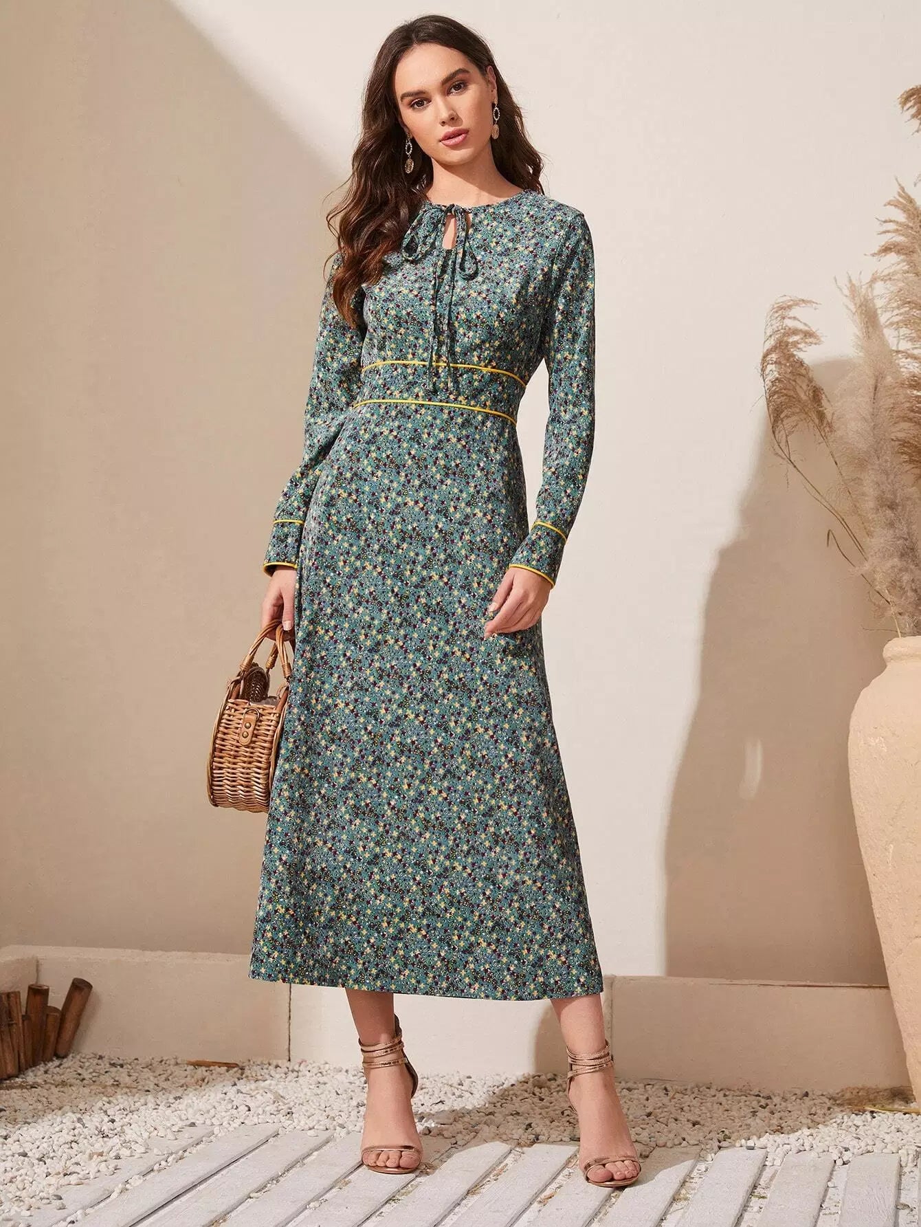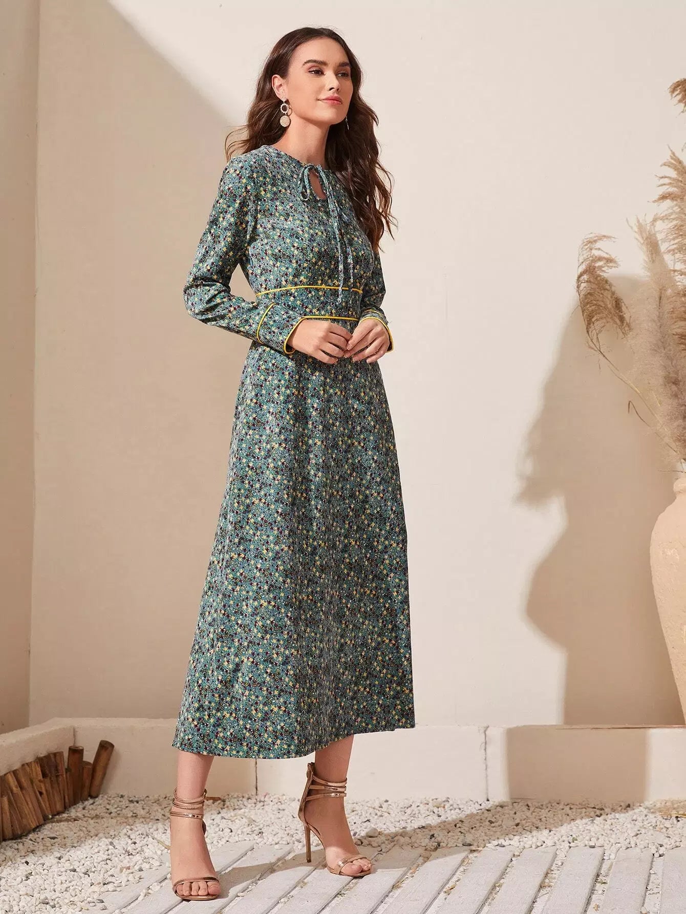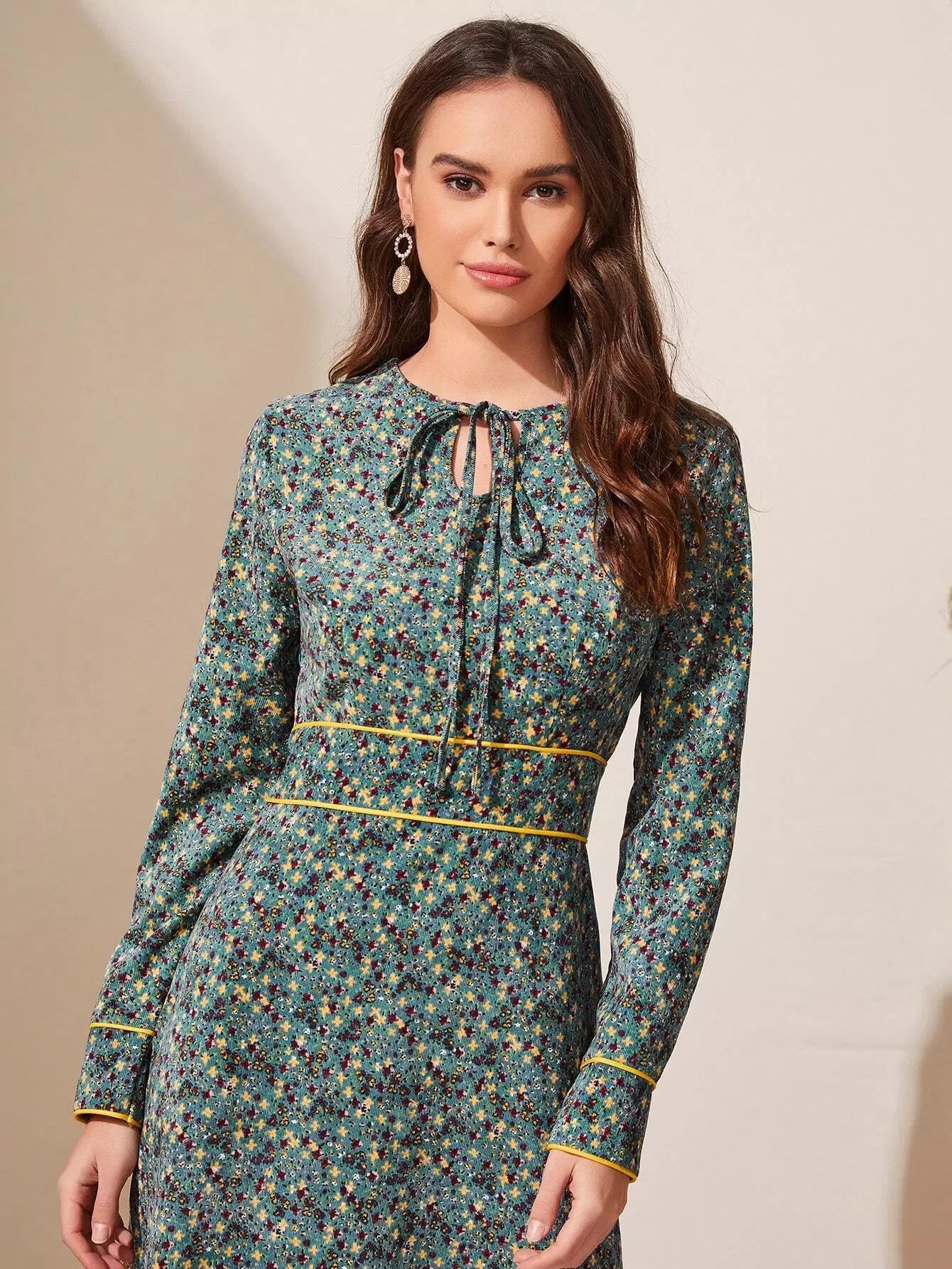 فستان A-line مزين بالزهور الصغيرة مع رباط حول الرقبة