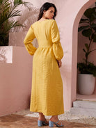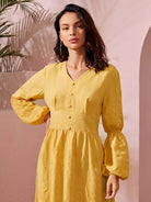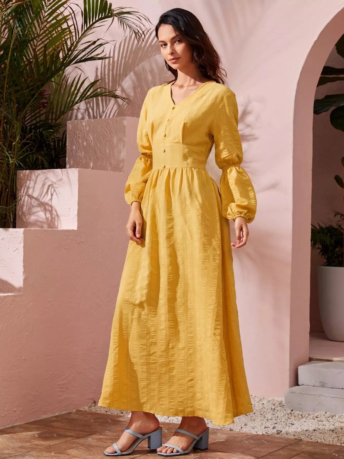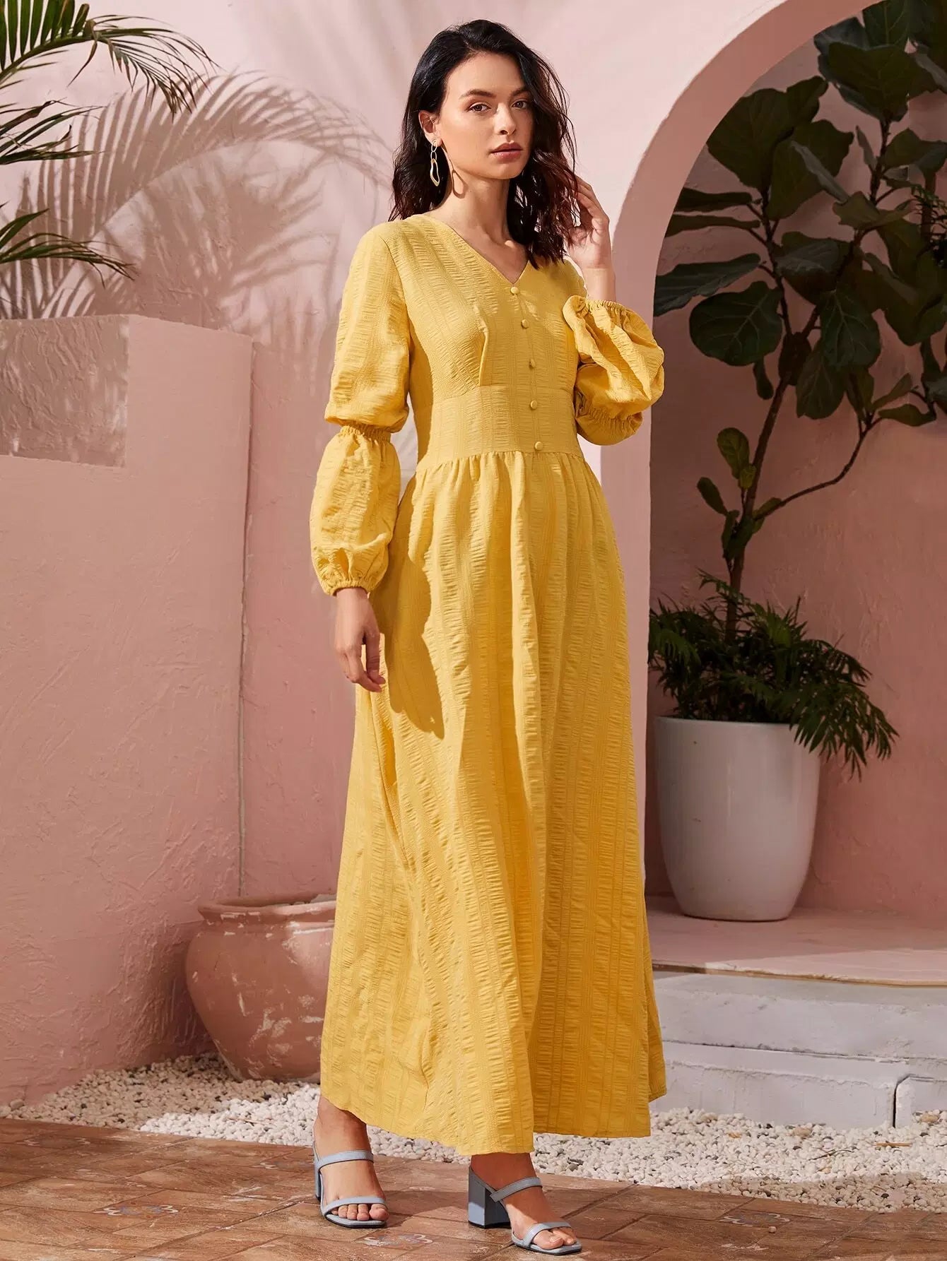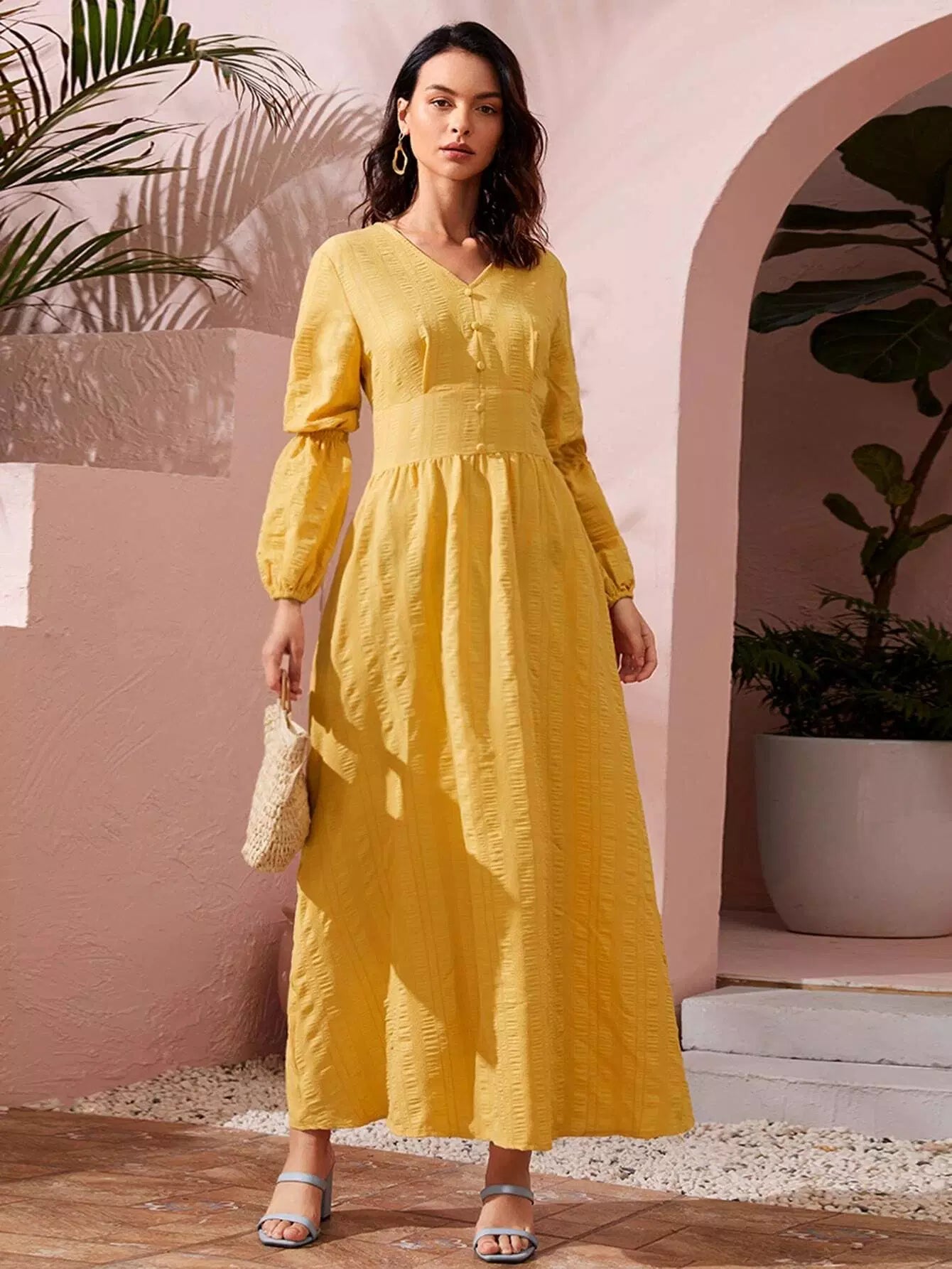 فستان على شكل حرف A بأكمام أسقف وفتحة رقبة على شكل حرف V