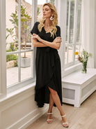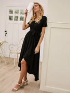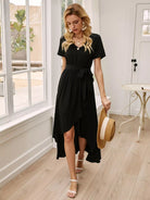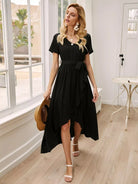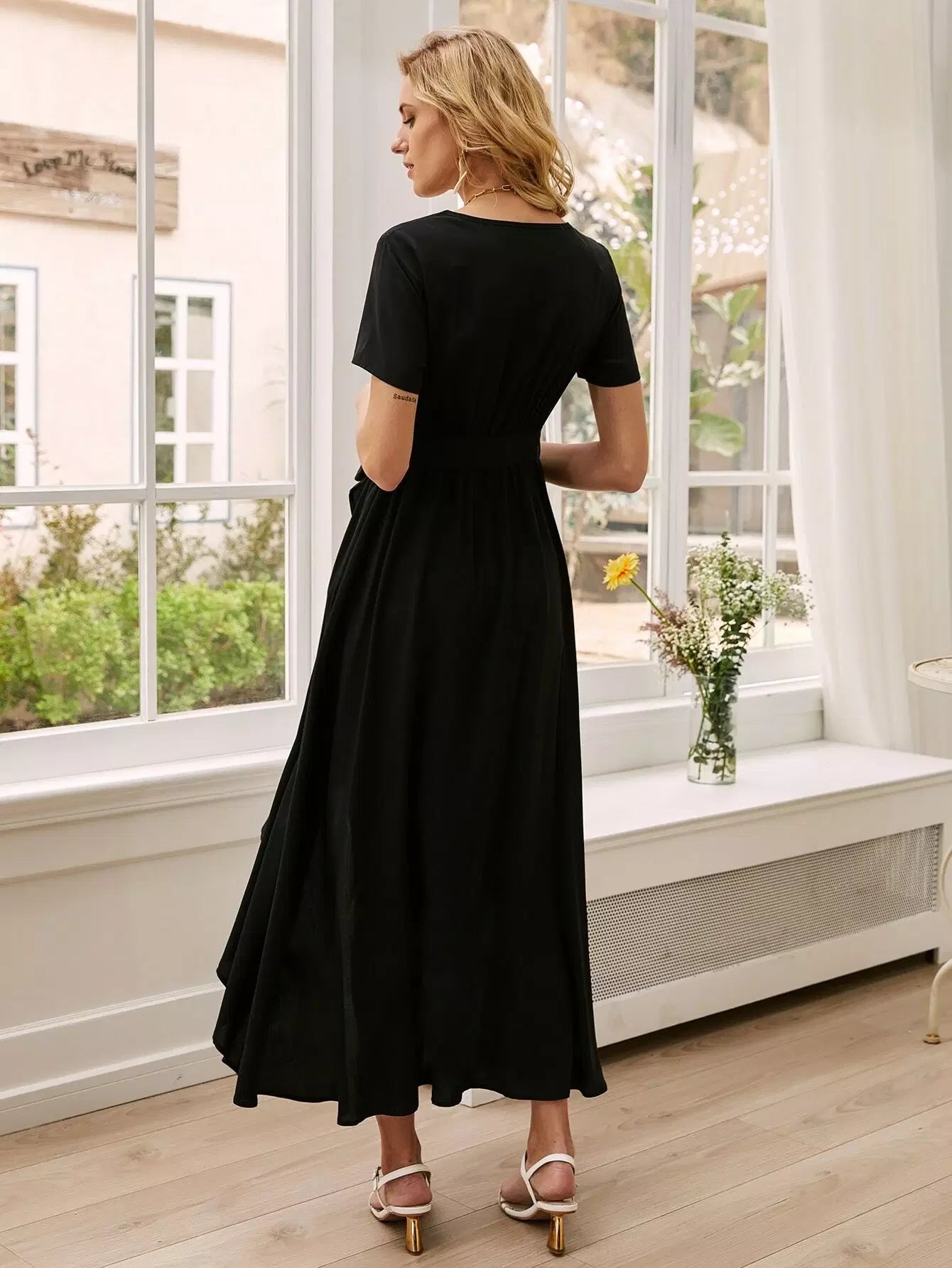 فستان بياقة على شكل حرف A بياقة على شكل حرف V وربطة عنق على شكل حرف A