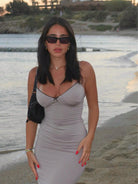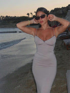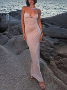 فستان نسائي مثير للشاطئ مع فيونكة وحواف من الدانتيل