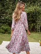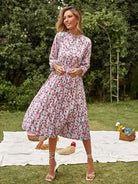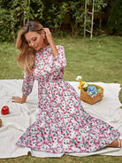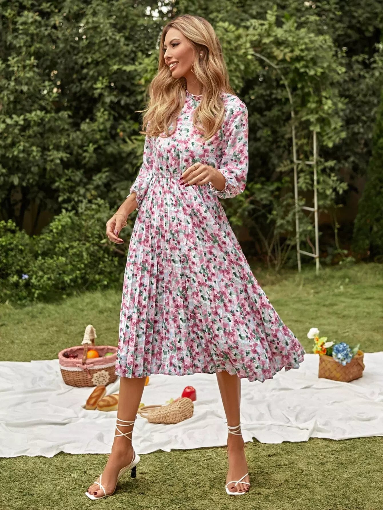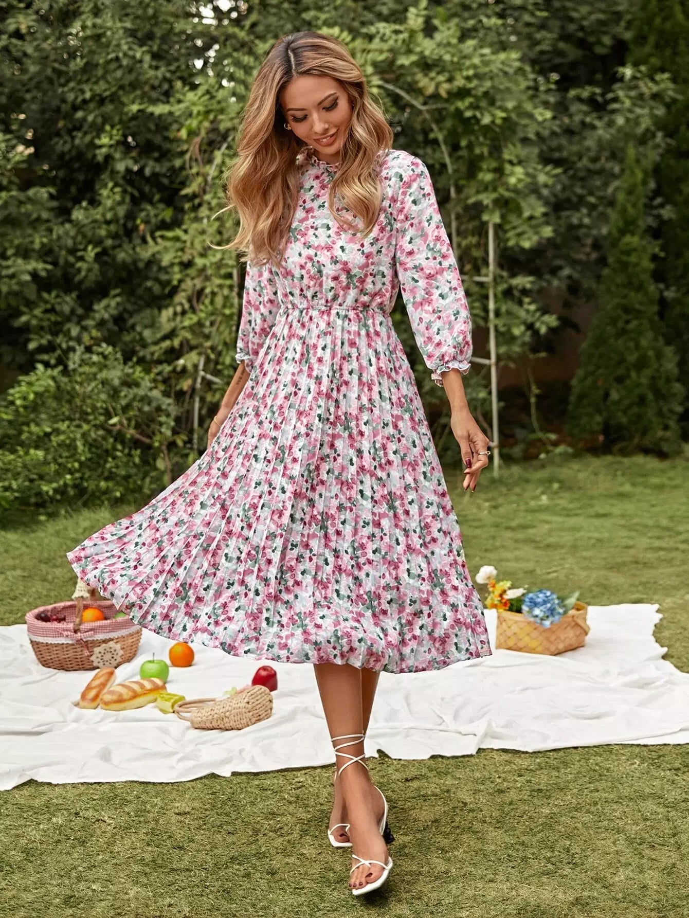 فستان ميدي بحافة مطوي بطيات زهرية بالكامل