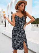 للنساء - فستان كامي بحاشية مقسمة ومطبوع بالكامل