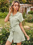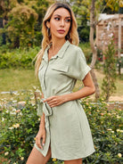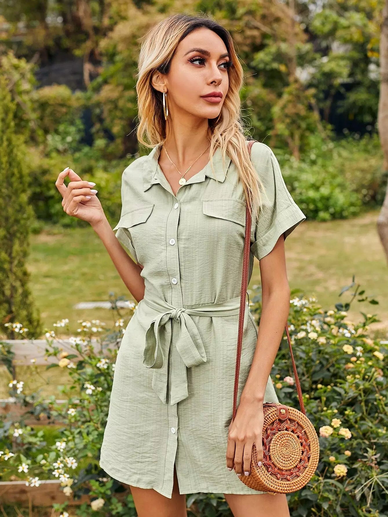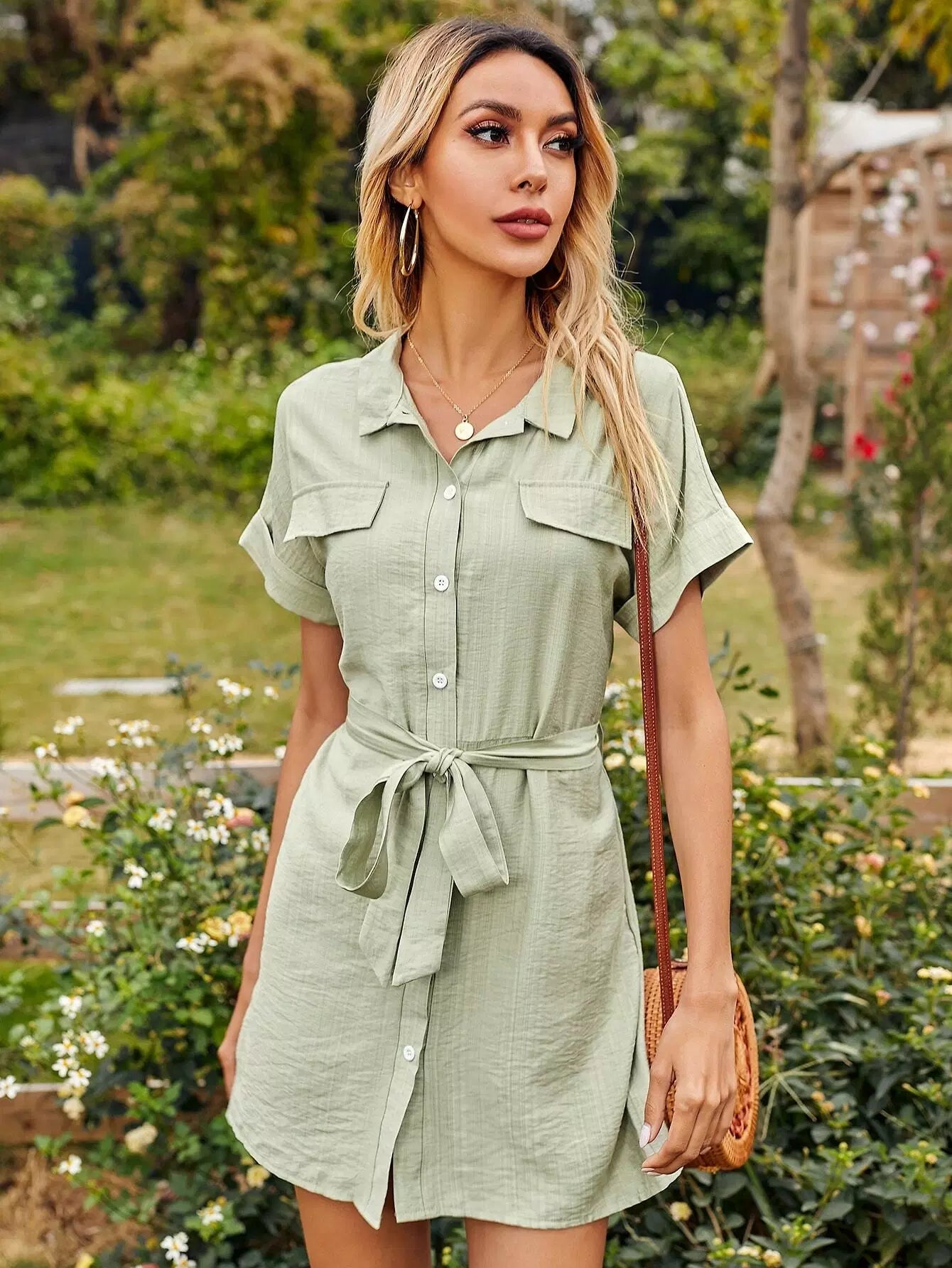 للنساء - فستان قميص بأزرار أمامية وحزام