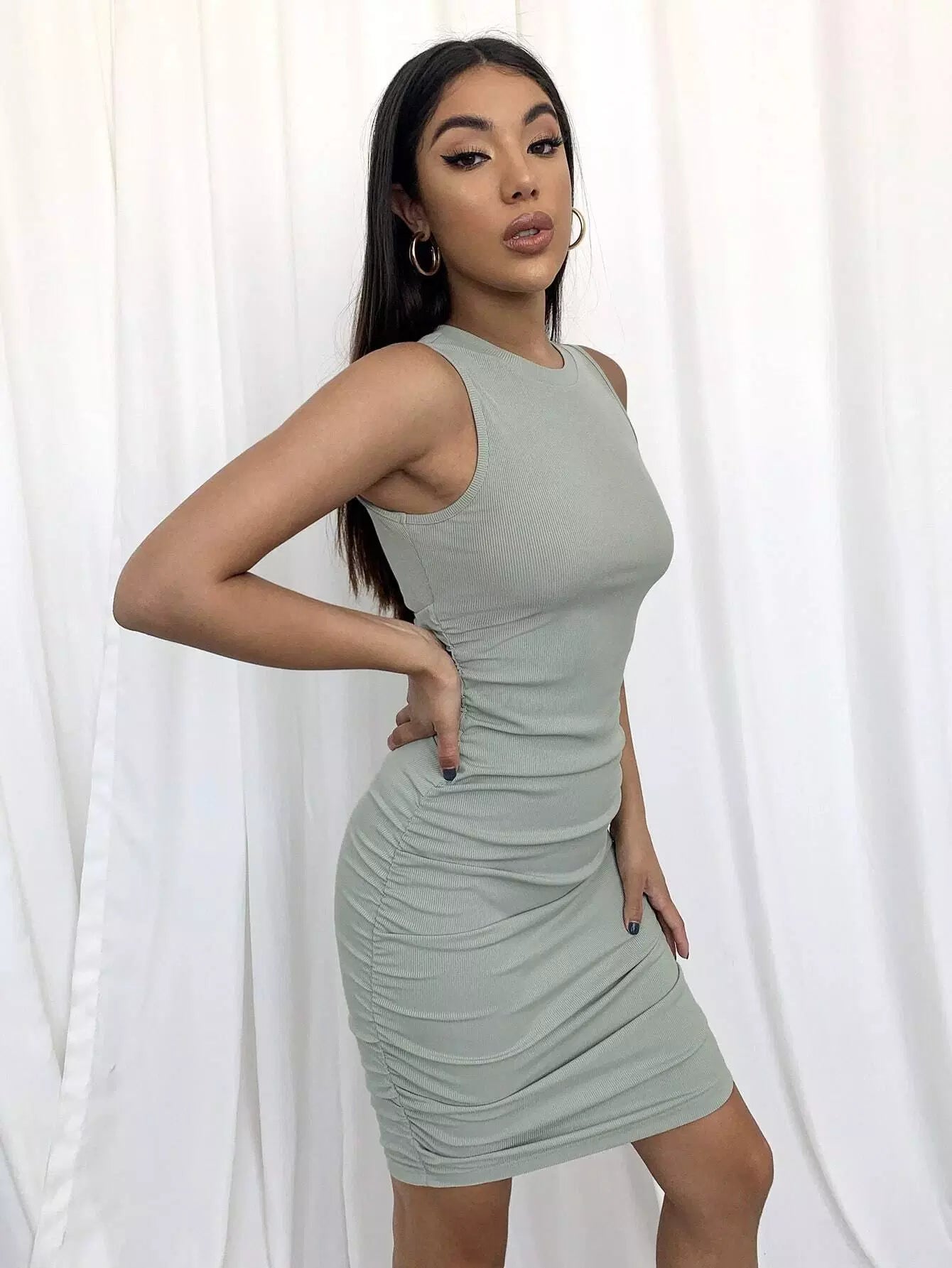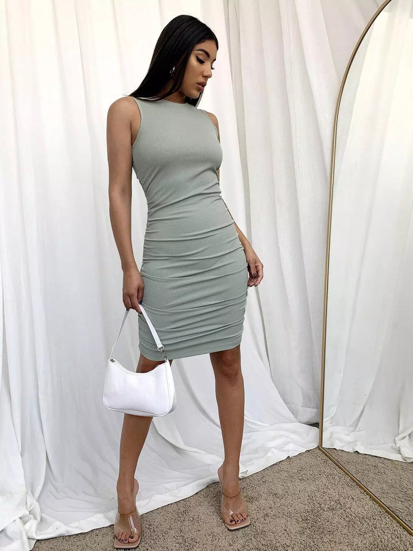 فستان بوديكون بحياكة ضلعية سادة بفتحات متماسكة ومفتوحة من الأمام والخلف
