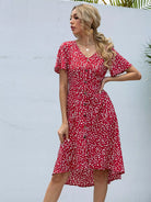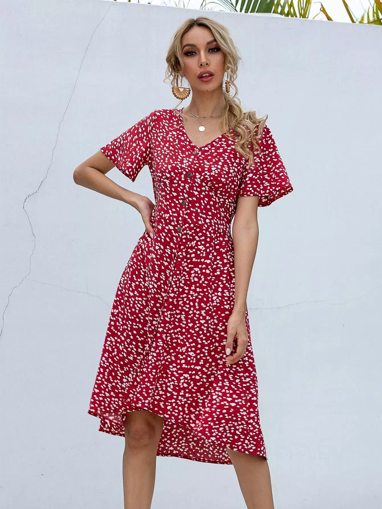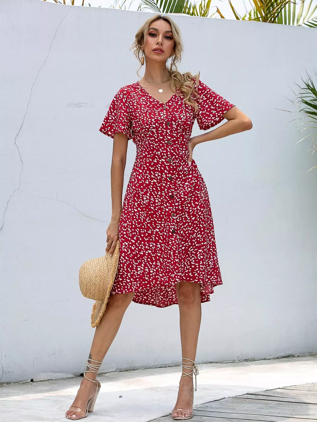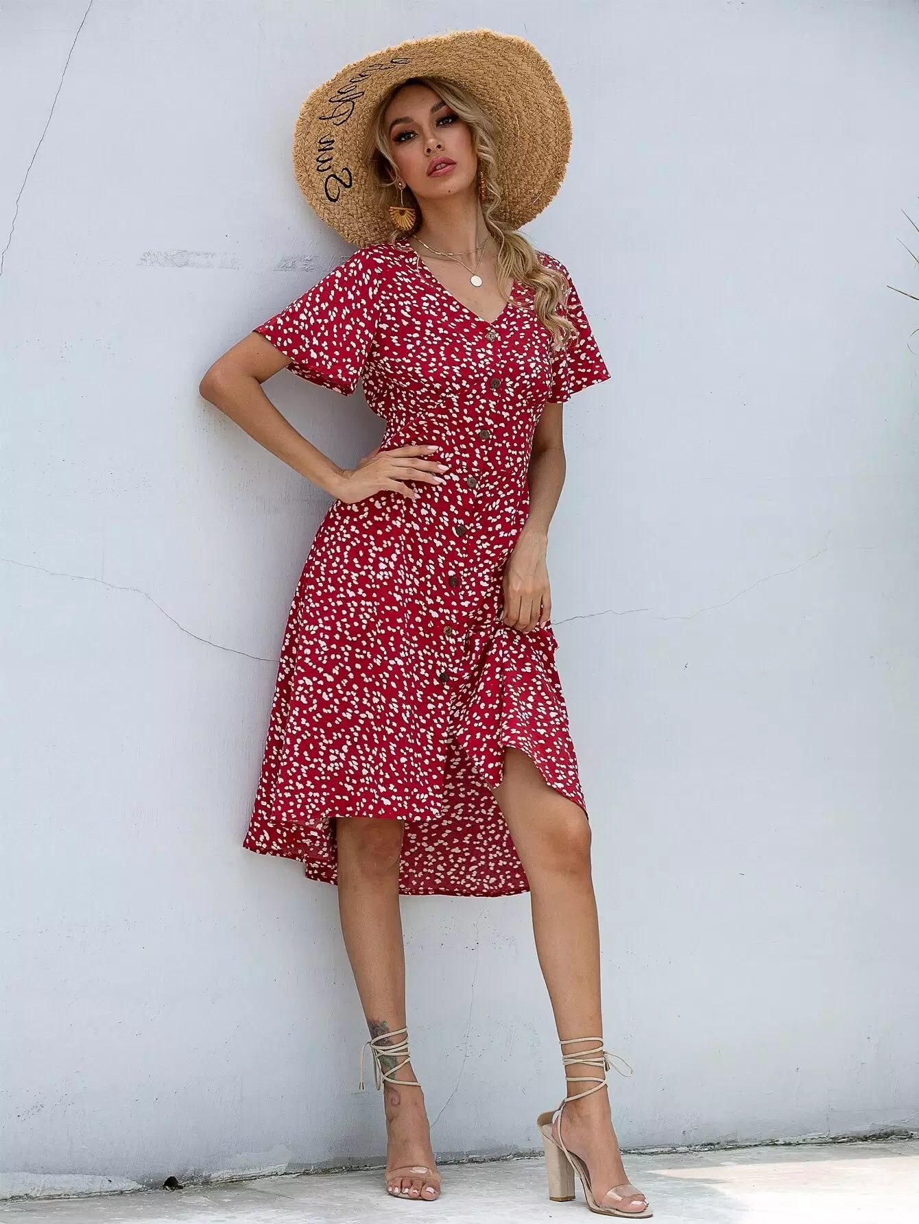 فستان ديتسي بطبعة أزهار مطبوع بأزرار أمامية