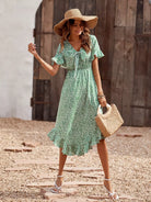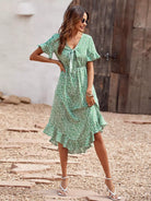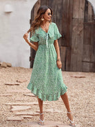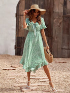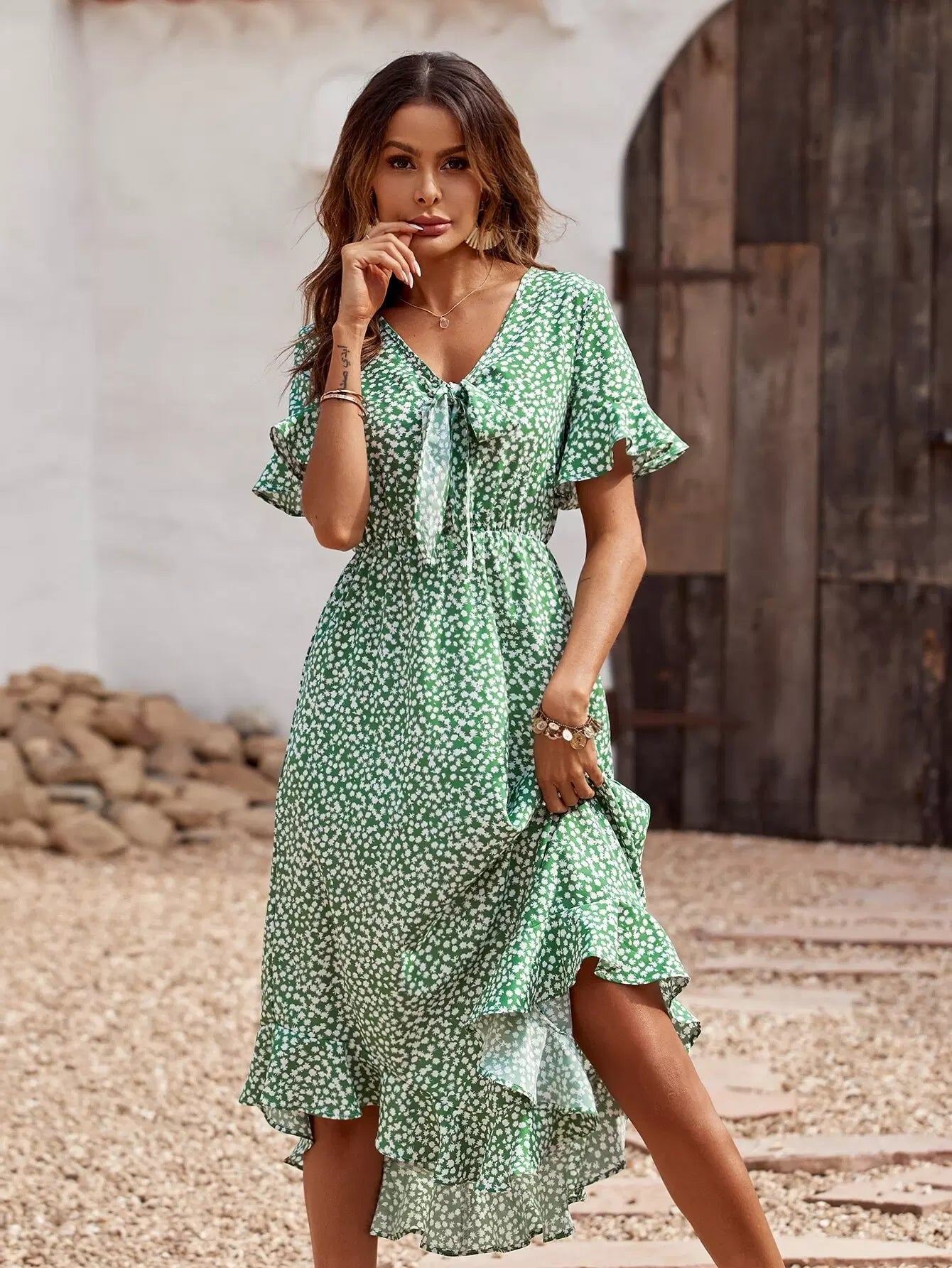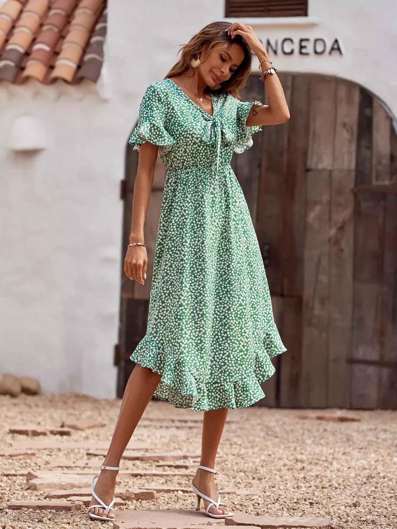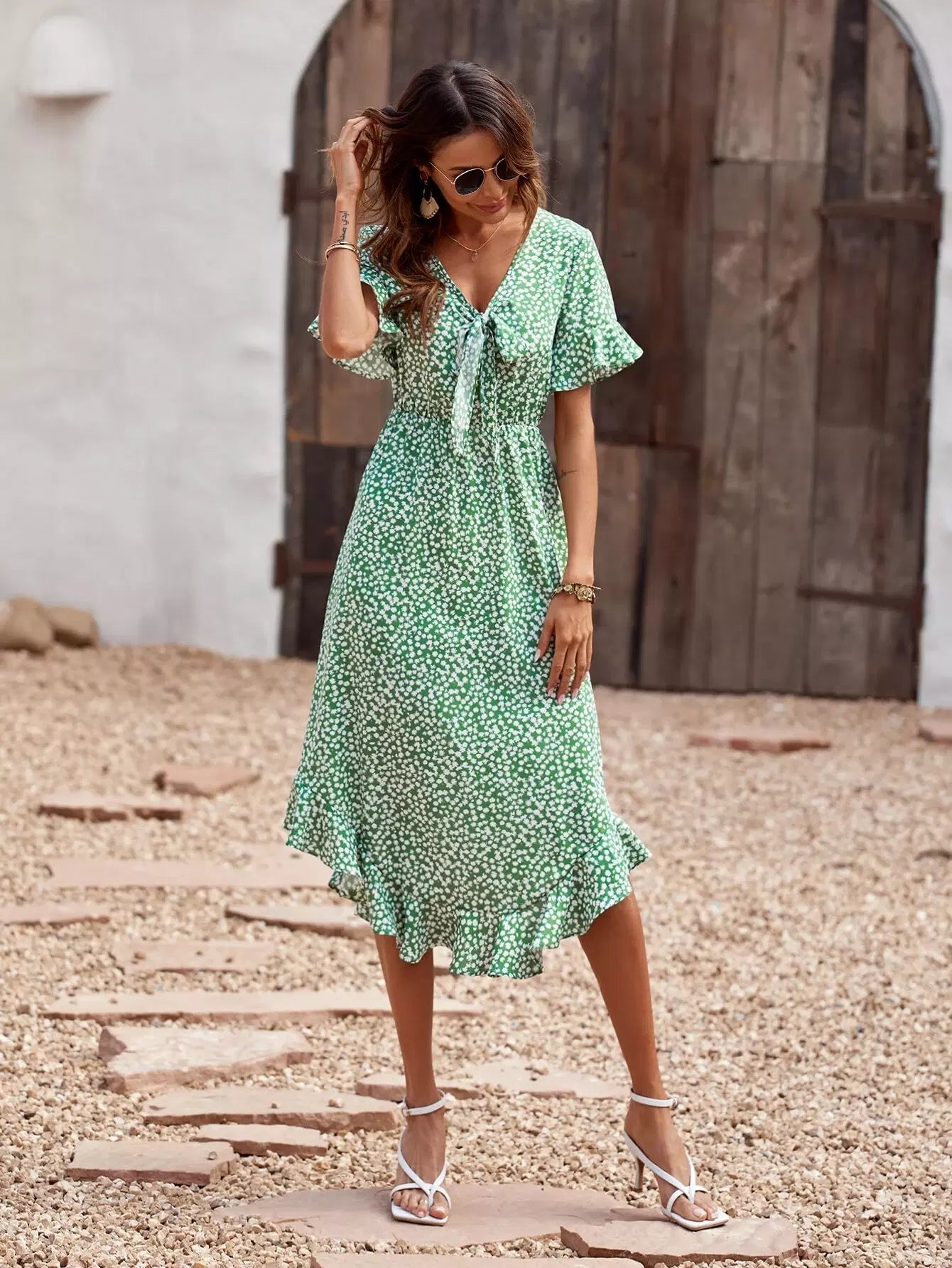 فستان ديتسي مزين بربطة زهور أمامية مكشكشة من الأمام