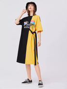 فستان منسدل الكتفين مع شعار جرافيكي وعقدة مشبك