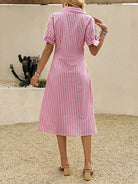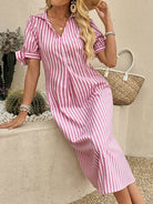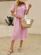 فستان نسائي كاجوال مخطط بأكمام قصيرة وياقة بولو من EMERY ROSE