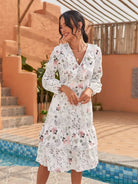 للنساء - فستان مزين بكشكشة وطبعة زهور
