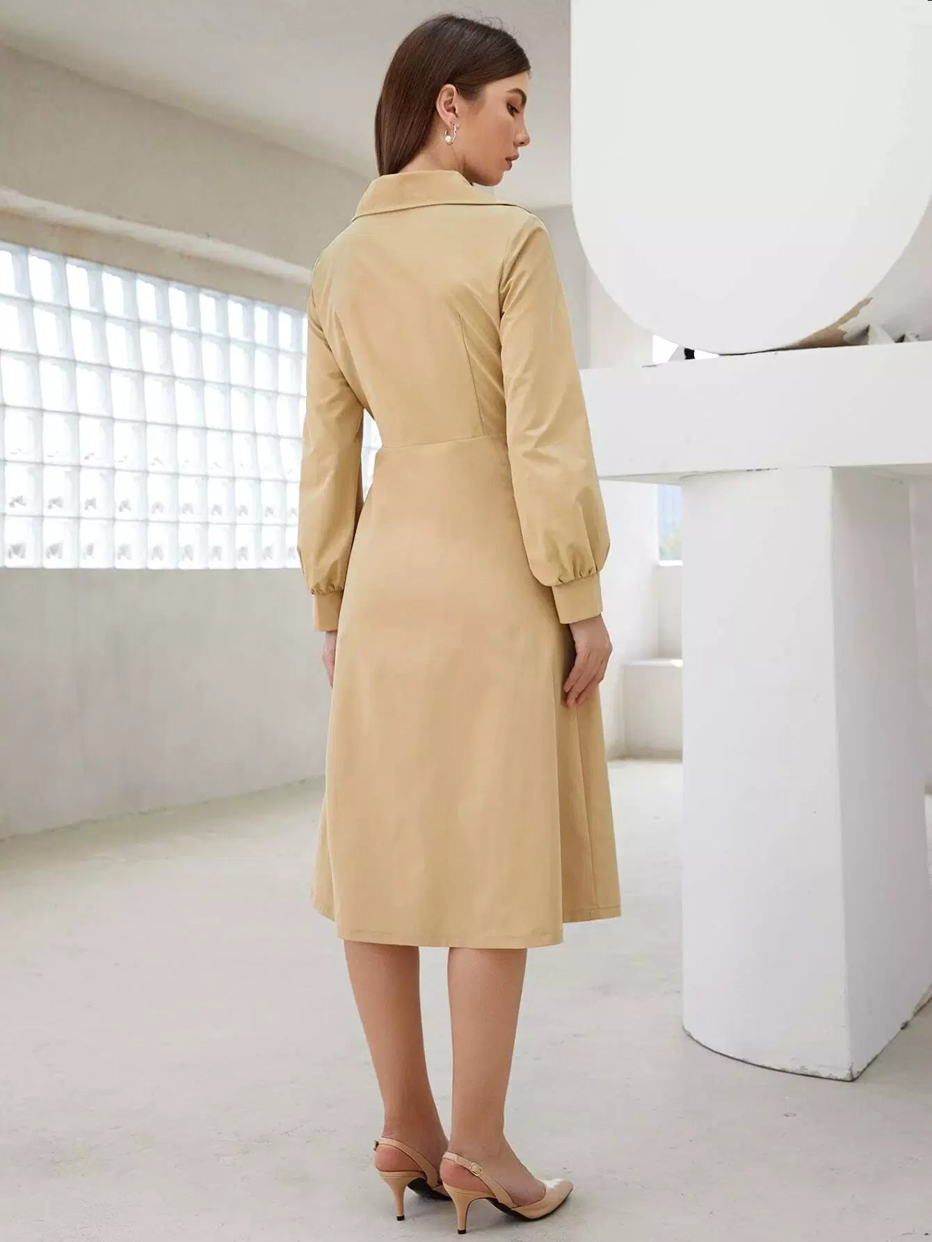 فستان قميص بياقة على الياقة مزدوج الصدر