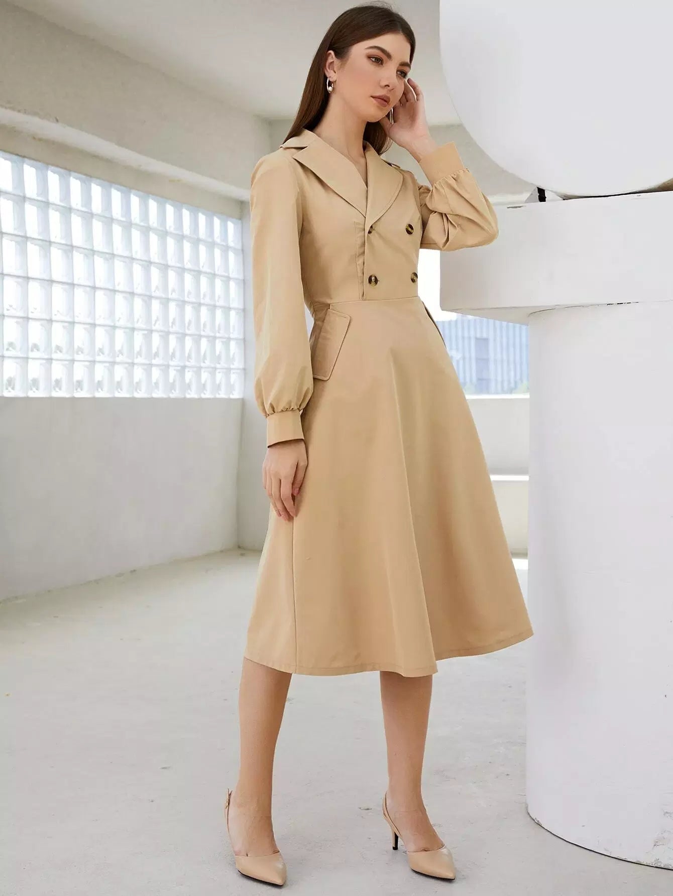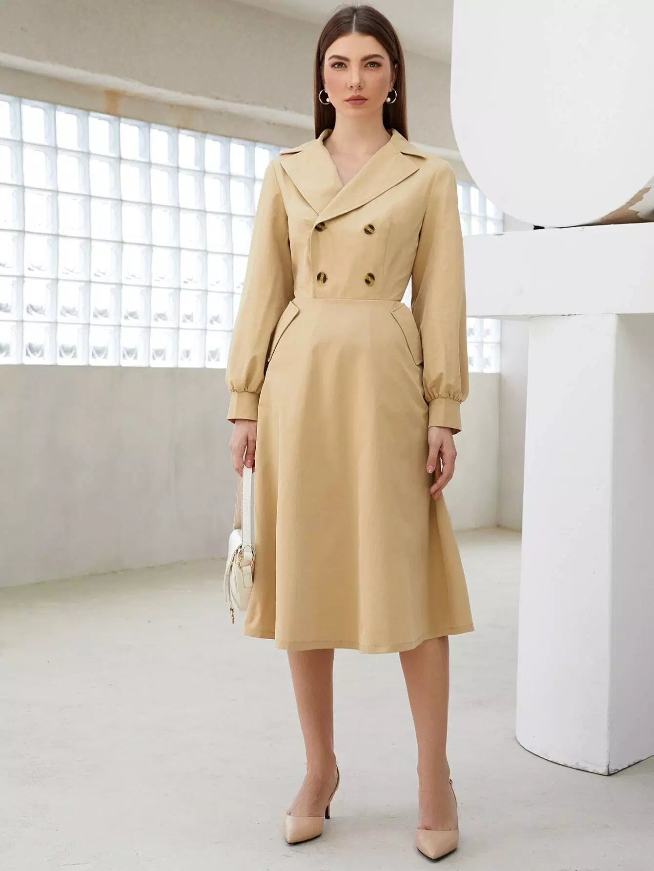 للنساء - فستان قميص مزدوج الصدر بياقة طية صدر السترة