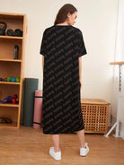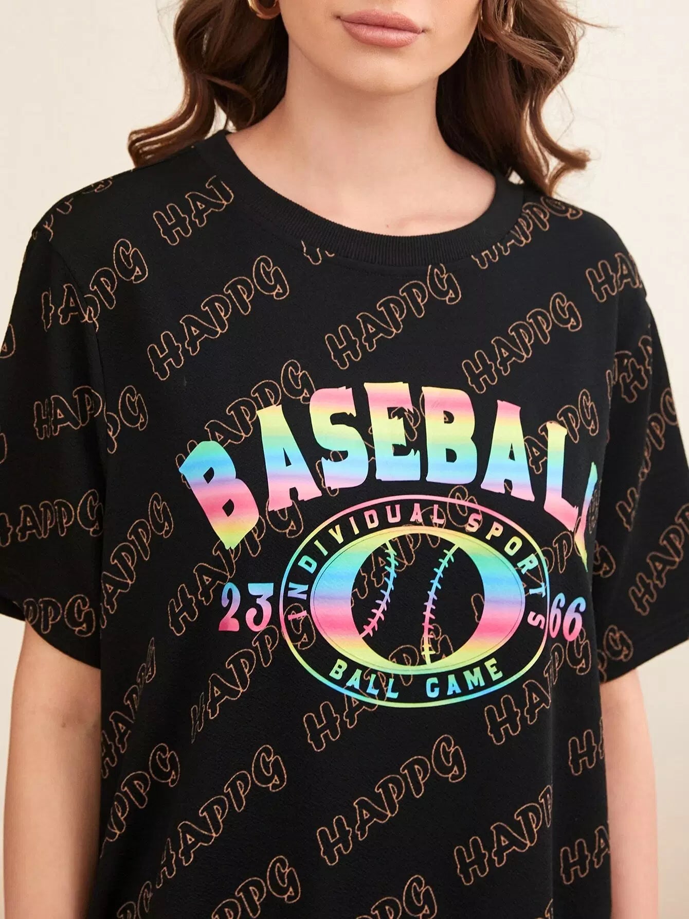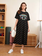 للنساء - فستان تي شيرت مطبوع عليه حروف ورسومات