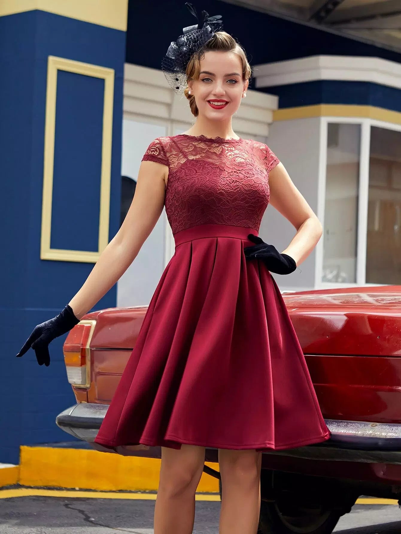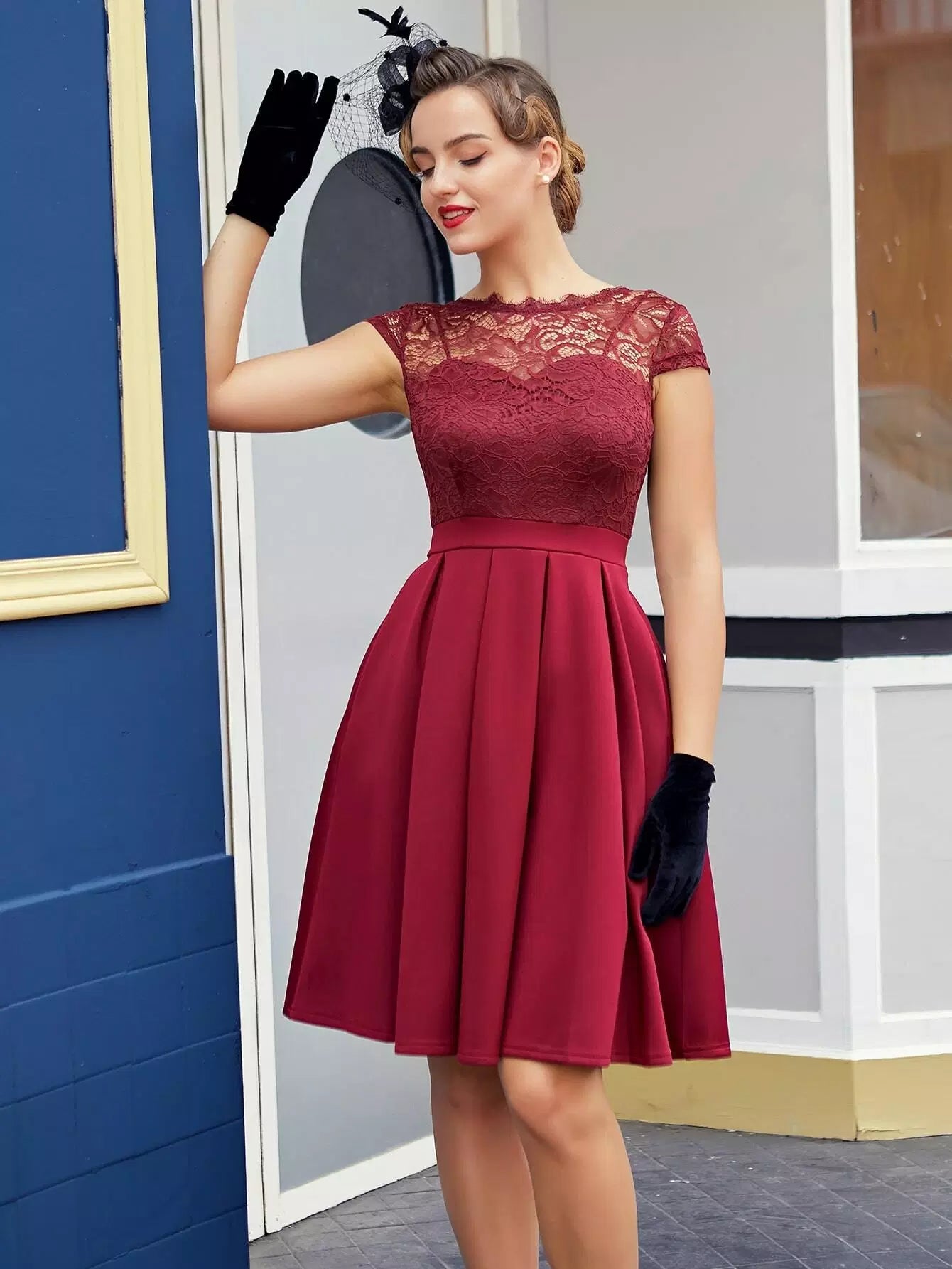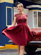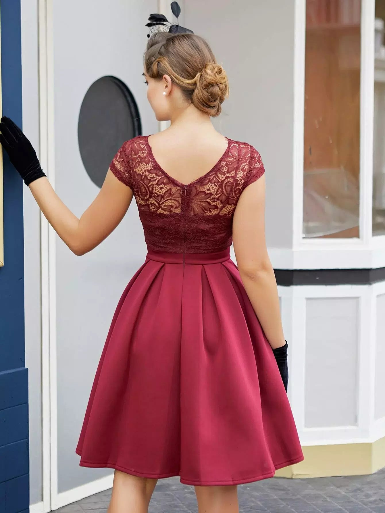 فستان تزلج بحافة مطوية منخفضة من الدانتيل من الخلف