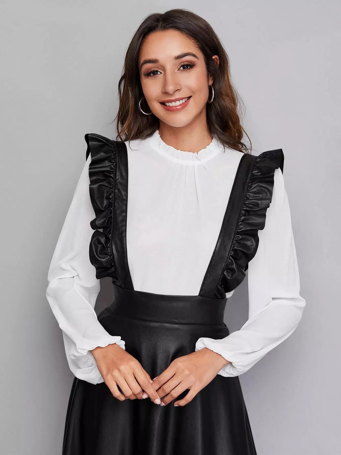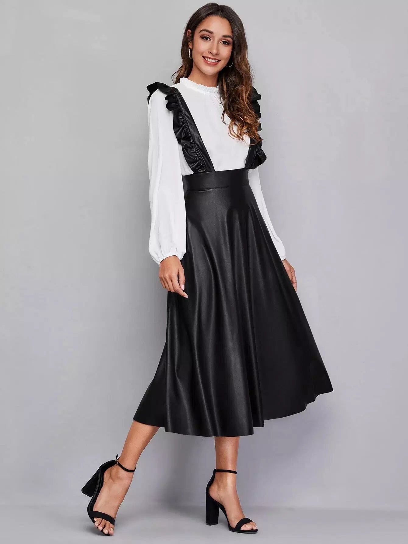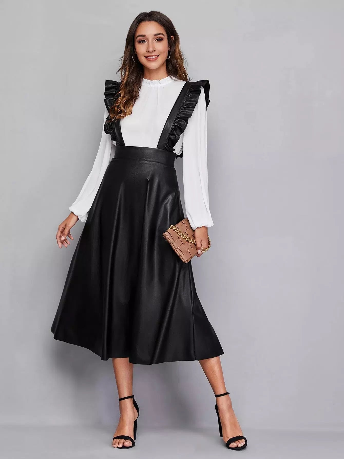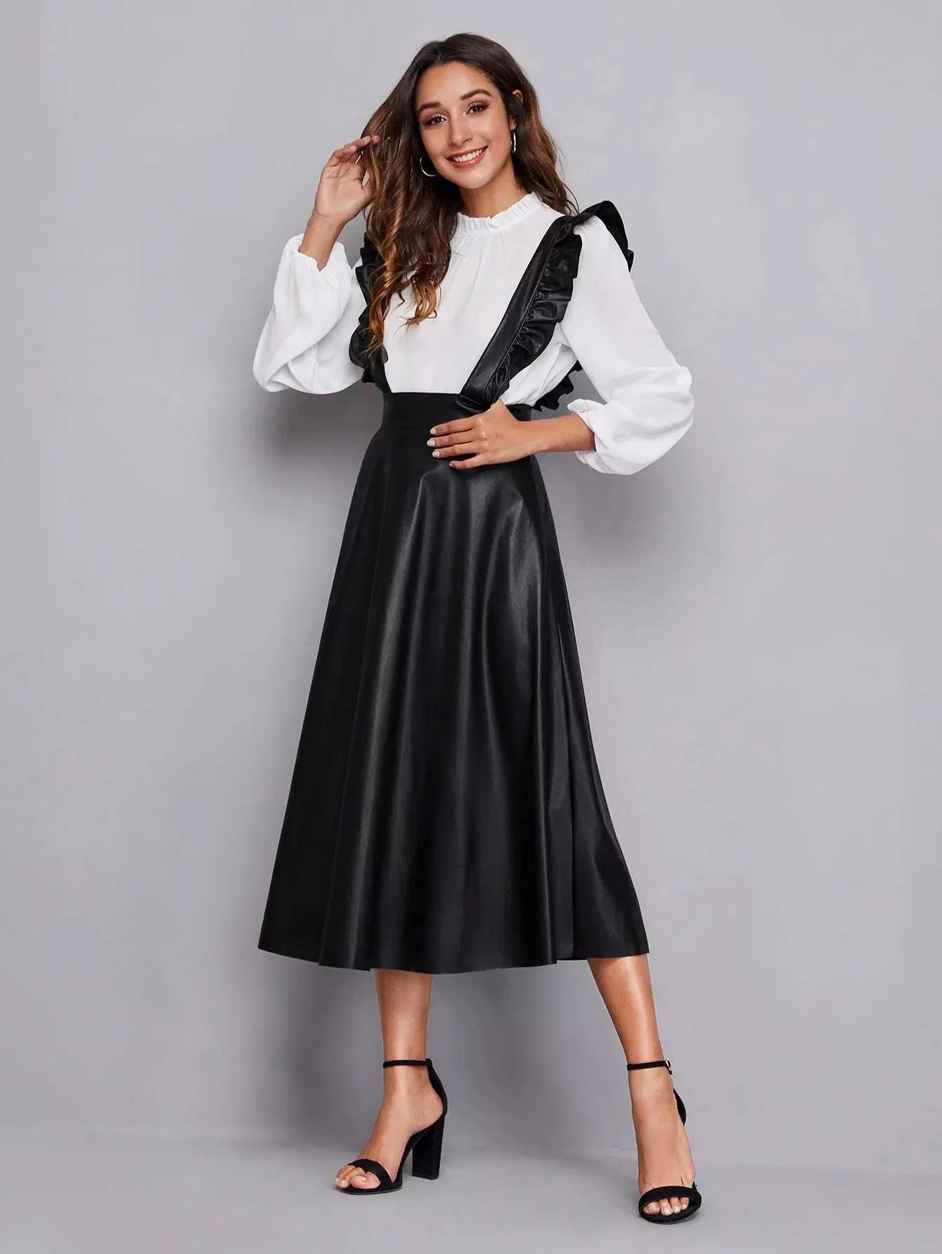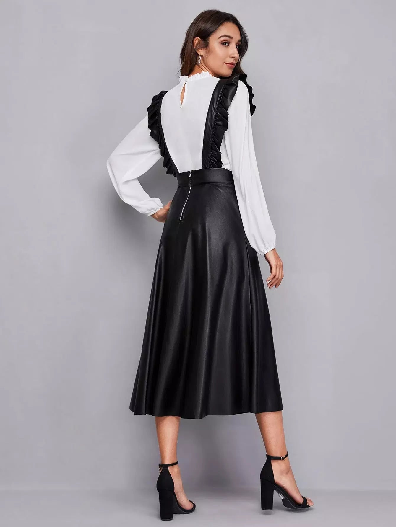فستان من جلد البولي يوريثان بحواف مكشكشة