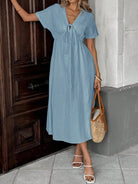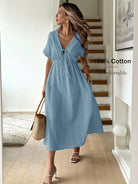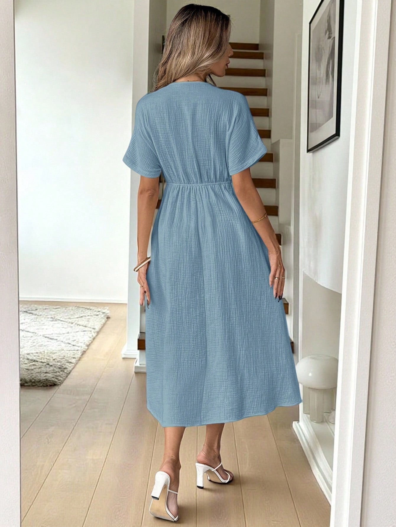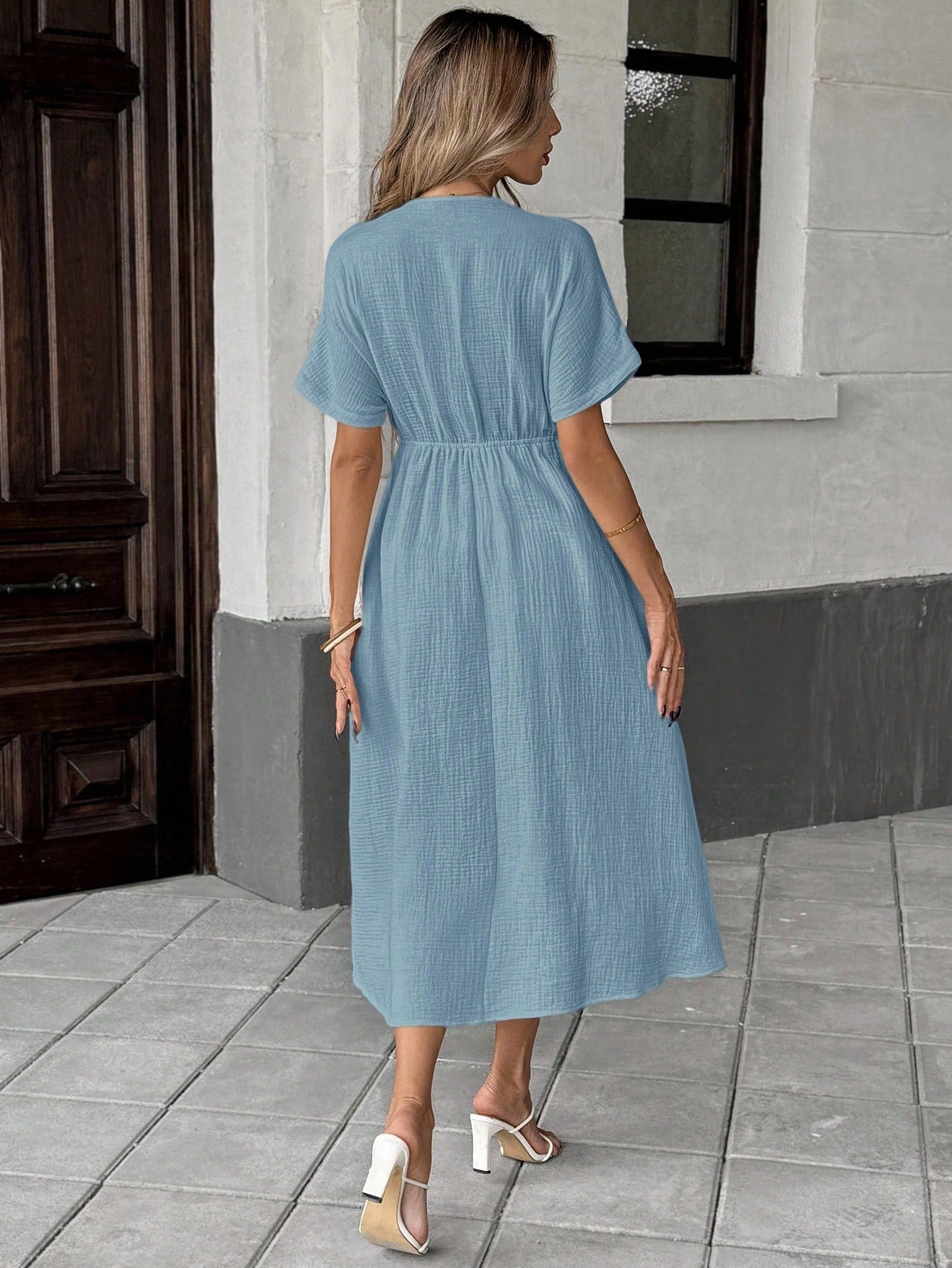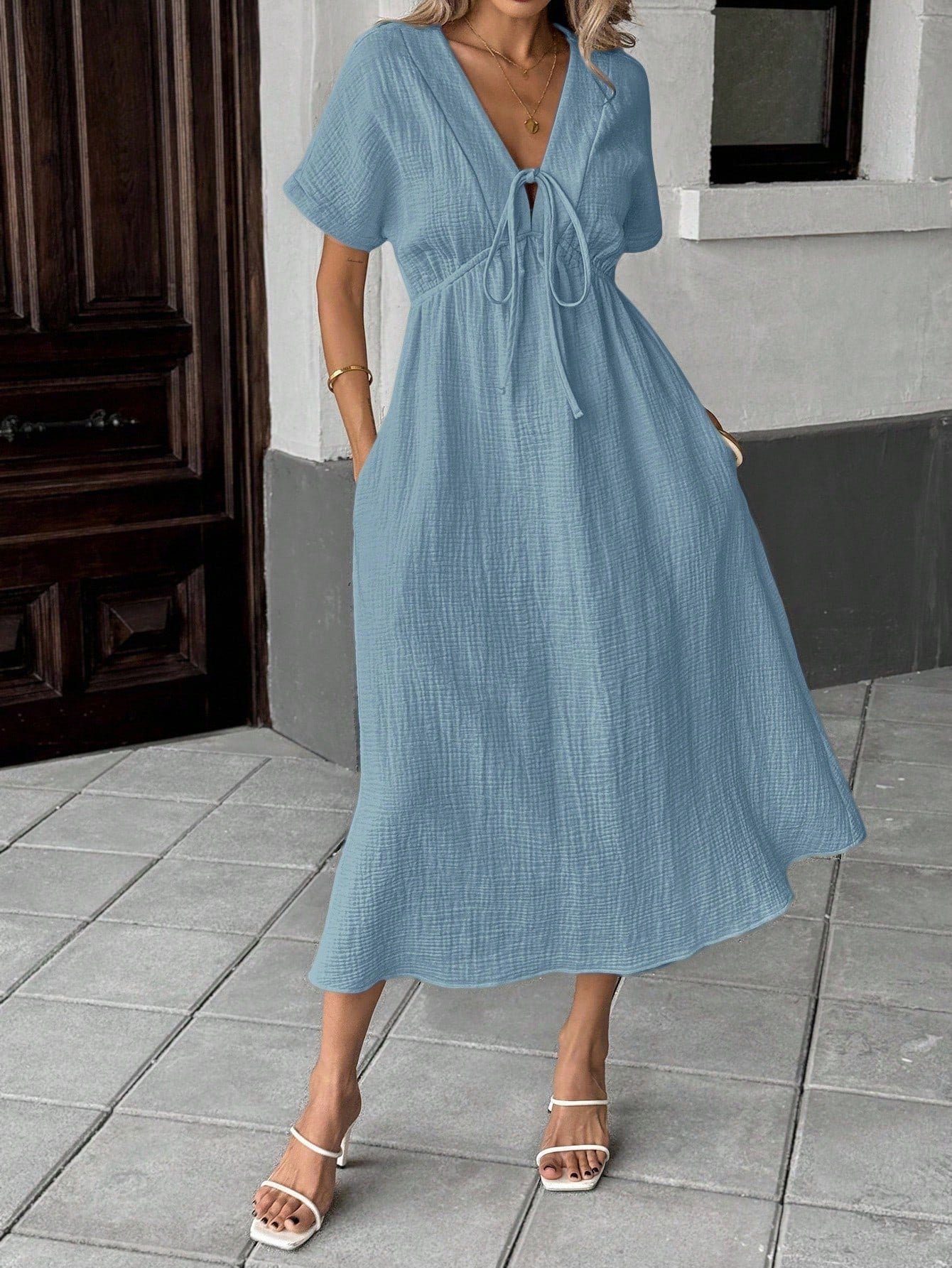 women SHEIN LUNE Apricot Bowknot Casual Midi Dress For Women Baby Blue Dress