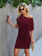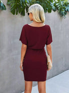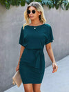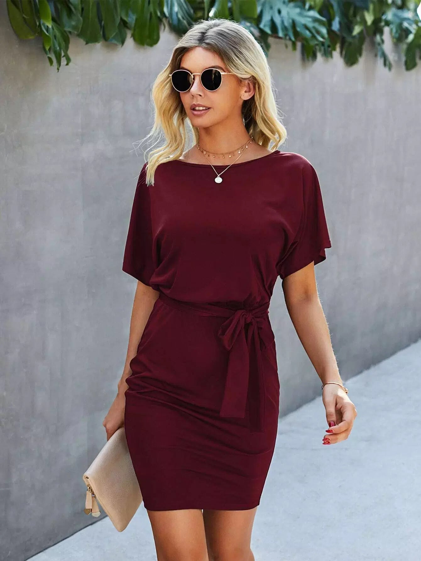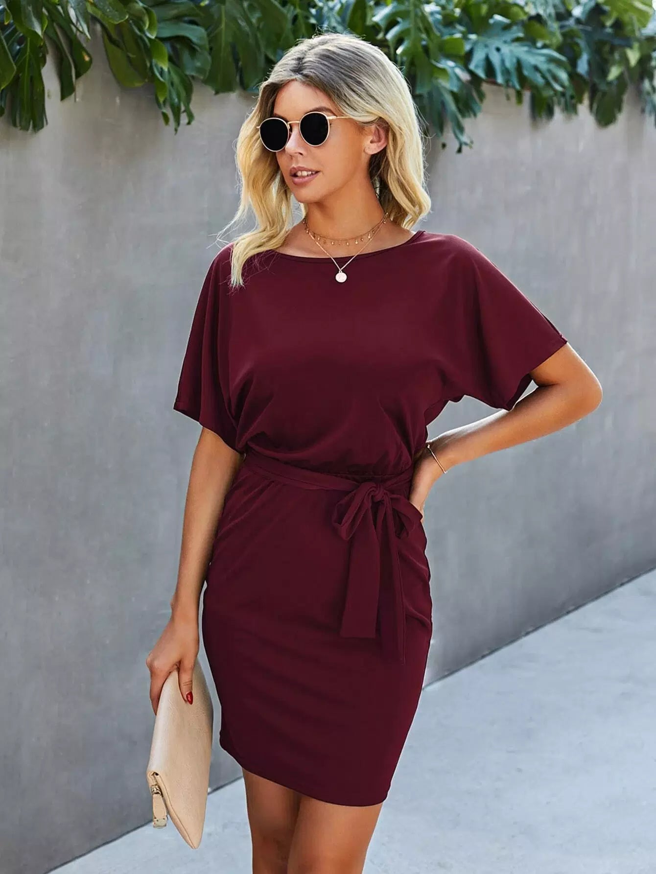 فستان سادة بأكمام جناح الخفاش بدون حزام