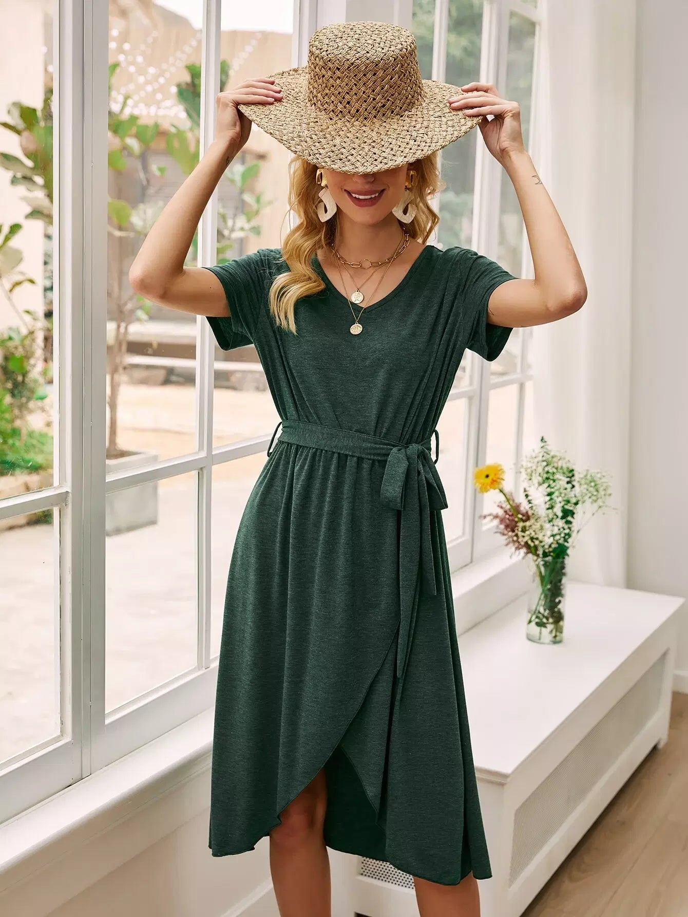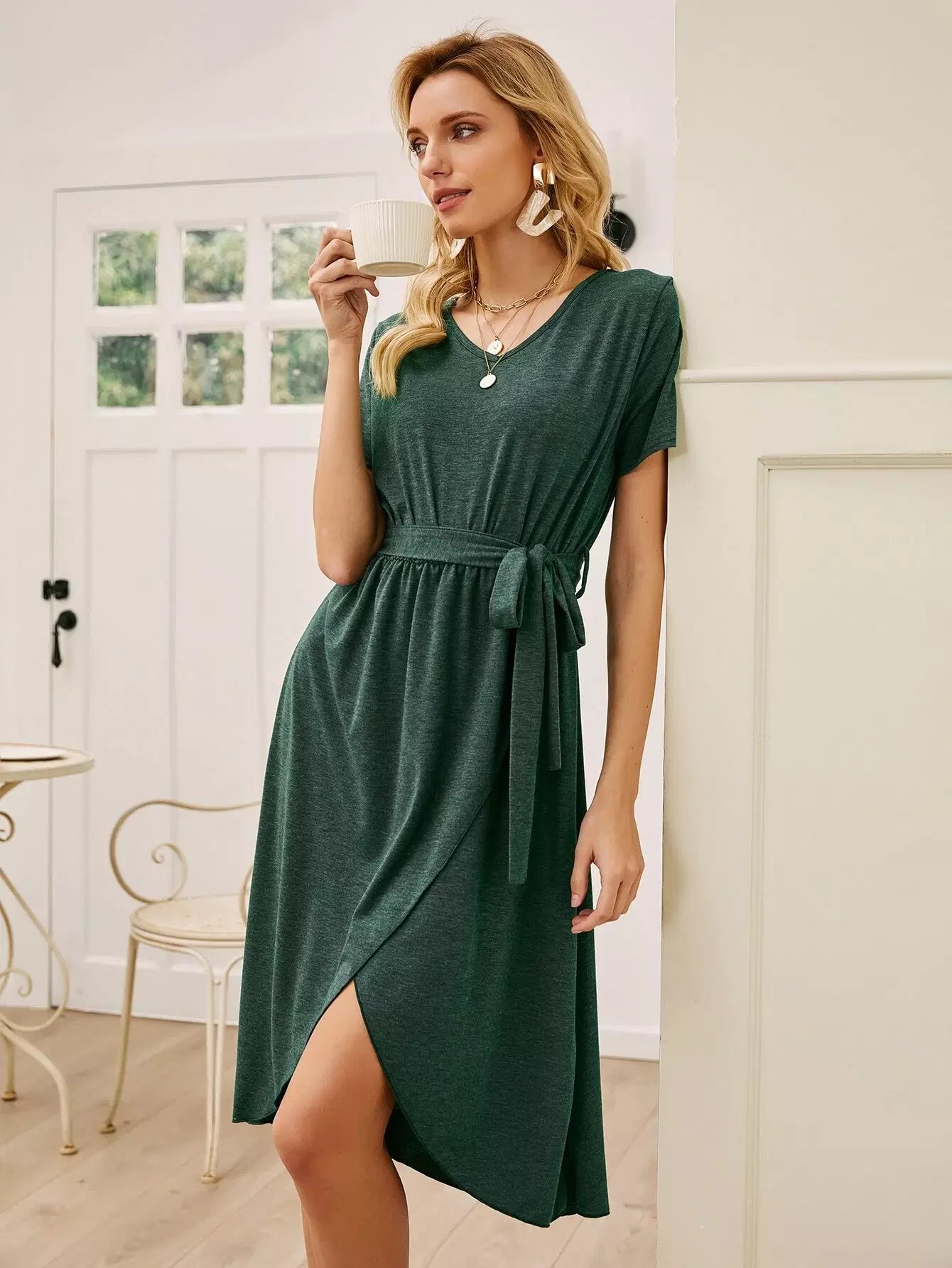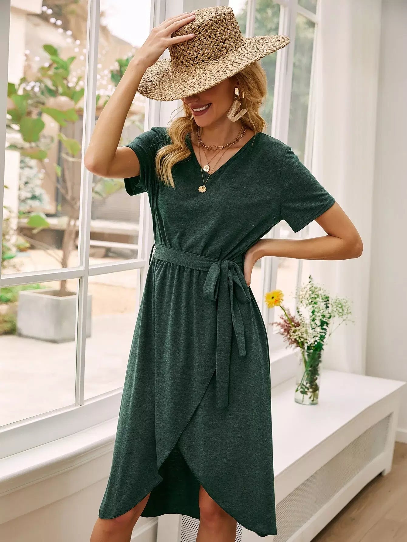 فستان ملفوف بربطة عنق على شكل V وربطة عنق على شكل V