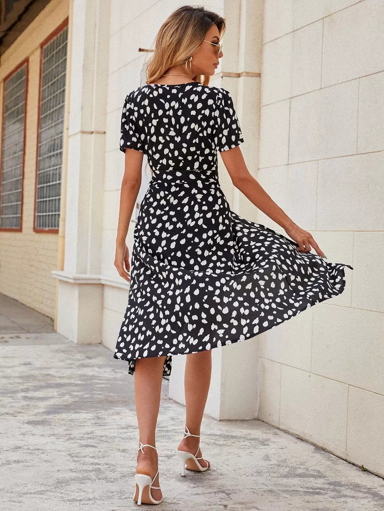 فستان بطبعة ربطة عنق ملفوفة على الجانبين