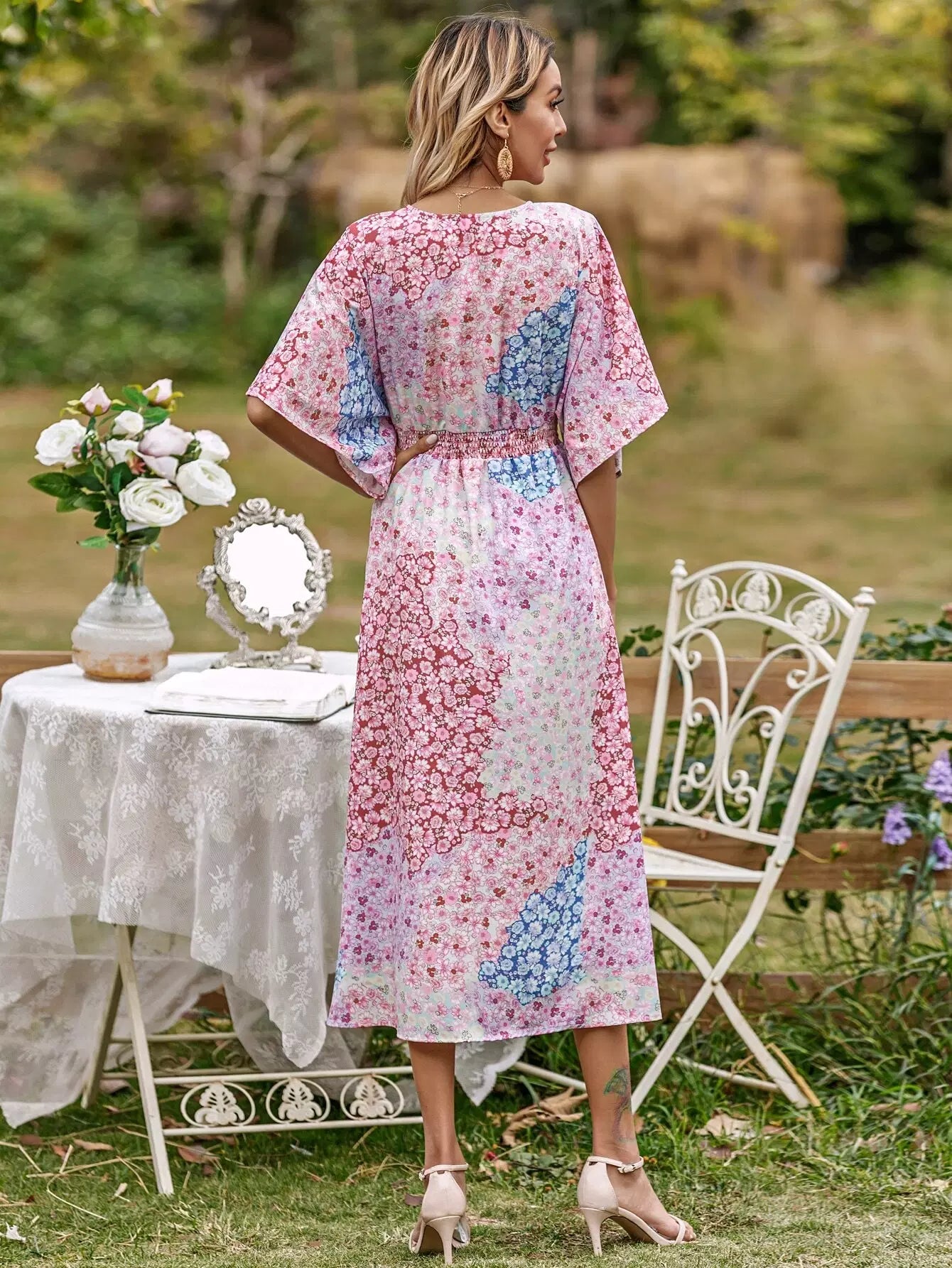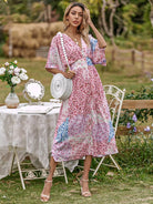 النساء - فستان على شكل حرف A بطبعات زهور بالكامل
