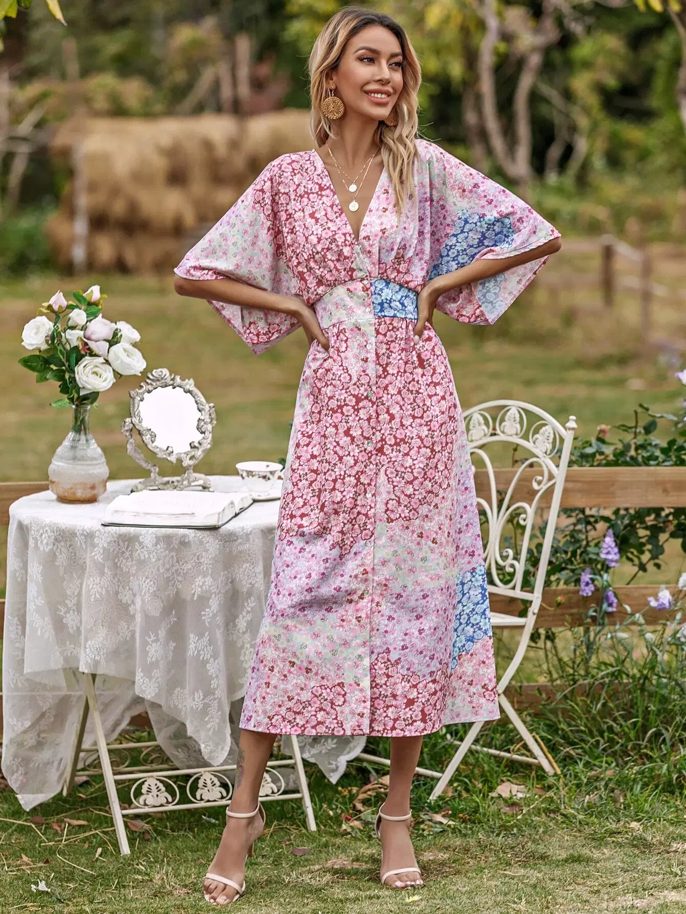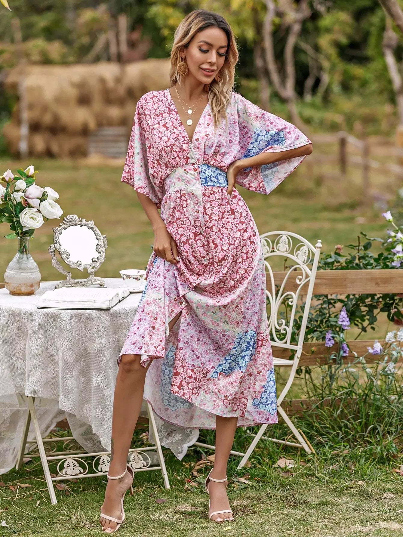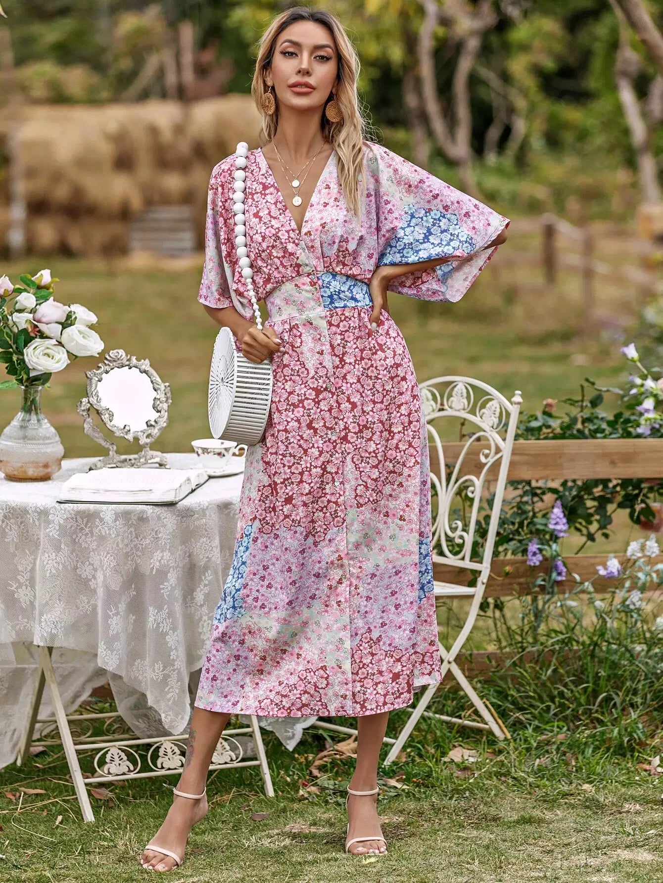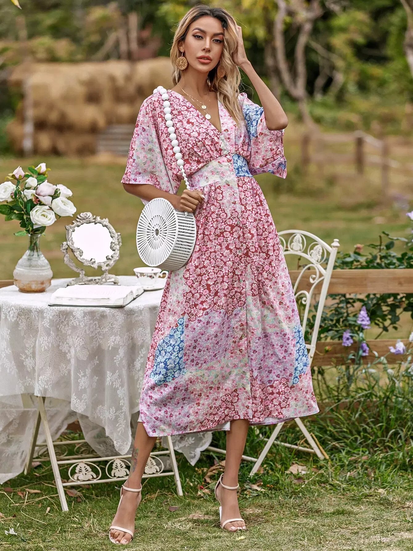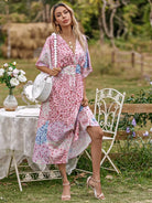 فستان بنقشة زهور مطبوع بالكامل بطبعة زهور منقسمة الحاشية على شكل حرف A