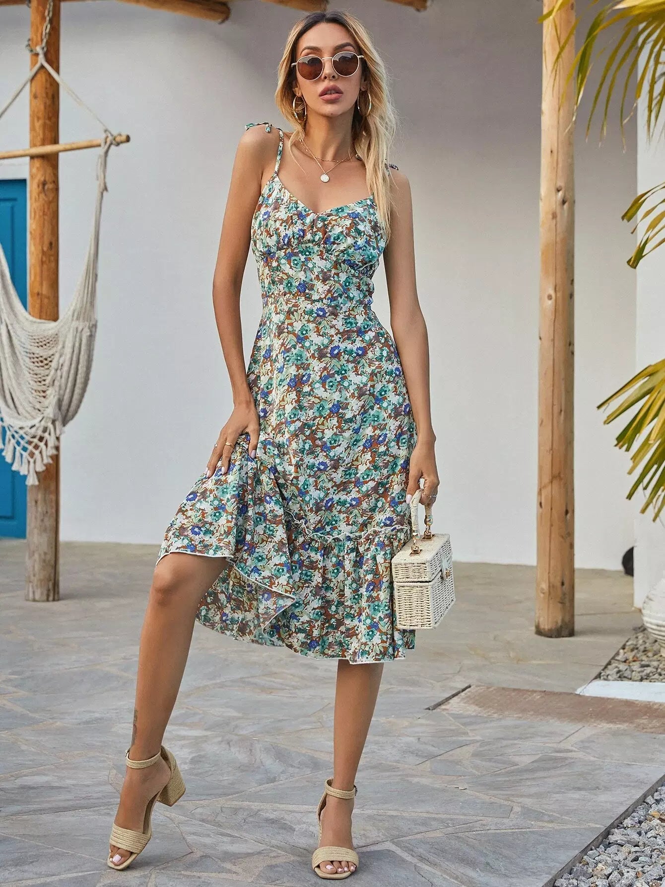 فستان كامي على الكتف بعقدة زهرية فوق الكتف
