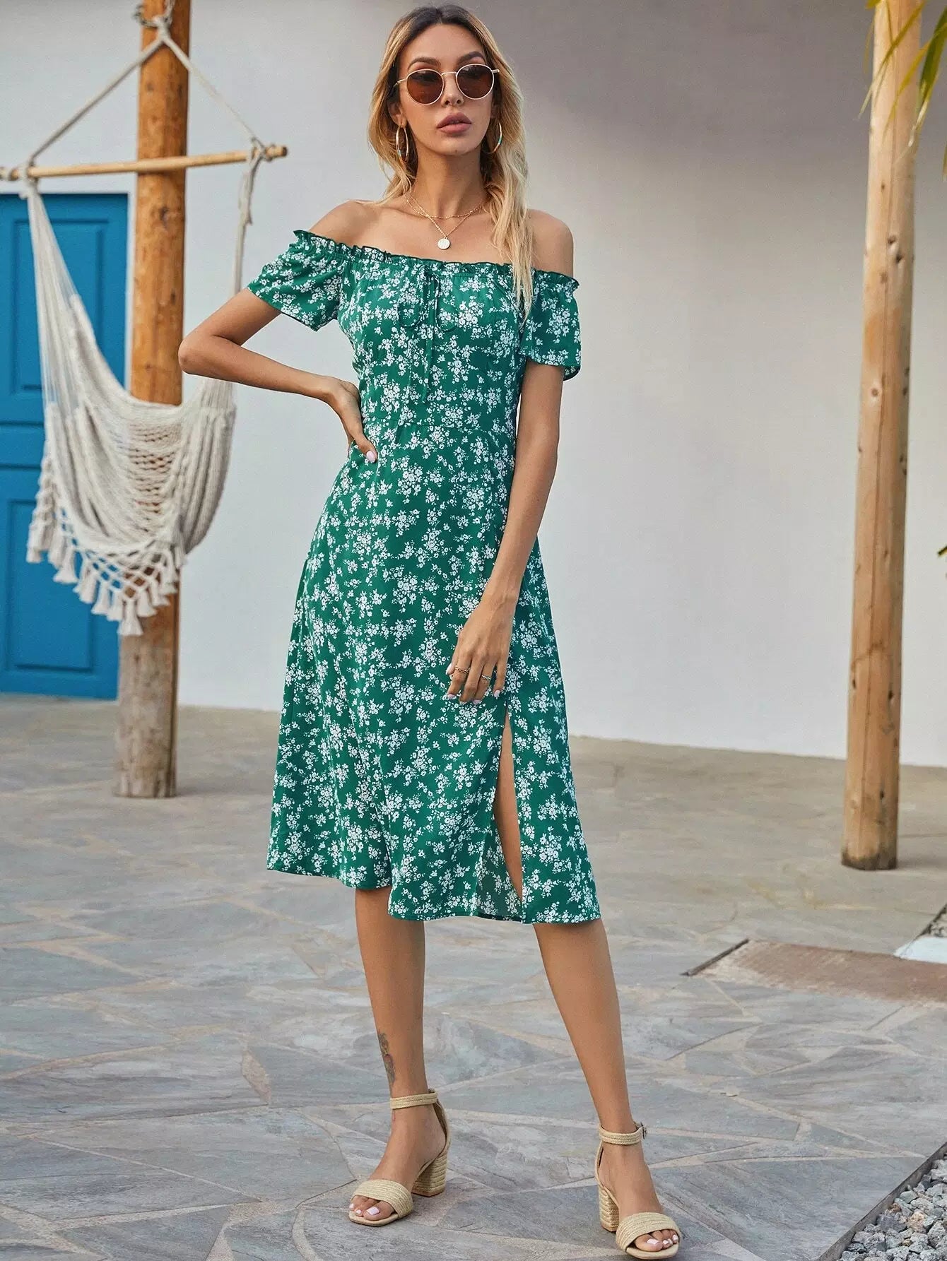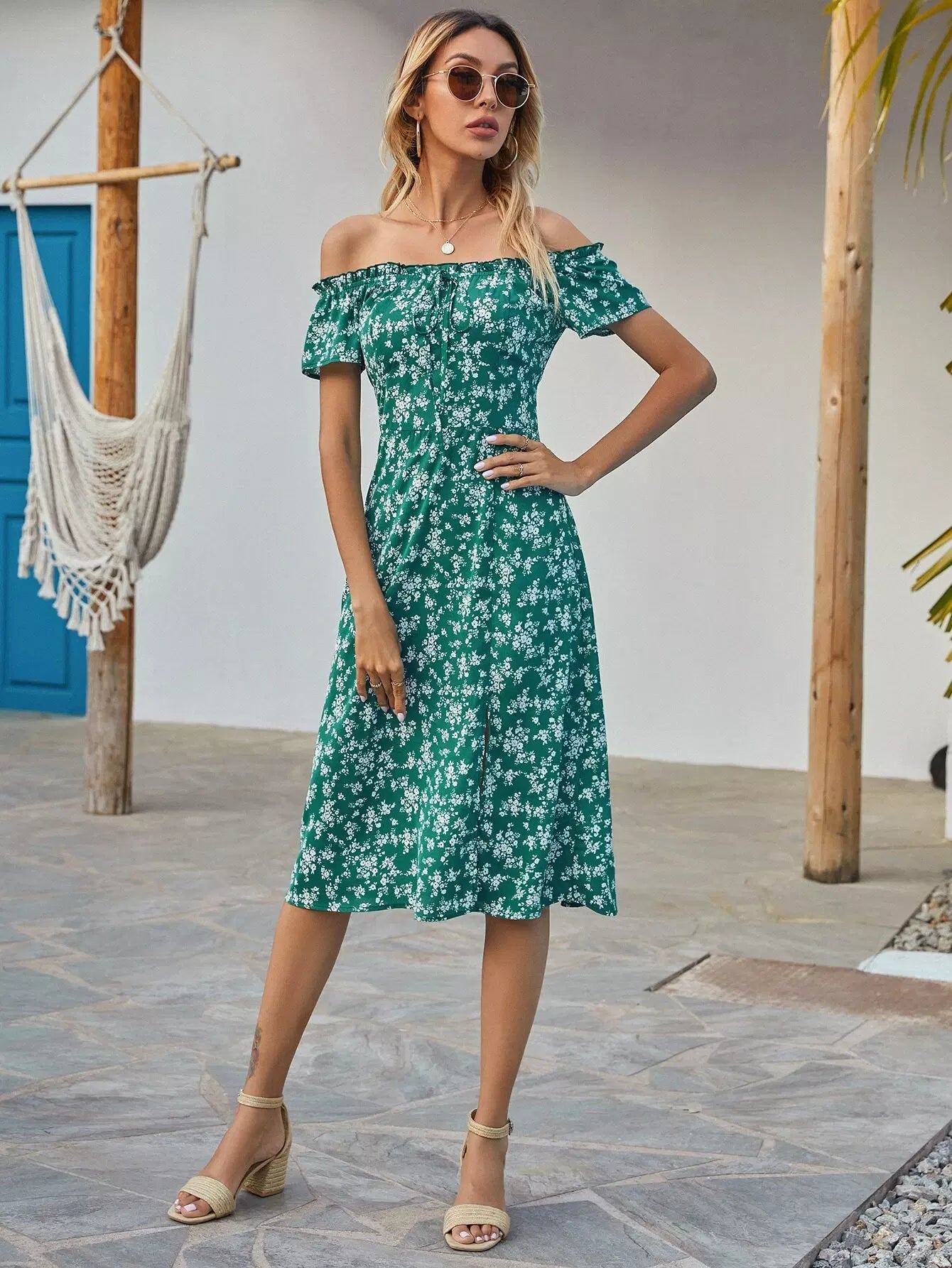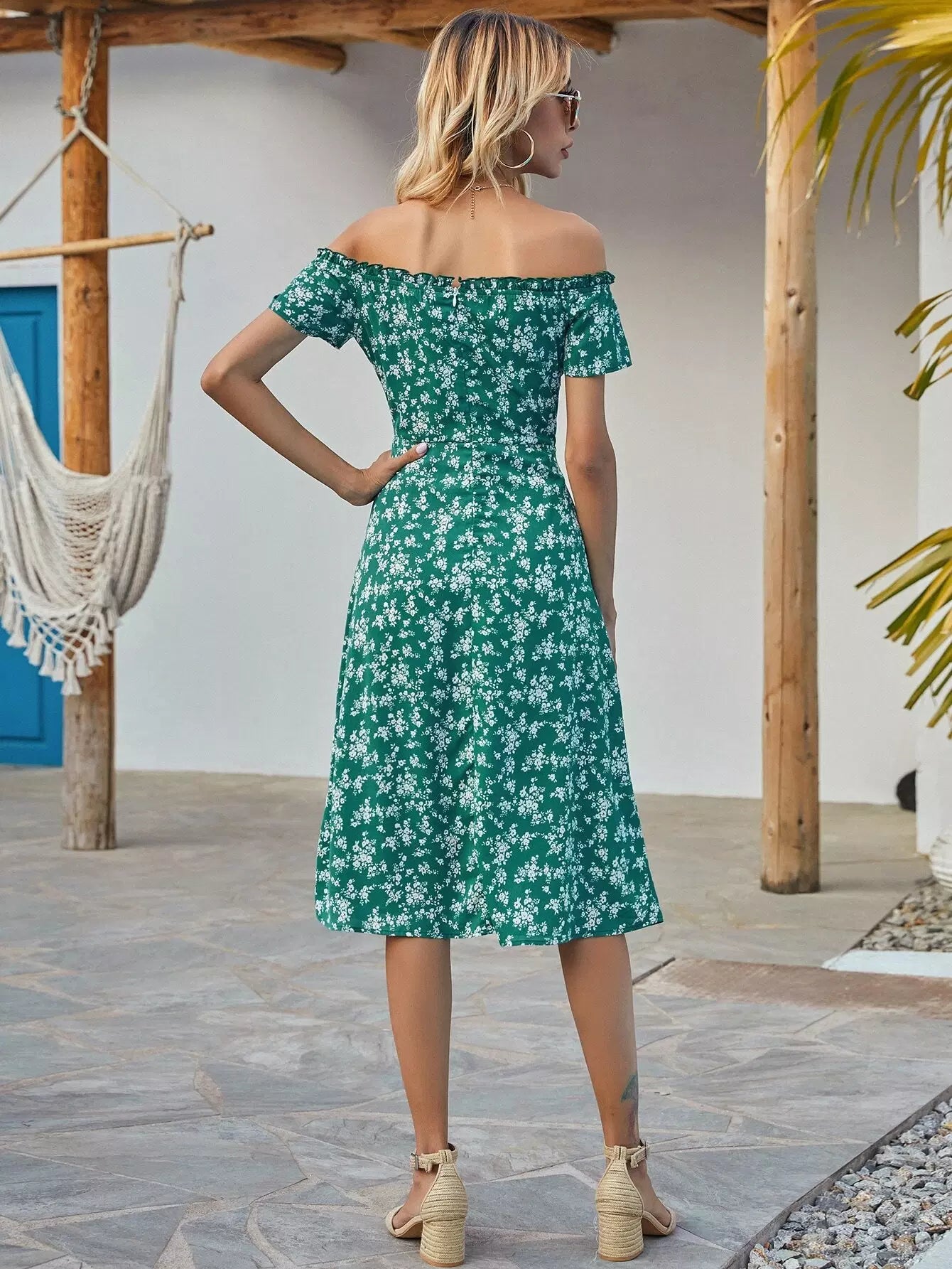 فستان بقصة A منقسمة بطبعات الأزهار