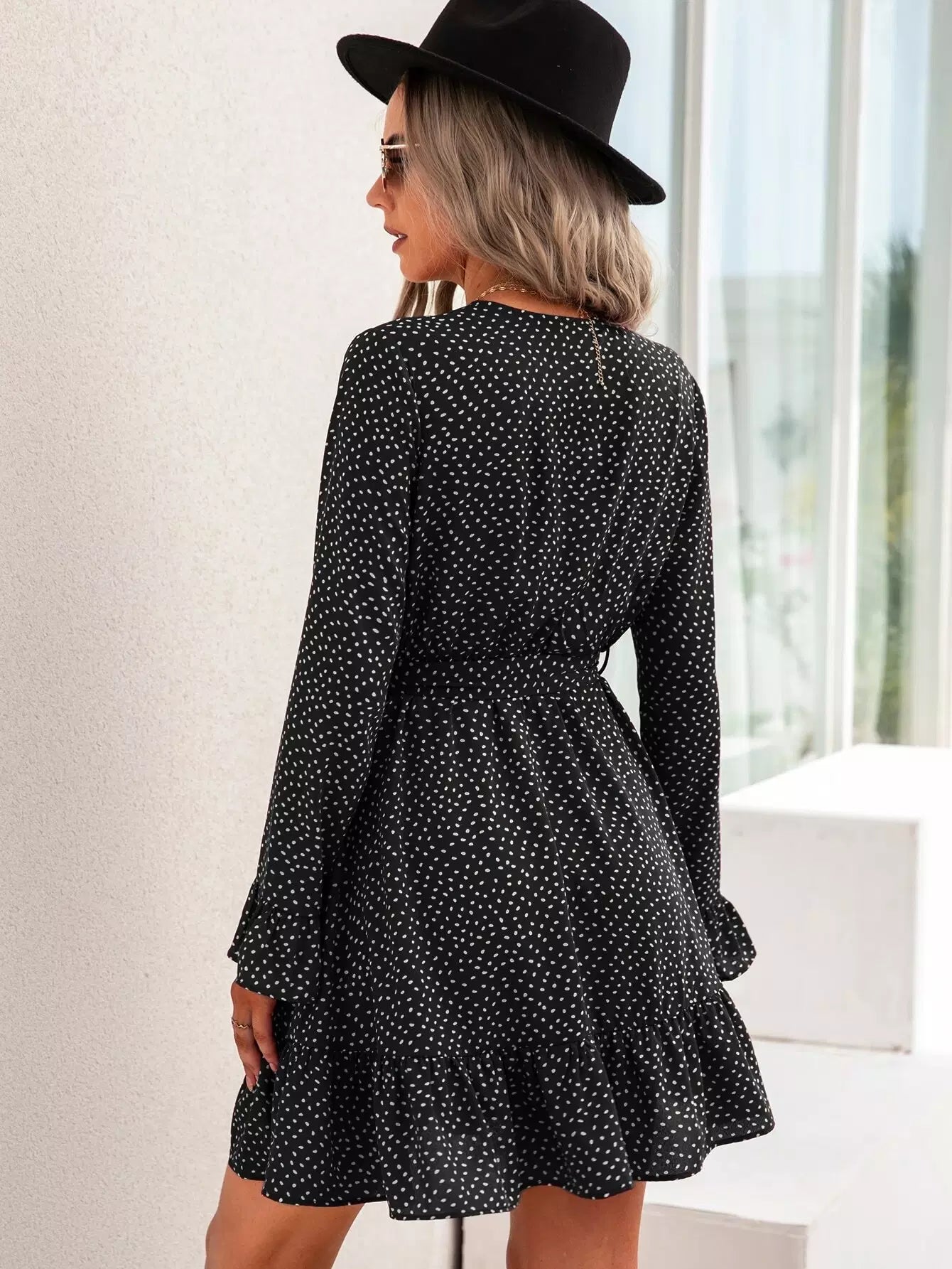 فستان بحاشية واسعة بطبعة Surplice ورقبة على شكل حرف V بدون حزام