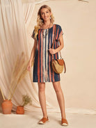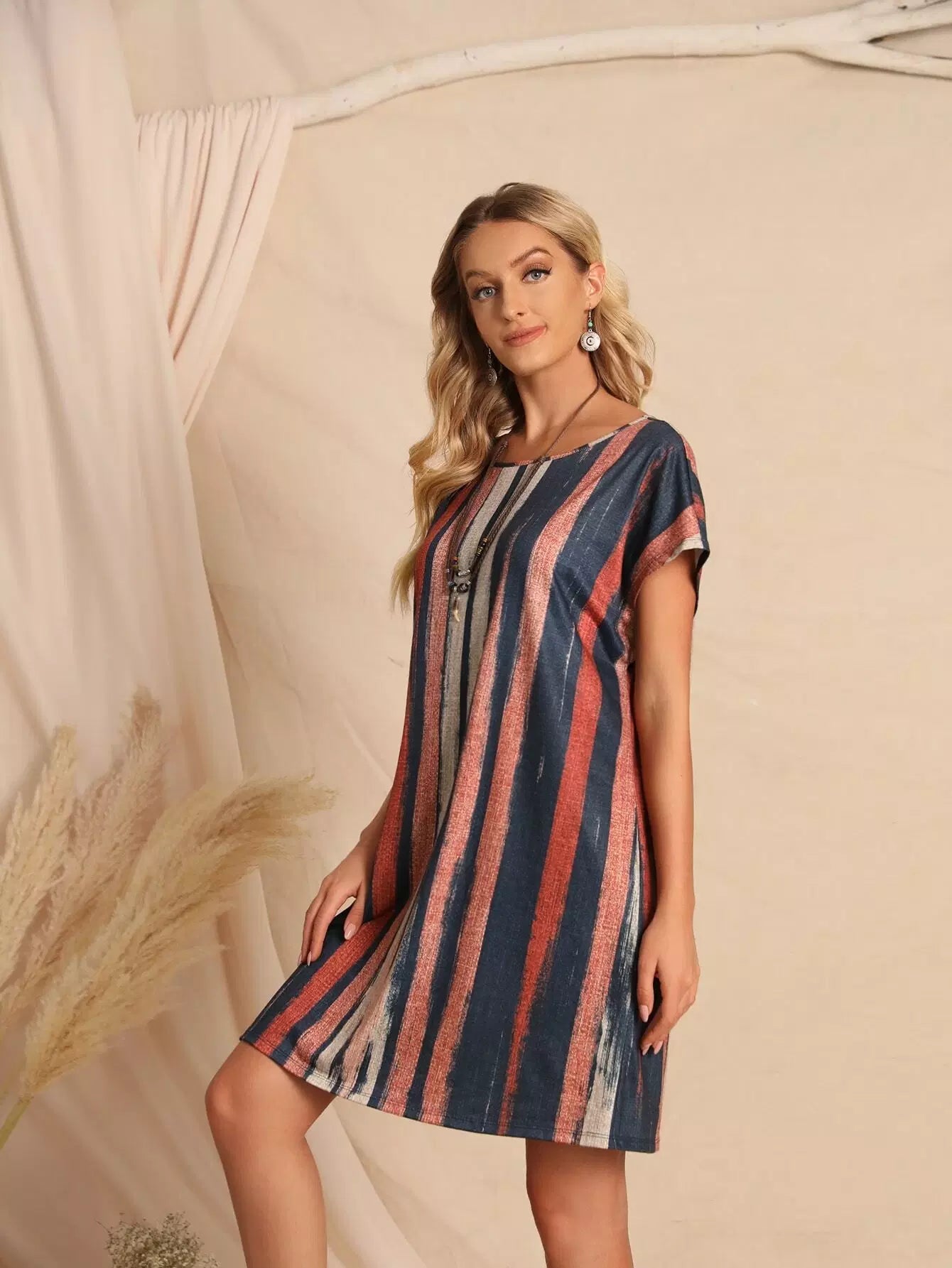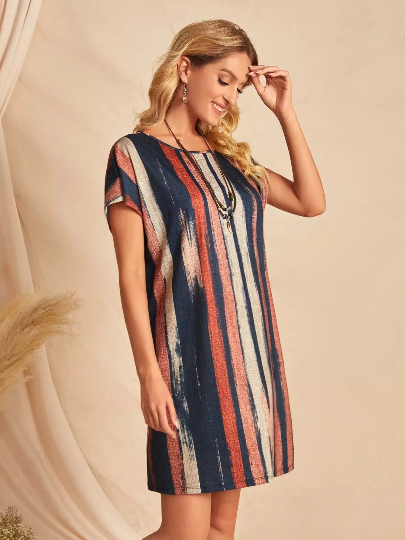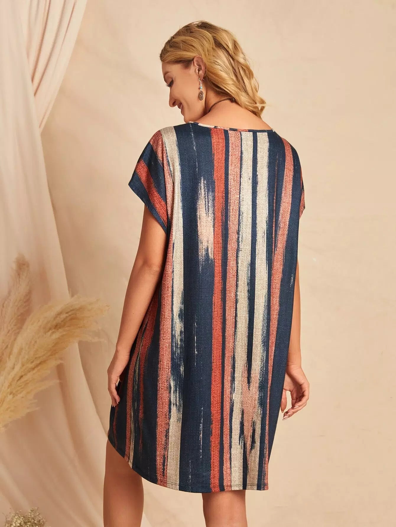 فستان بأكمام على شكل فرشاة مطبوع بالفرشاة