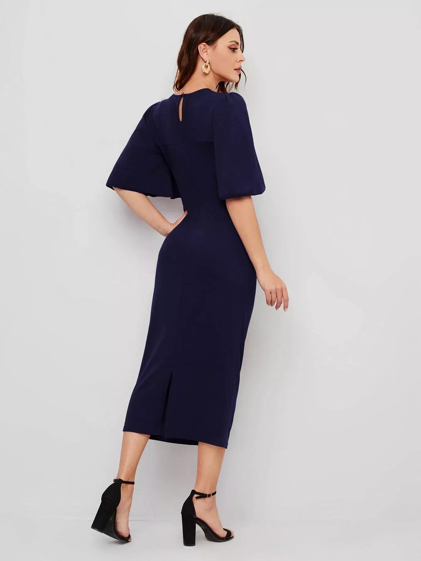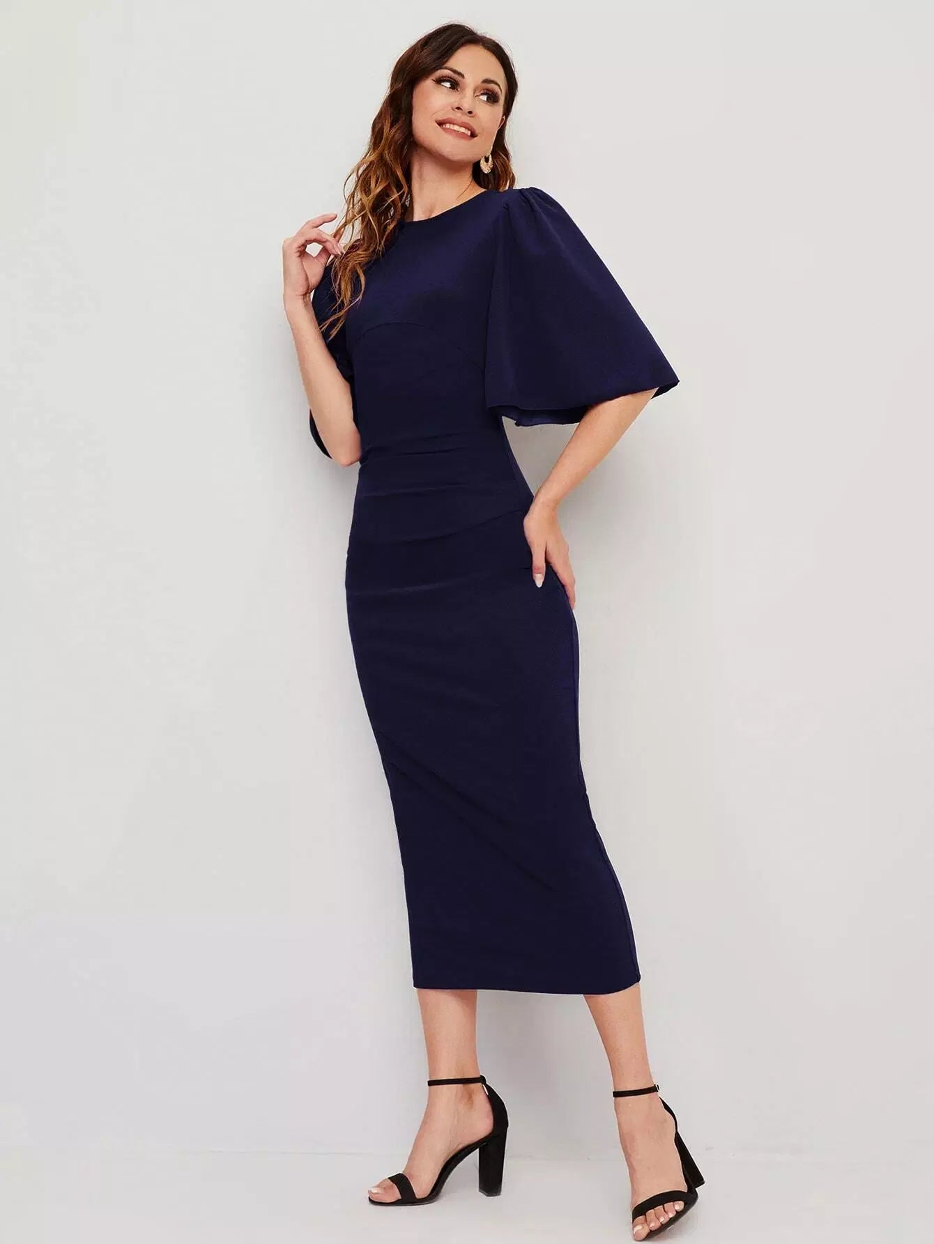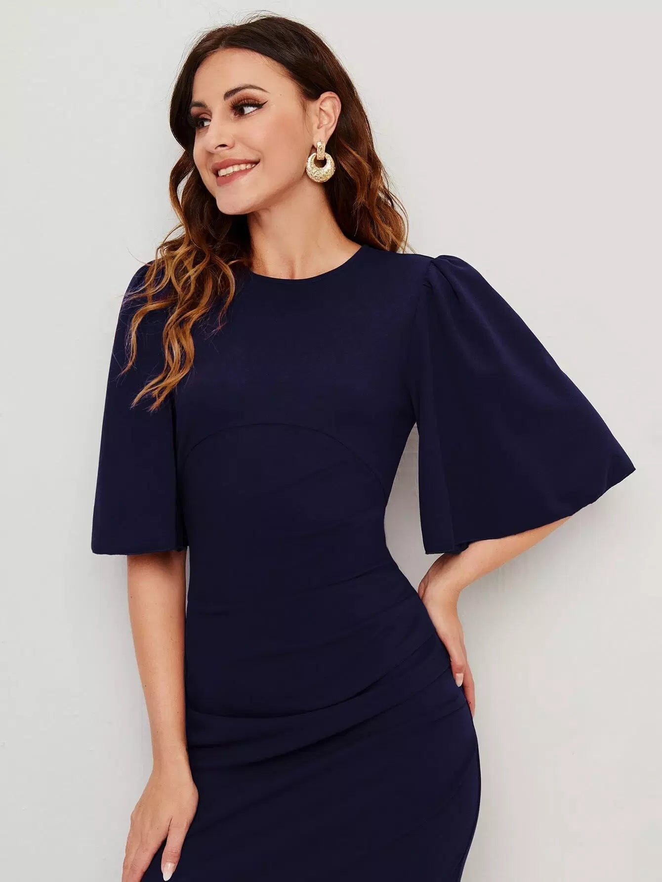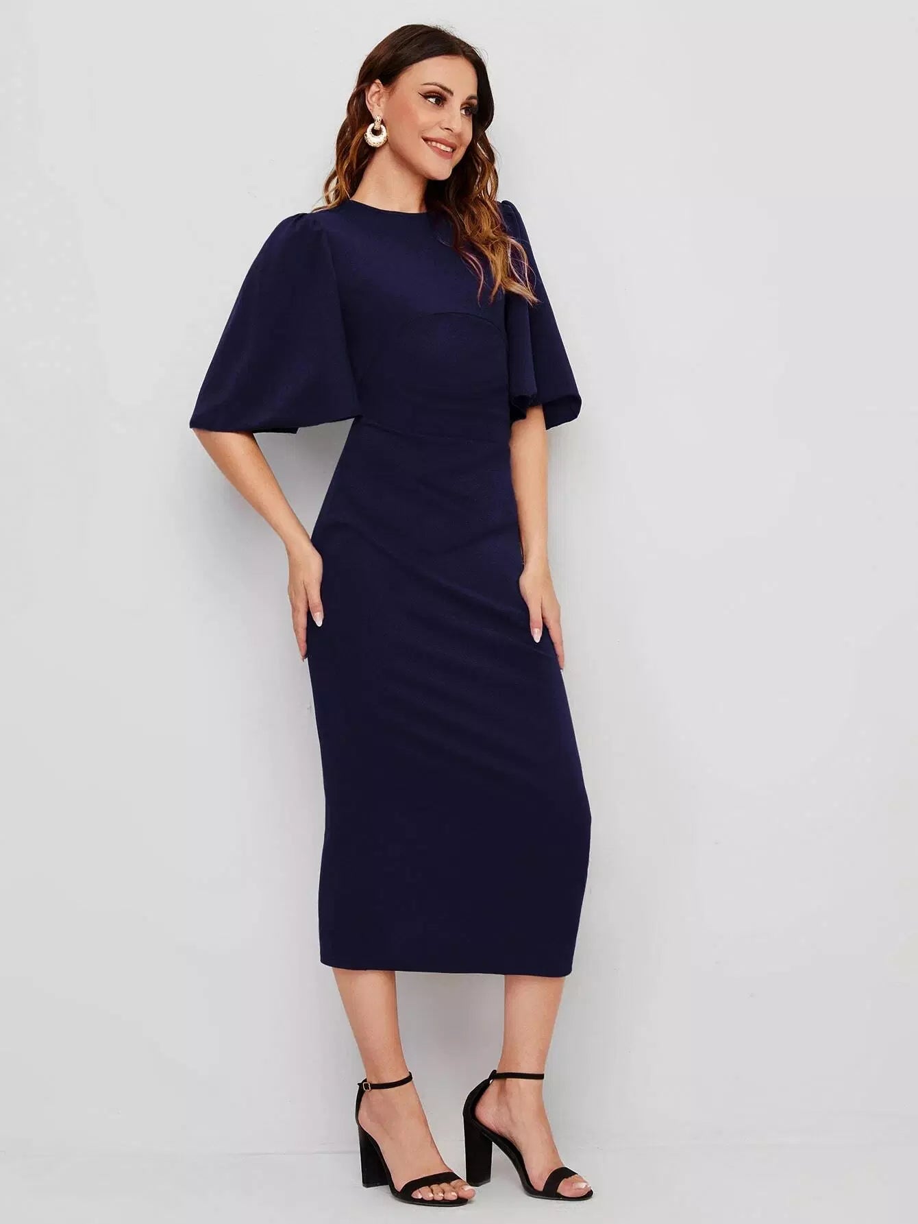 فستان بأكمام على شكل فراشة بفتحة على شكل فتحة في الظهر منقسمة من الخلف