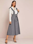 تنورة بأزرار مع حزام كشكش بدون حزام